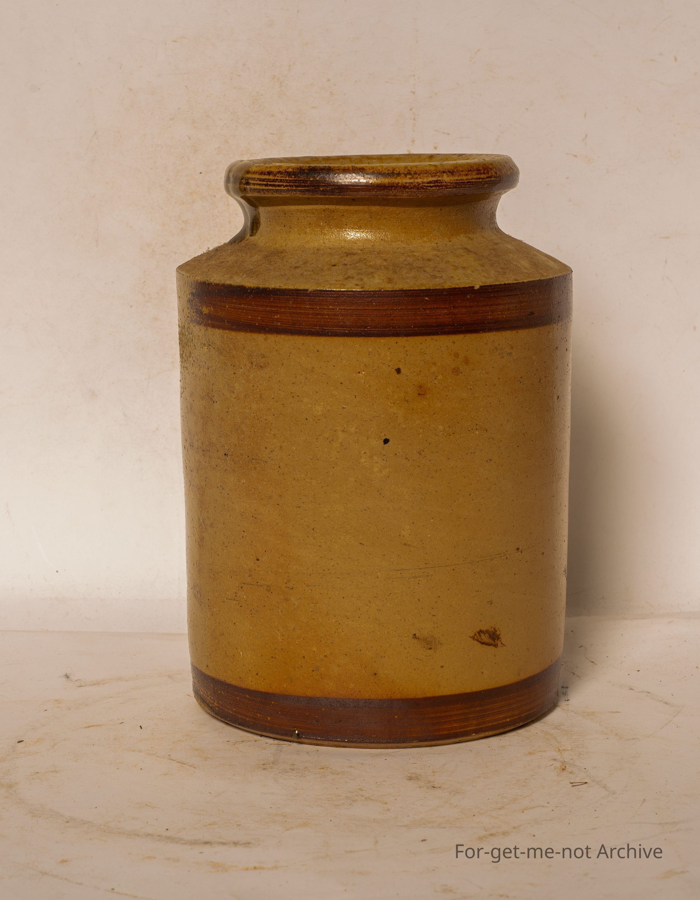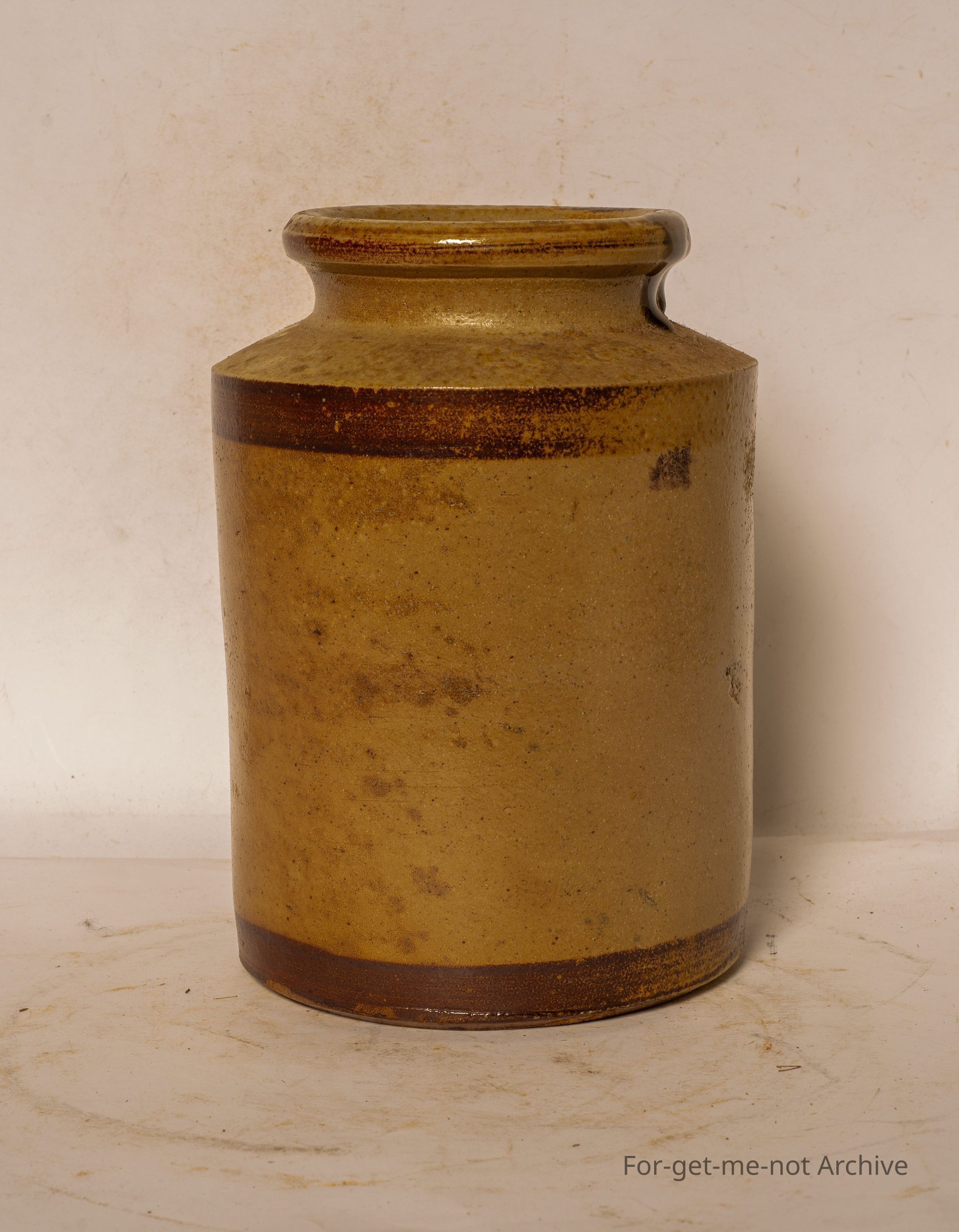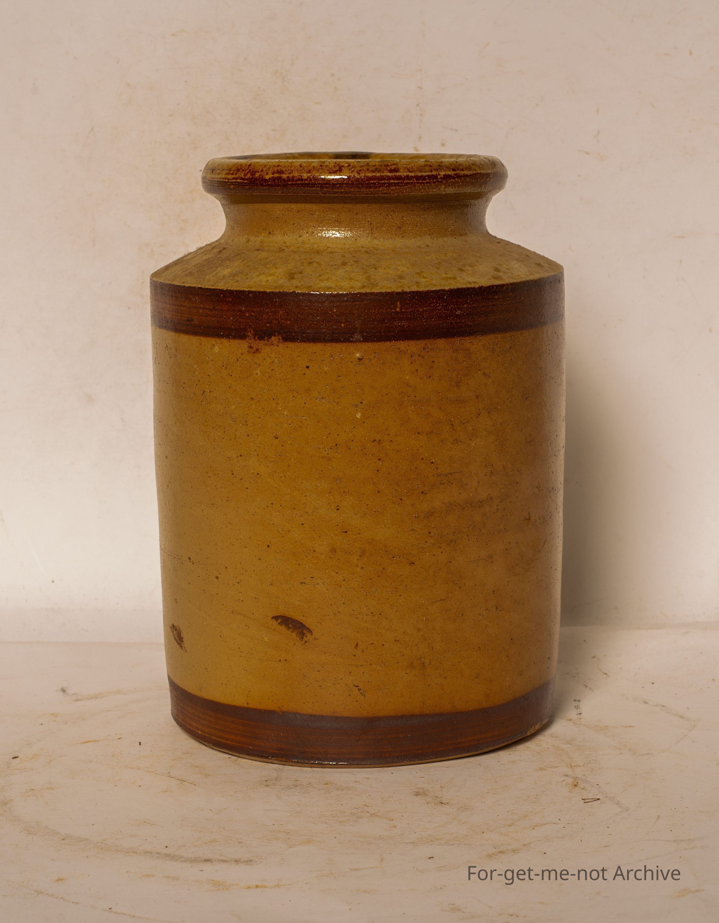 Stone rear jar, Storage Jar, Bendigo Pottery, this this jar is another one of the darker striped ones. Very similar to previous one, in very good order. No stamping, but, 3 quartz stamped into the shoulder.Collection