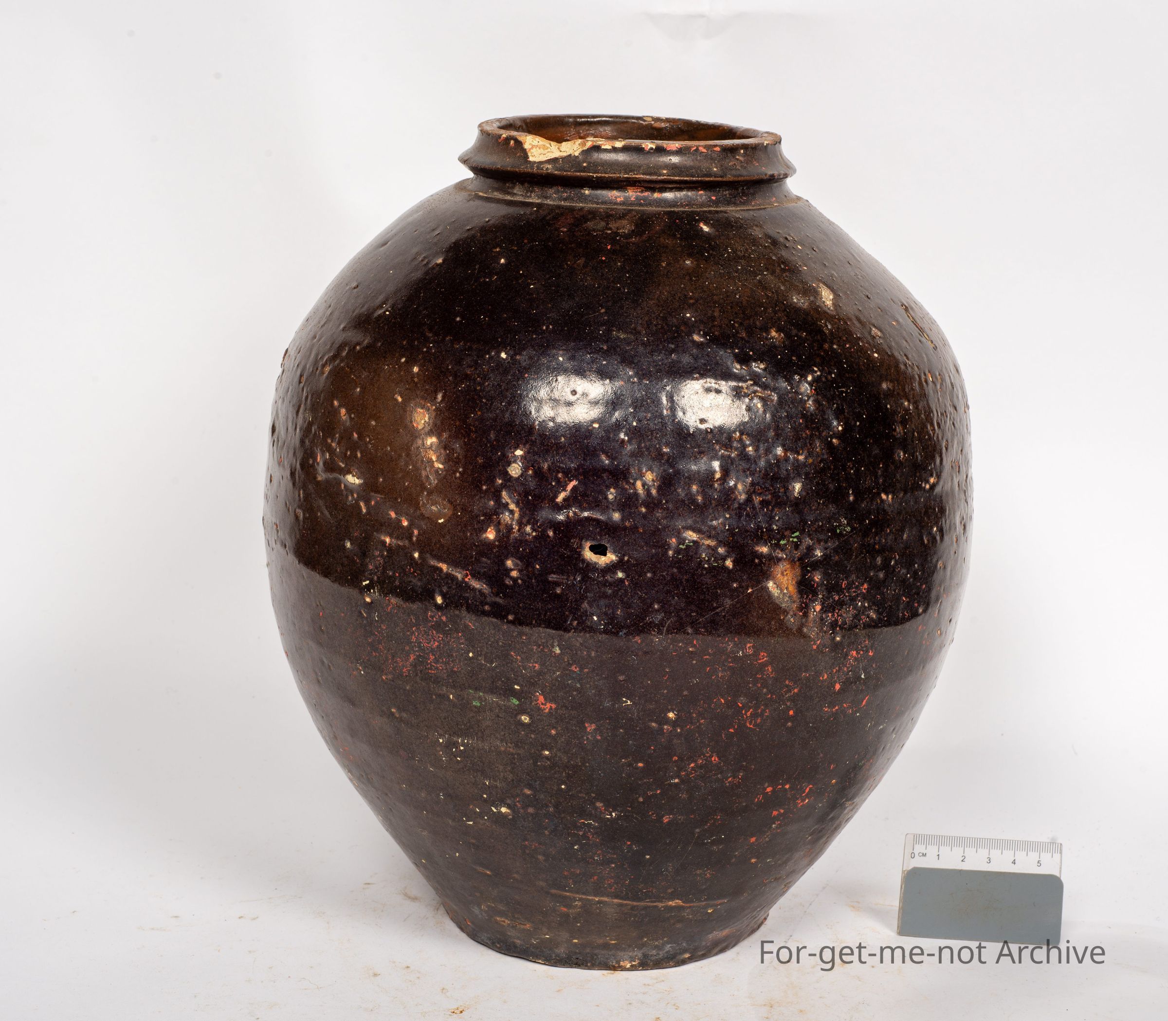 Classical Chinese storage pot. Few chips and marks on it, but in reasonable condition for the age. The standard dark brown glaze