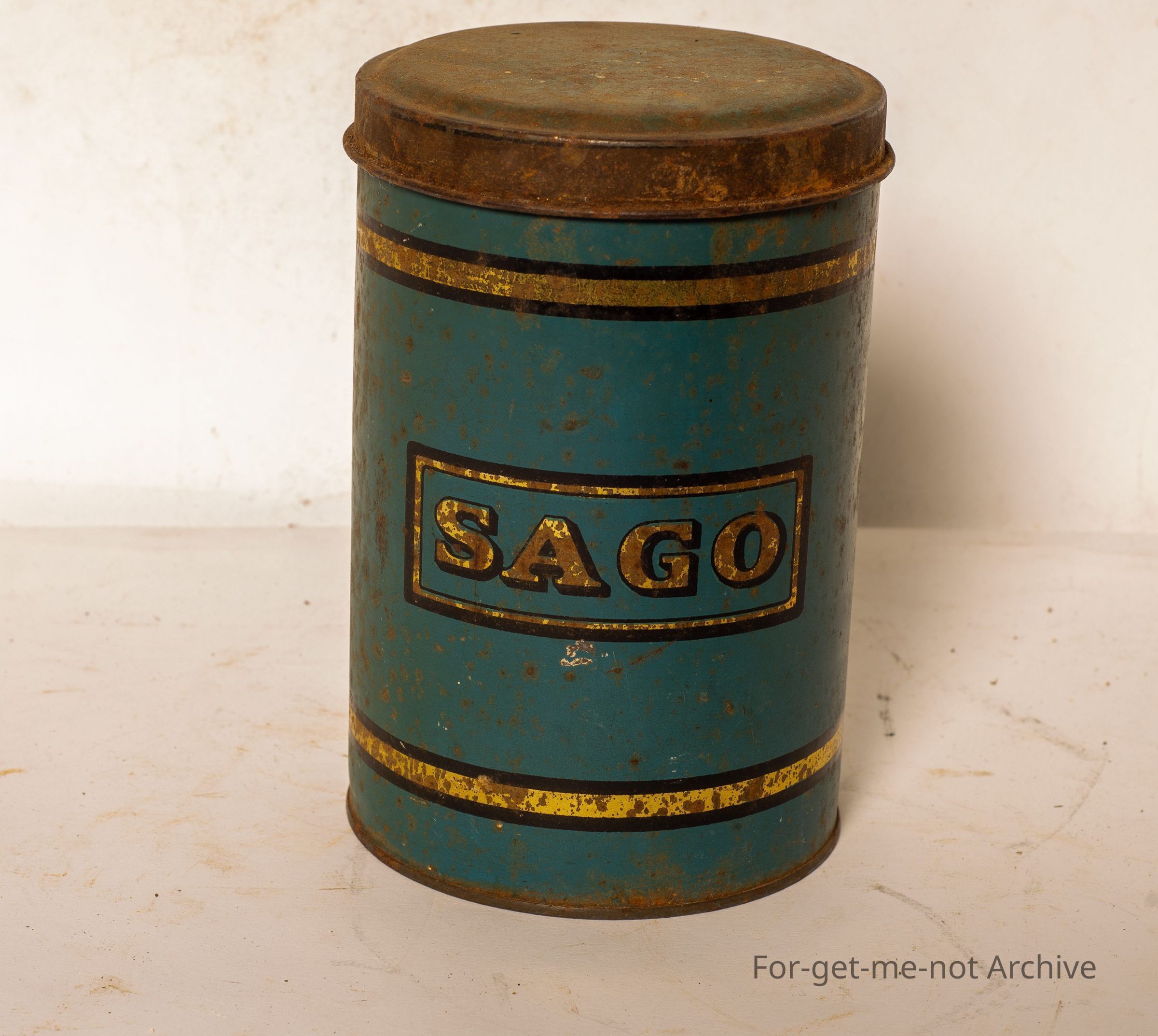 This is a Tin Storage Canister, This one has Sago on the side, not in tick tock condition, fairly common canister for the kitchen.