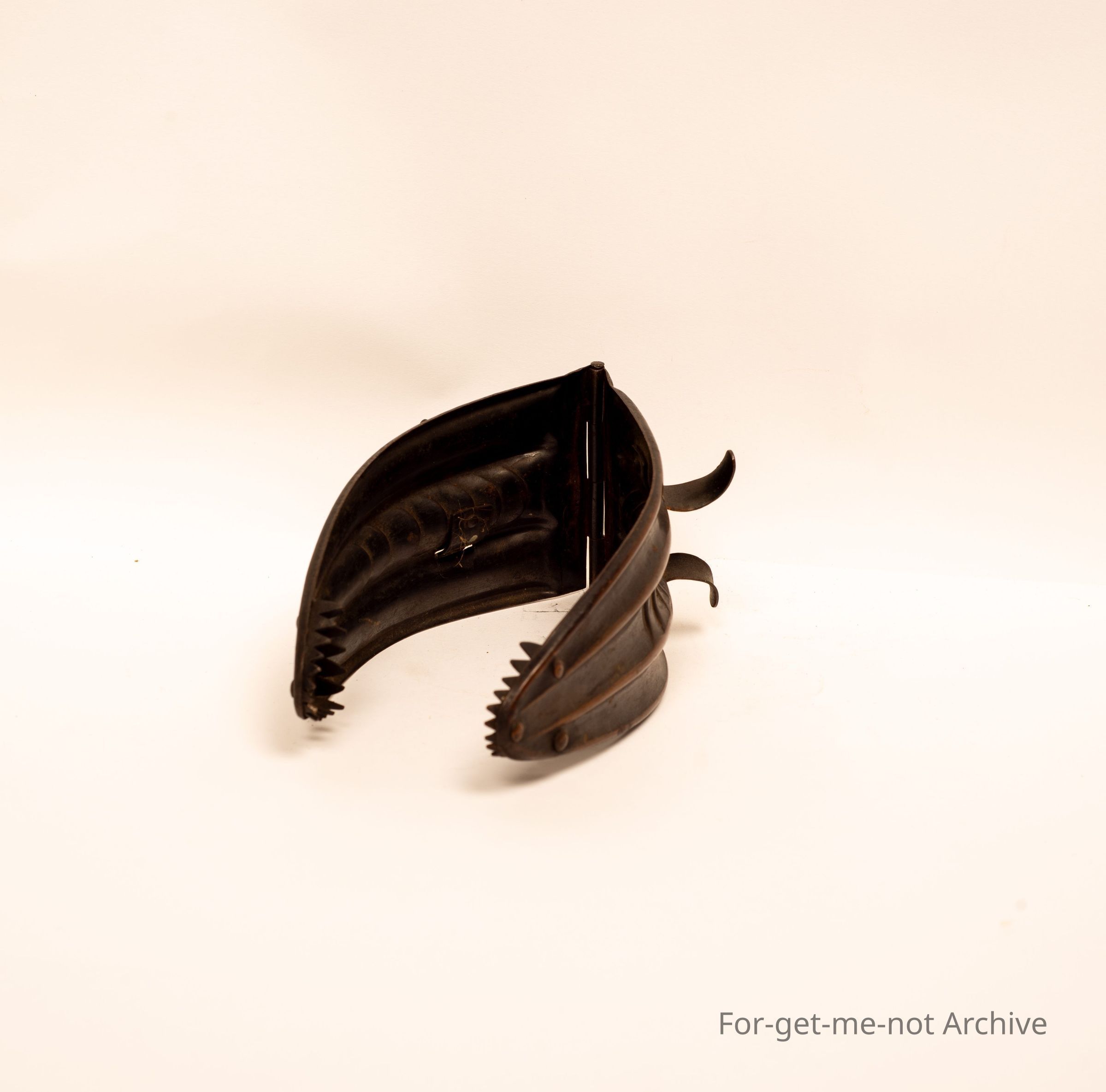 A set of hand metal jaws for picking up briquettes. Stamped patent. Beautifully made.