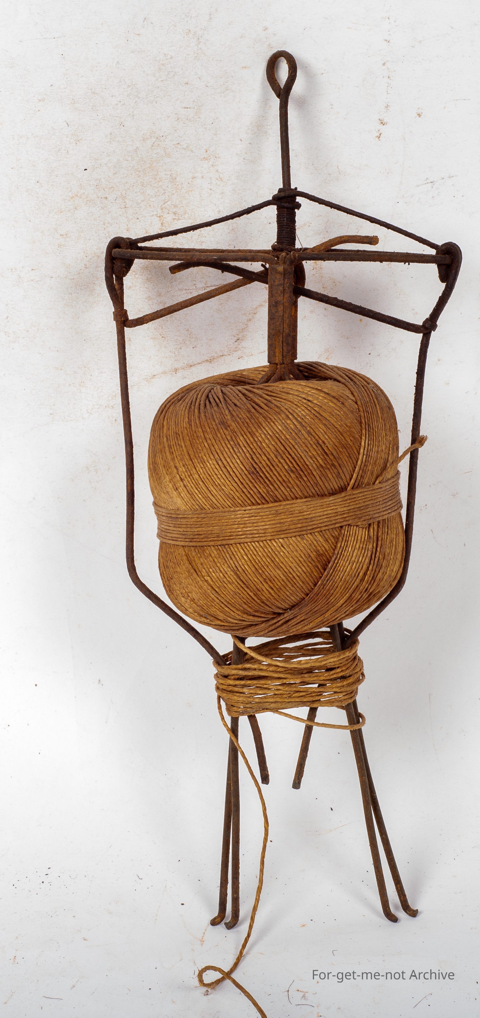 This piece is a wire work string dispenser with a ball of string. This thing would be one of the rarest pieces of wire work you would ever find. The mechanism is adjustable for various sizes ball of string.Collection