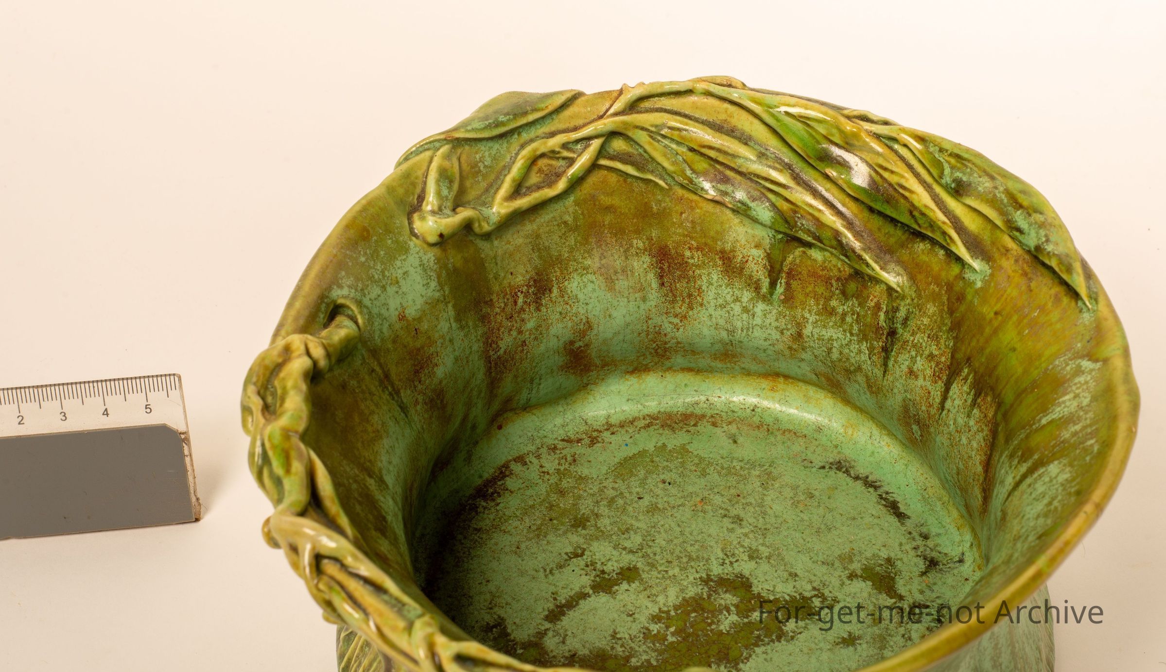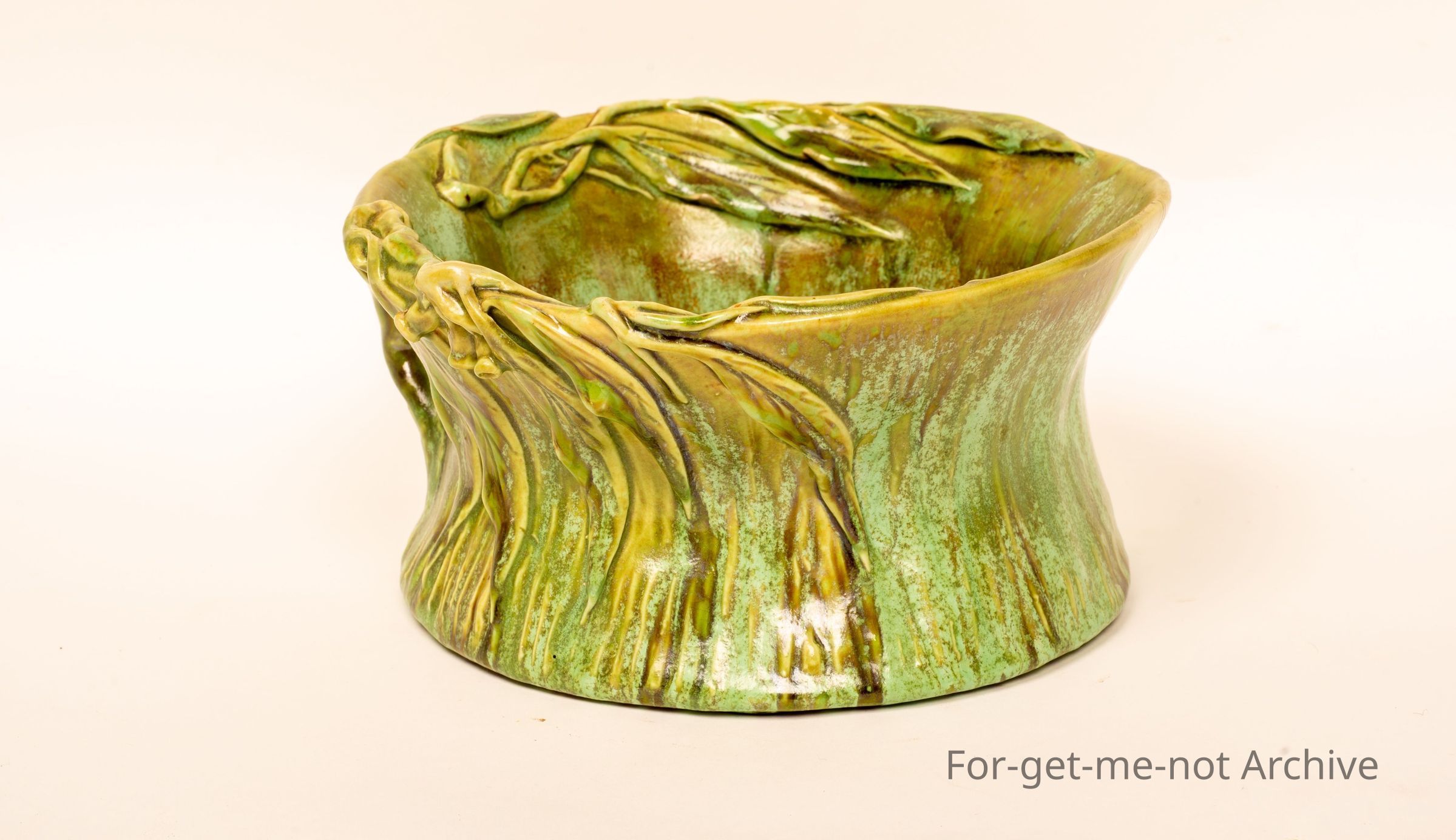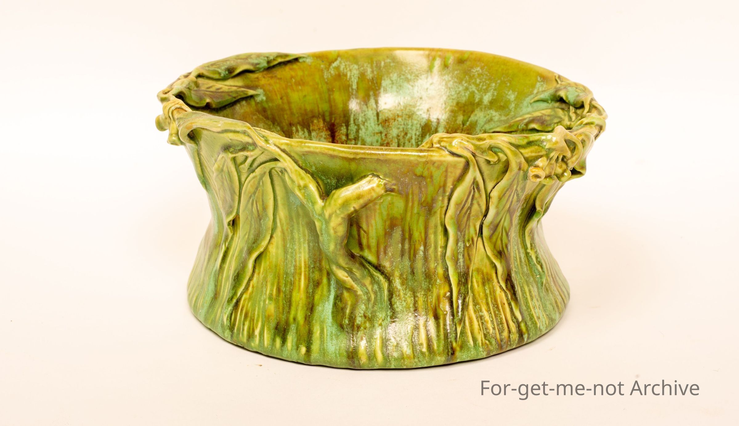 This is a large leafed bowl, green glaze, very decorative. Signed Eric Bryce Carter Sydney.