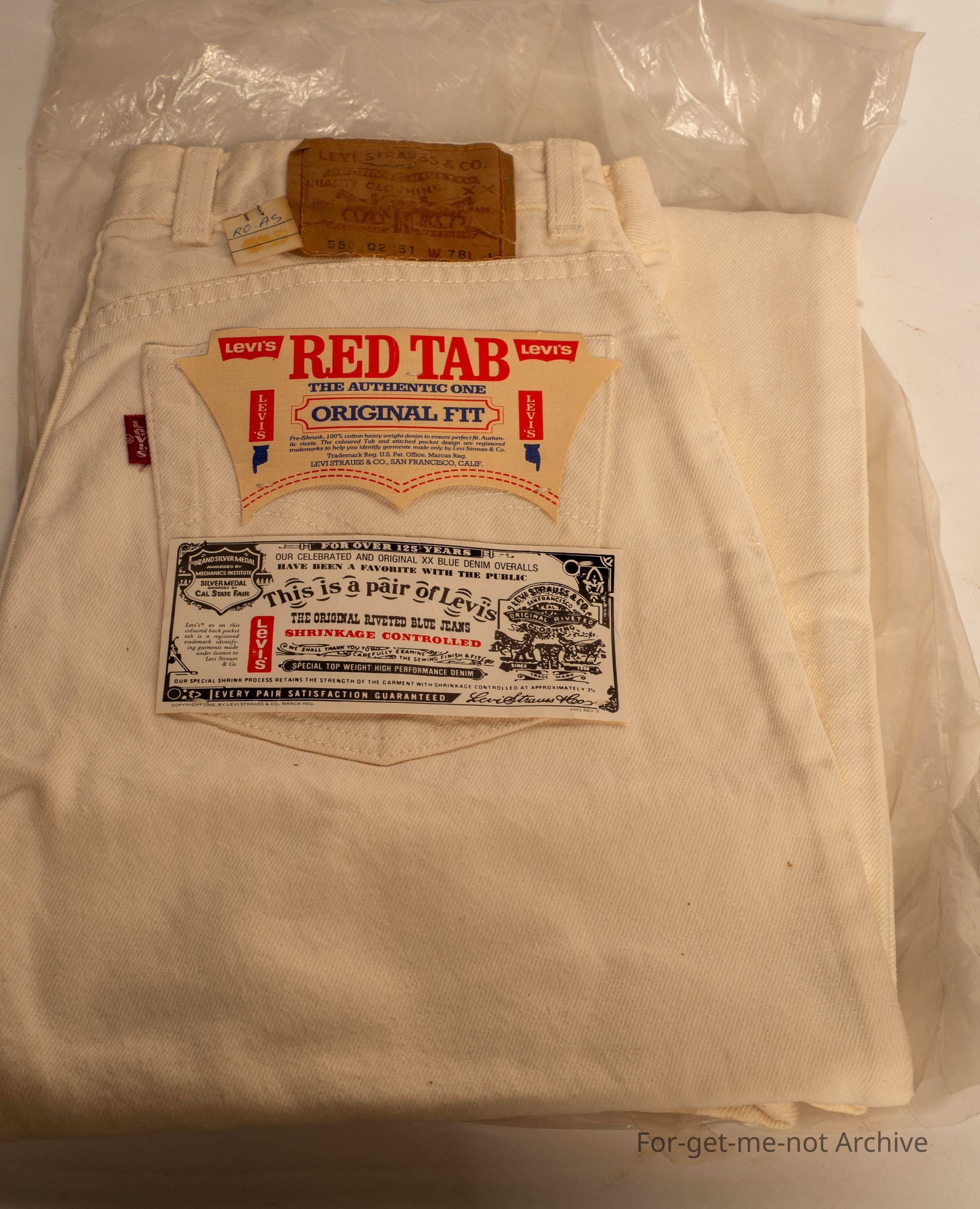 This is a tin suitcase full of unused old stock from a drapery store in black wool. Was closing down. It consists of, Shearer's trousers, red tab, Levi's with the original certificate, which are considered very collectible, all different types of trousers, all unused, all brand new.Collection