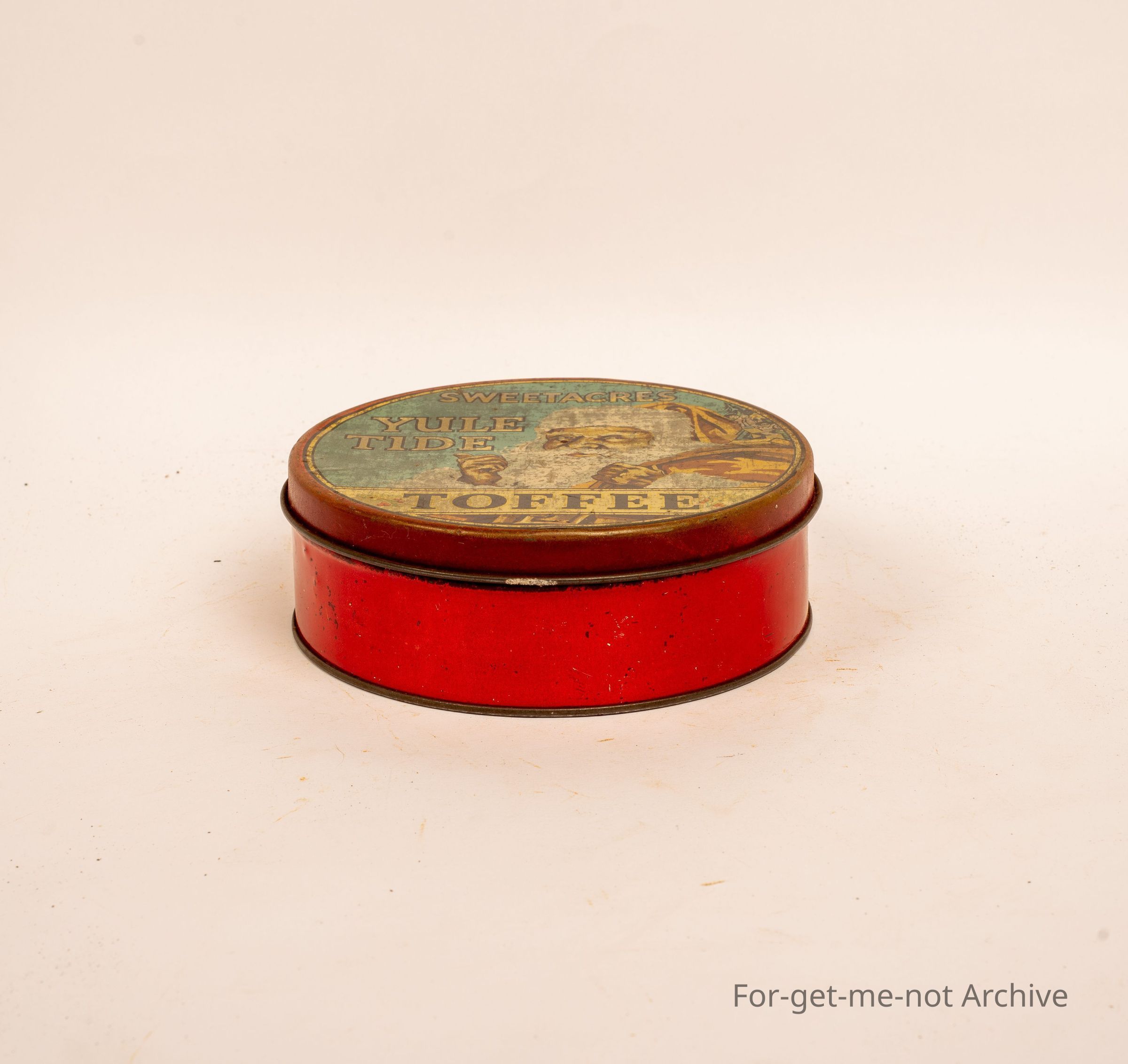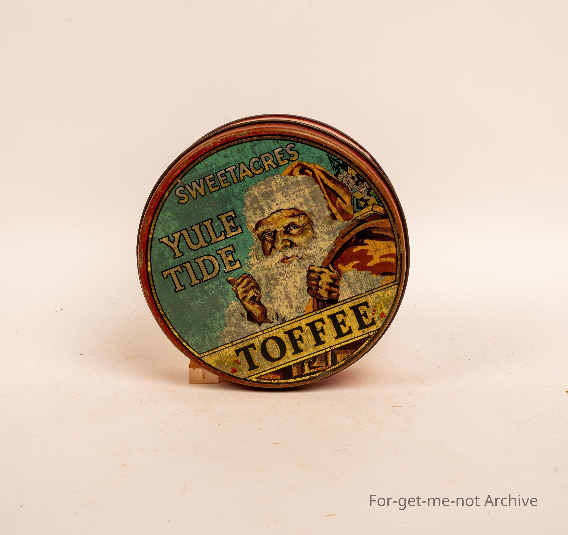 Sweetacres Toffee tin Christmas tin featuring Yule tide and Santa