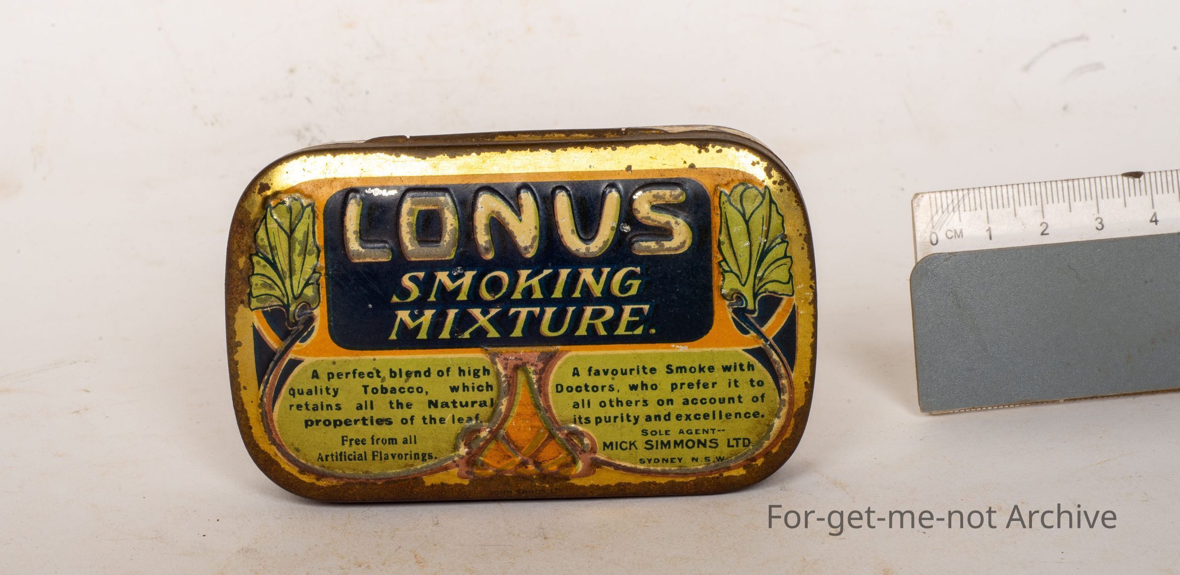 Lonus Tabacco Tin, Australian tin , sole agents Mick Simmons Ltd Sydney.