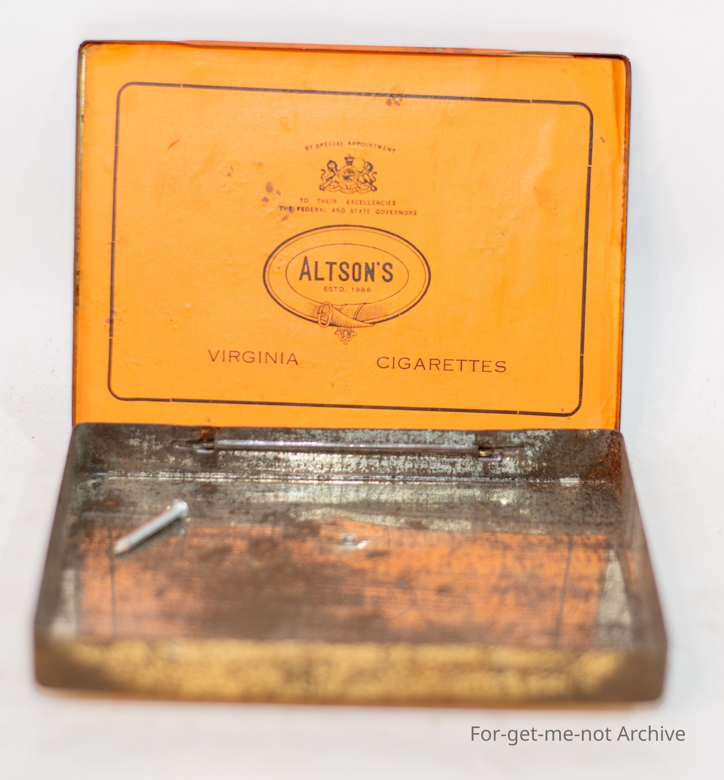 This tin with Asian scene was made by Marsh and sons , Melbourne for Altson Tobacconist cnr of Collins and Elizabeth street Melbourne