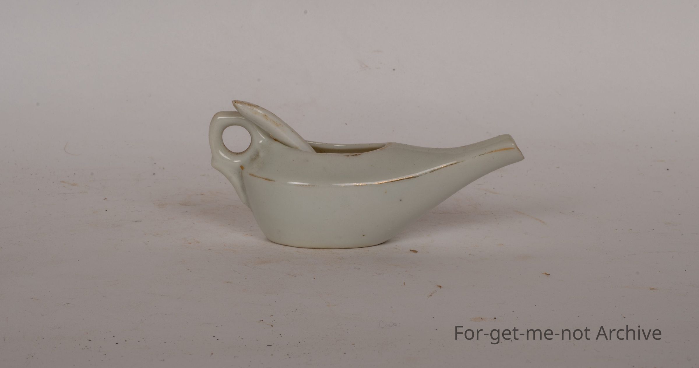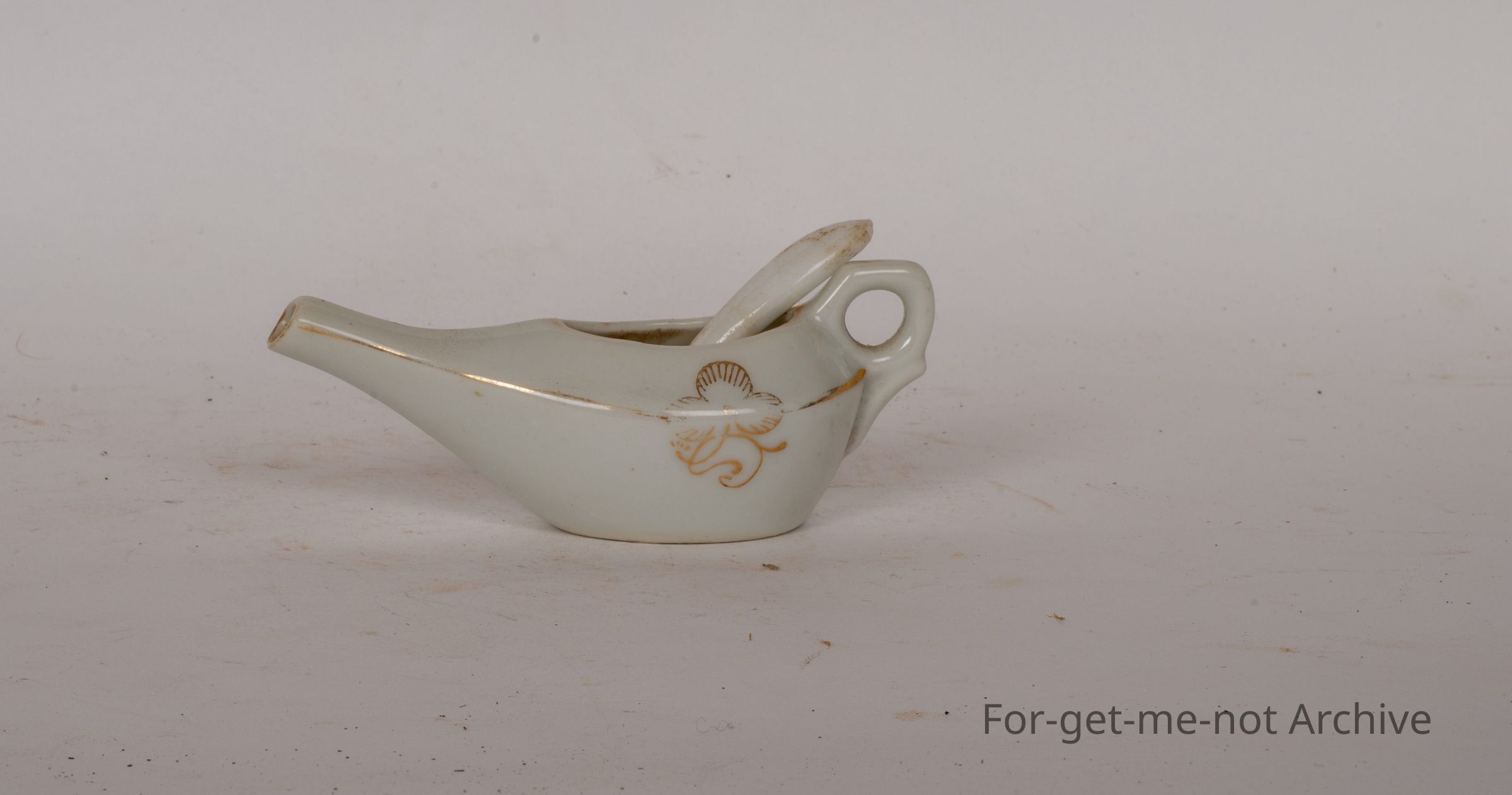 very small ornate table jug with a little white spoon, bit of gold decoration on it, No brand.