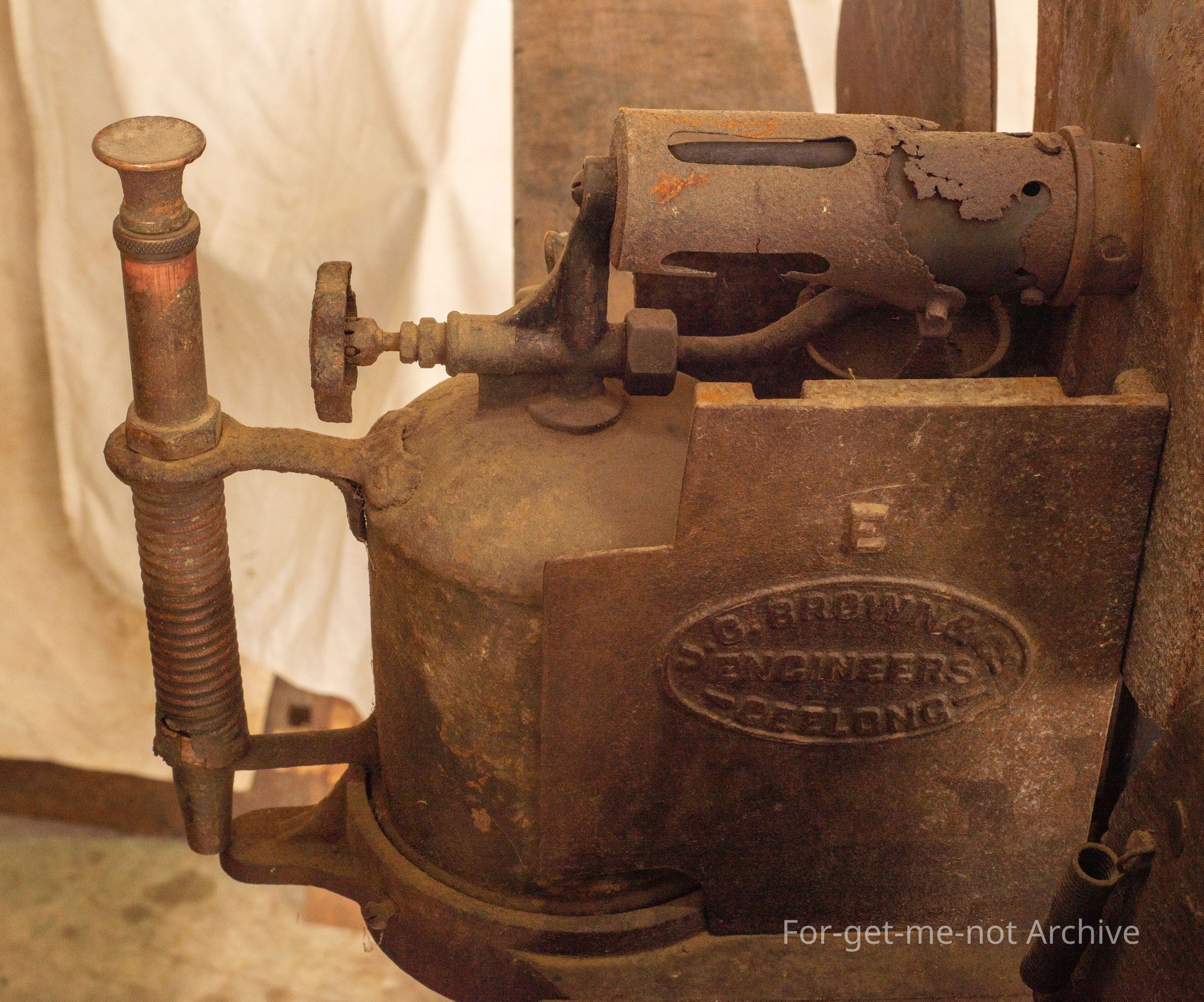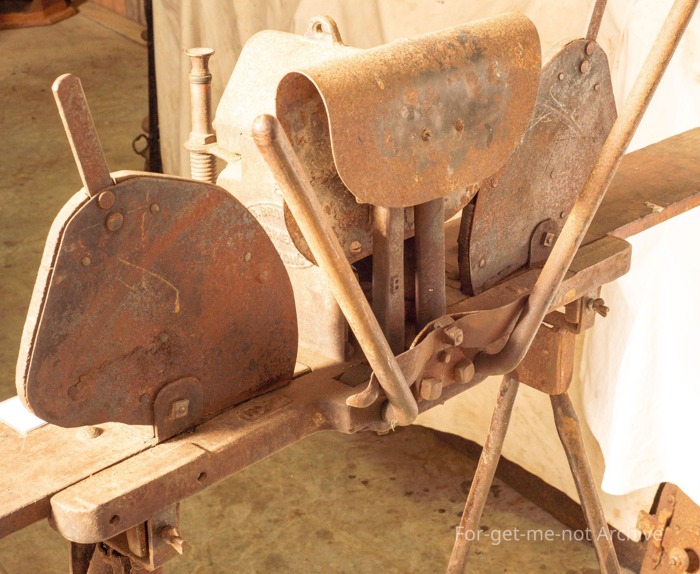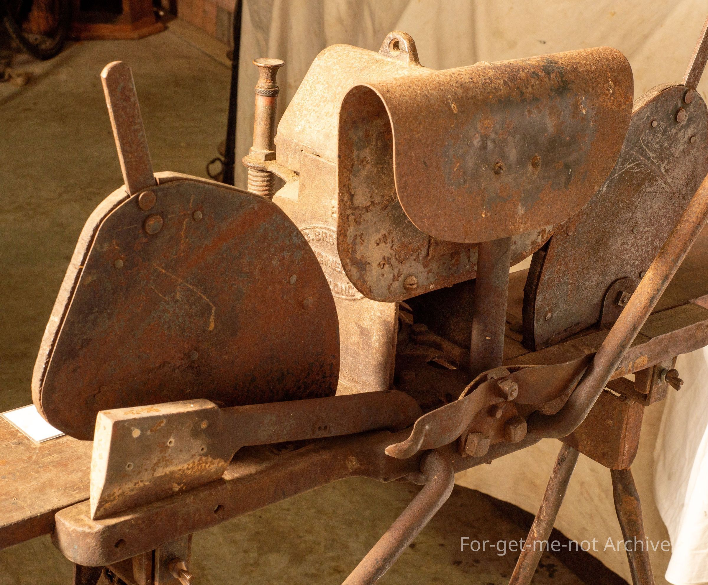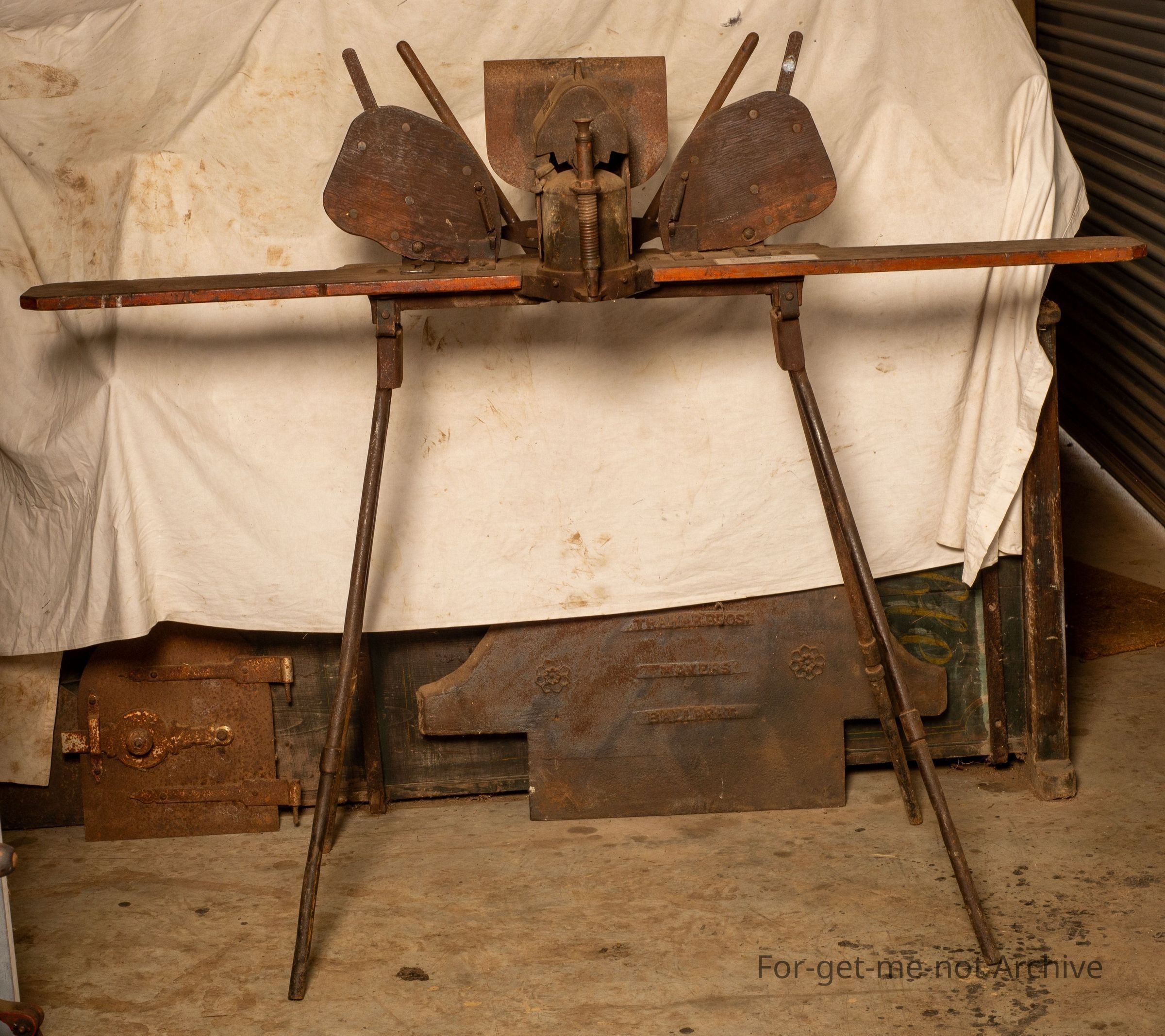 This apparatus was, used by using a blowtorch to heat 2 searing irons that were, in the force of the flame at all time to keep them hot and they alternated from one side to the other. This one originated from Dunlop Station on the Darling River at Louth in New South Wales, came out of the storeroom on the, at Dunlop, been there since the days of Dermot MurrayCollection