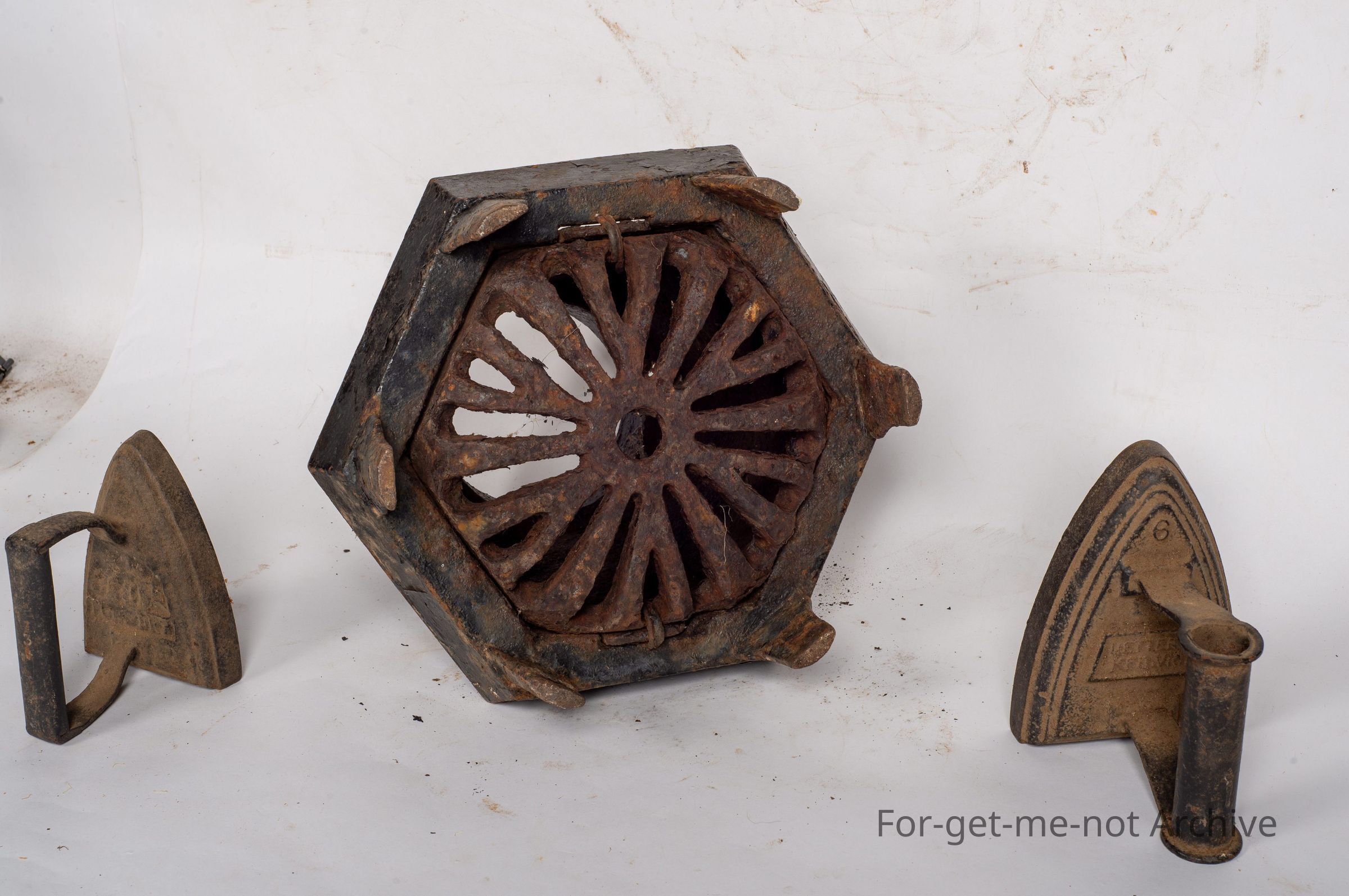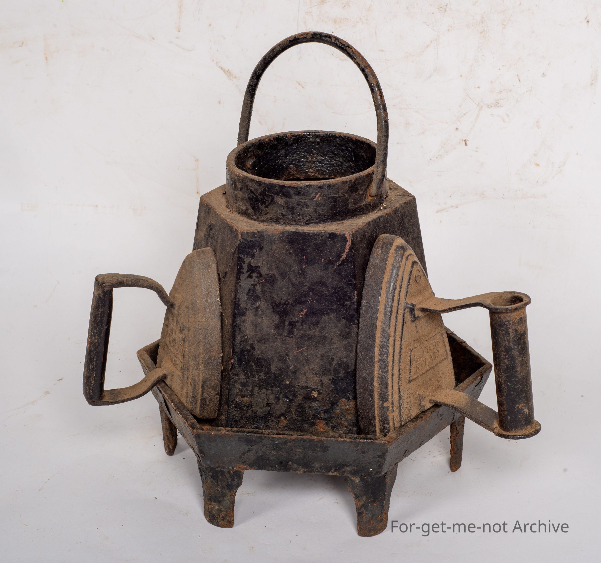 This is a 6 sided Tailors Flat Iron stove. There's a grate in the bottom. The flat irons are rotated in use. These things are very rare, hardly ever seen outside of museums. This one is from South Australia.Collection
