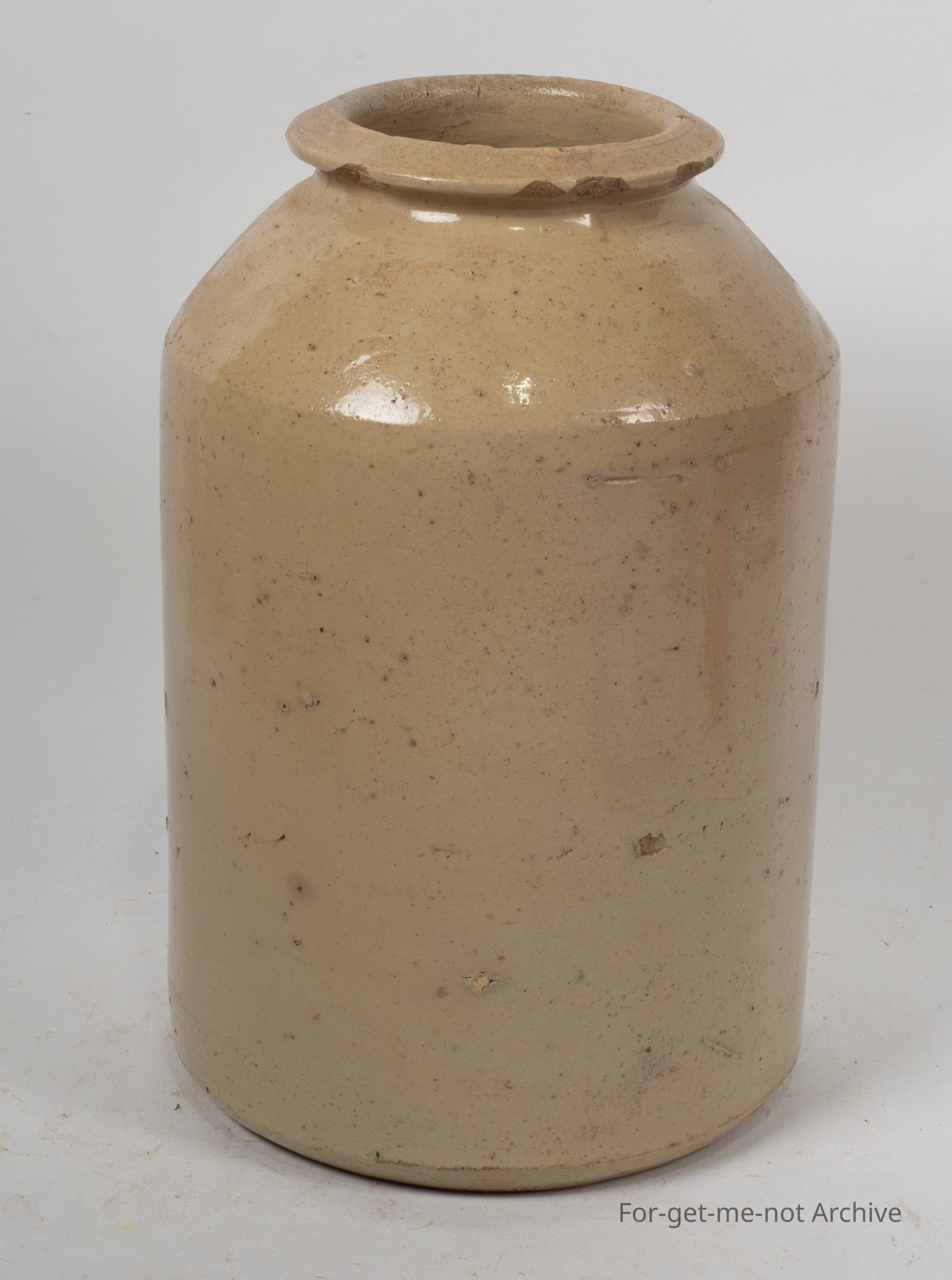 no lid, no stamping, more than likely Fowler, Sydney, chipped edges to top lip