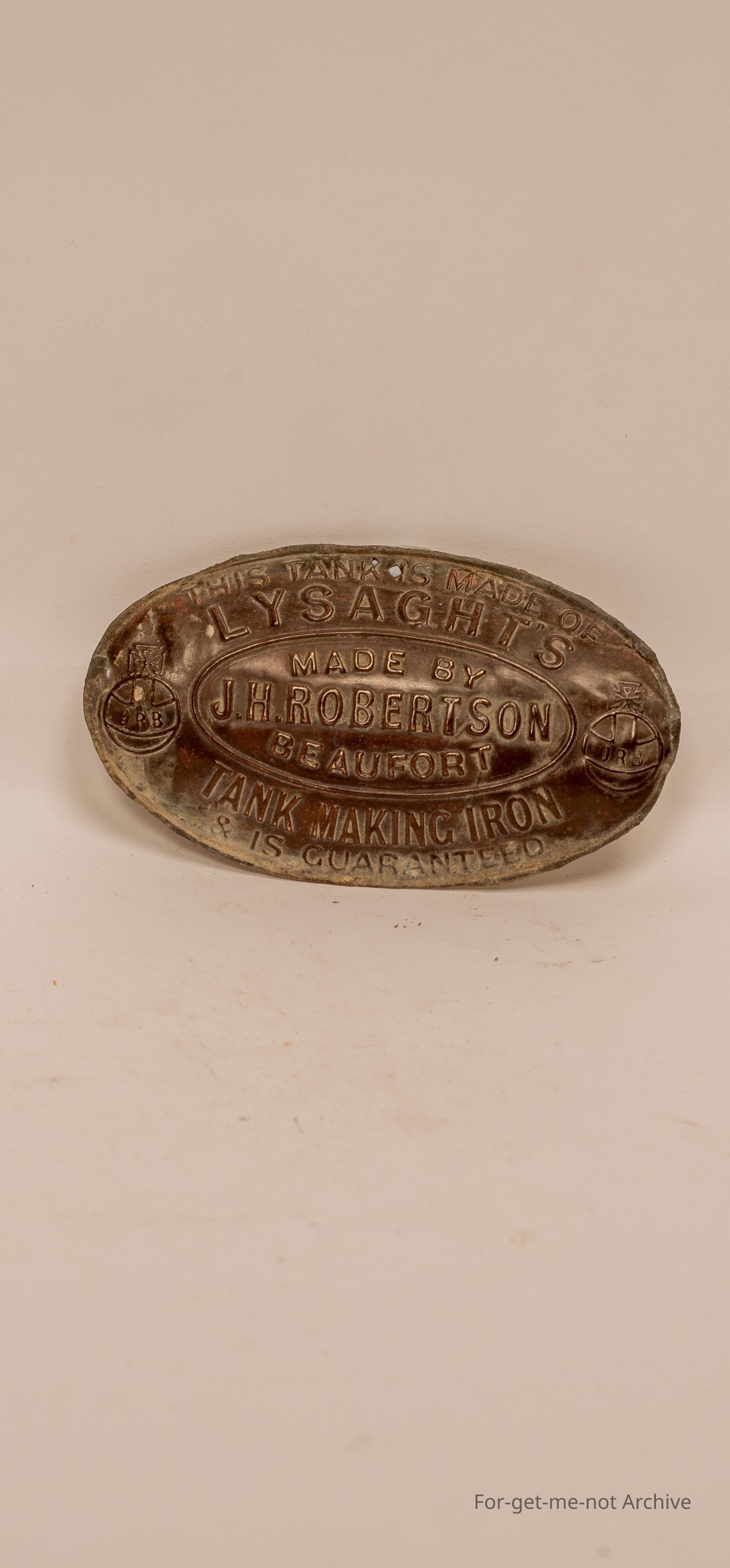Tank Maker's Plaque. This tank is made of Lysaght's Tank Making Iron made by JH Robertson Beaufort. Wonderful piece.
