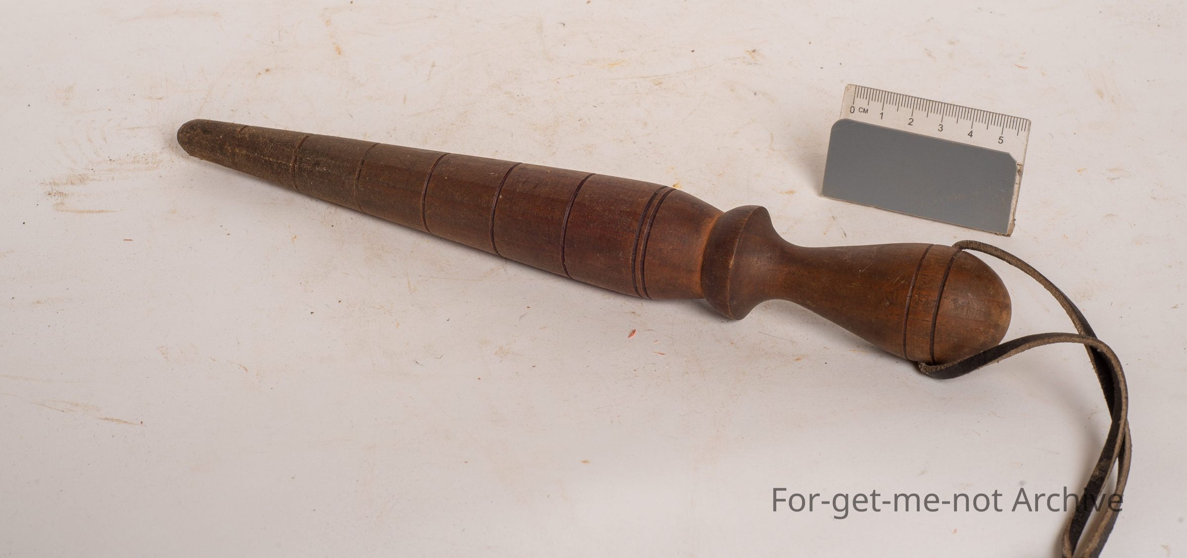 This is a tapered, piece of wood with rings around it, nice handle on the end, a good contender for what is it.