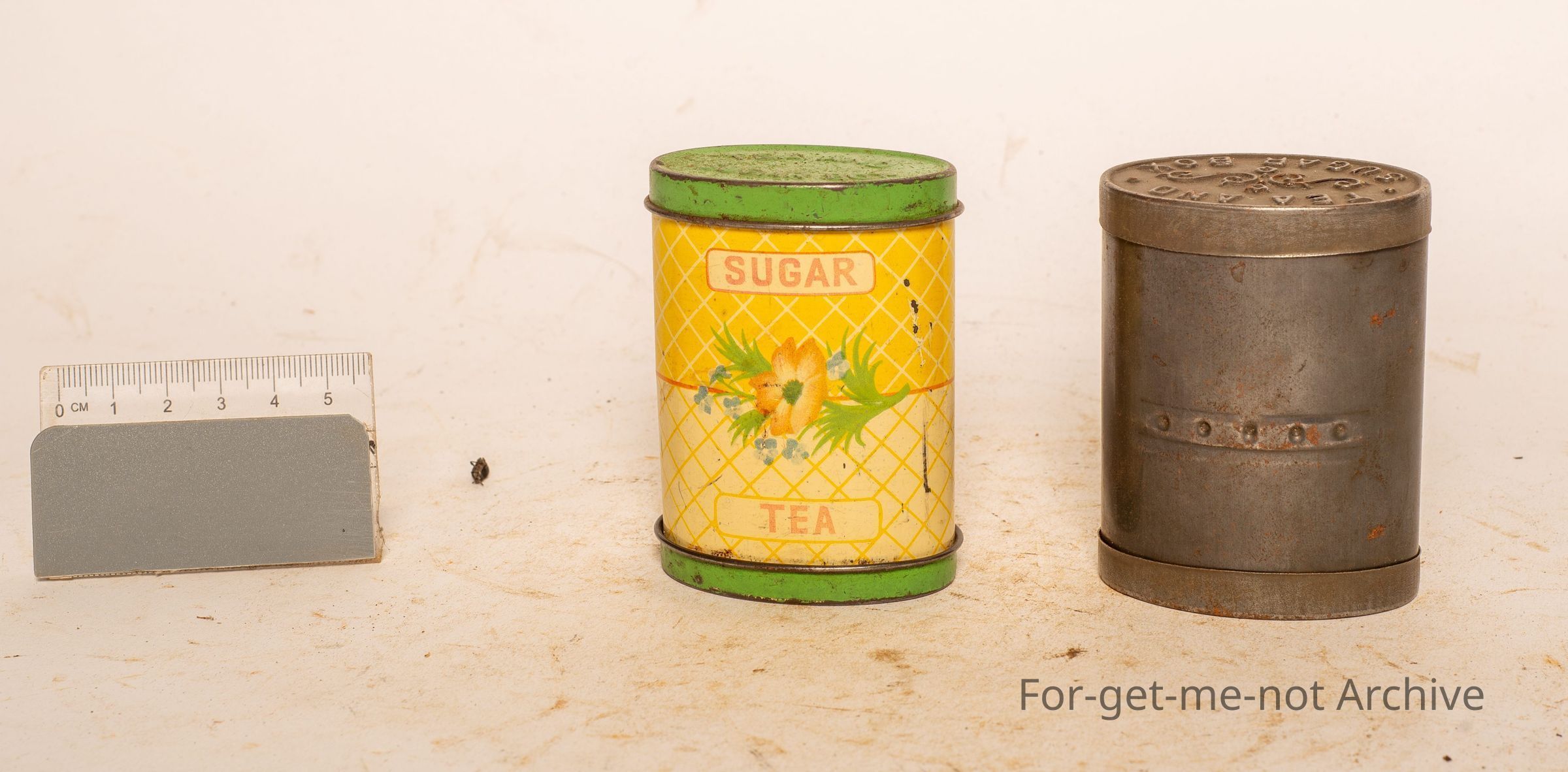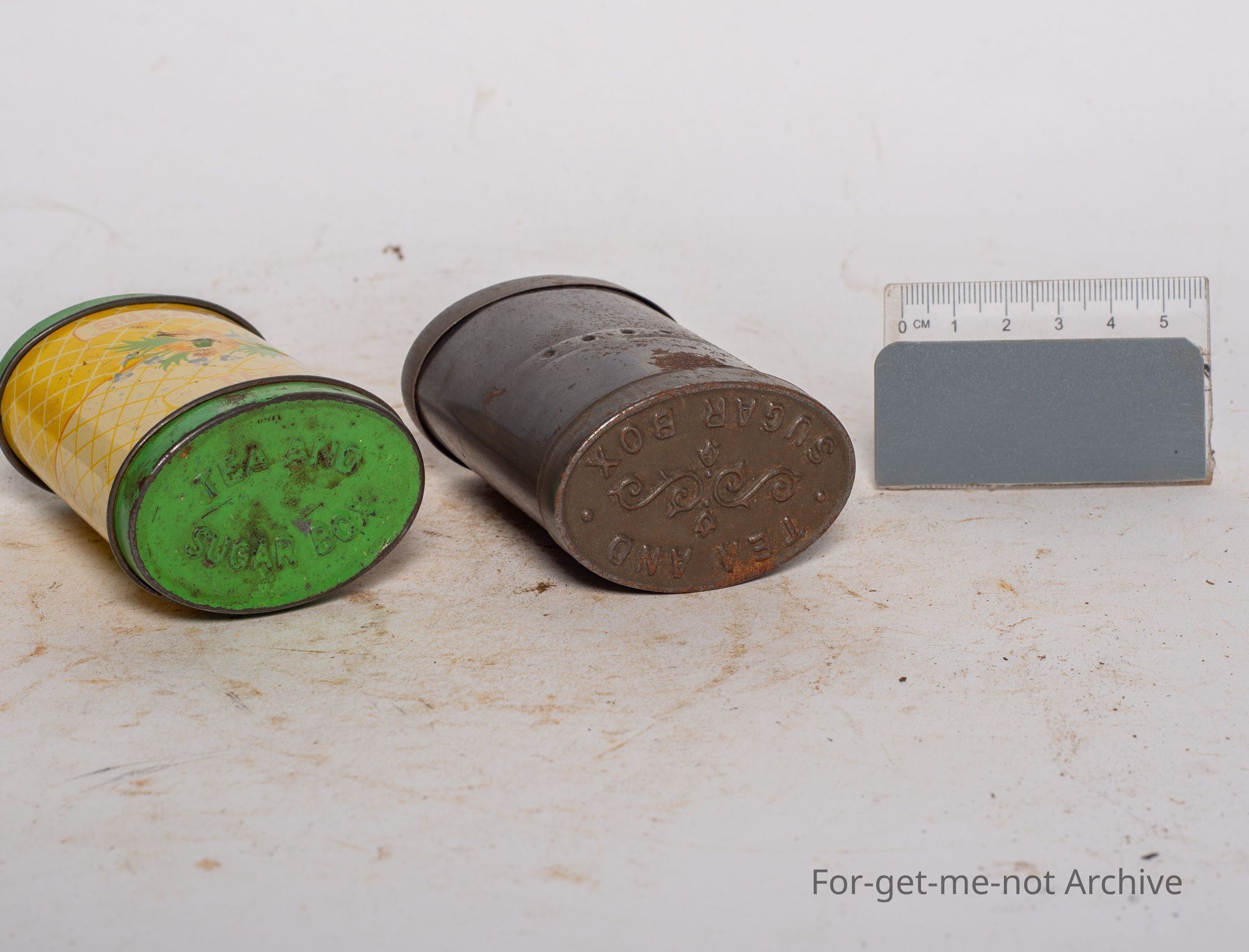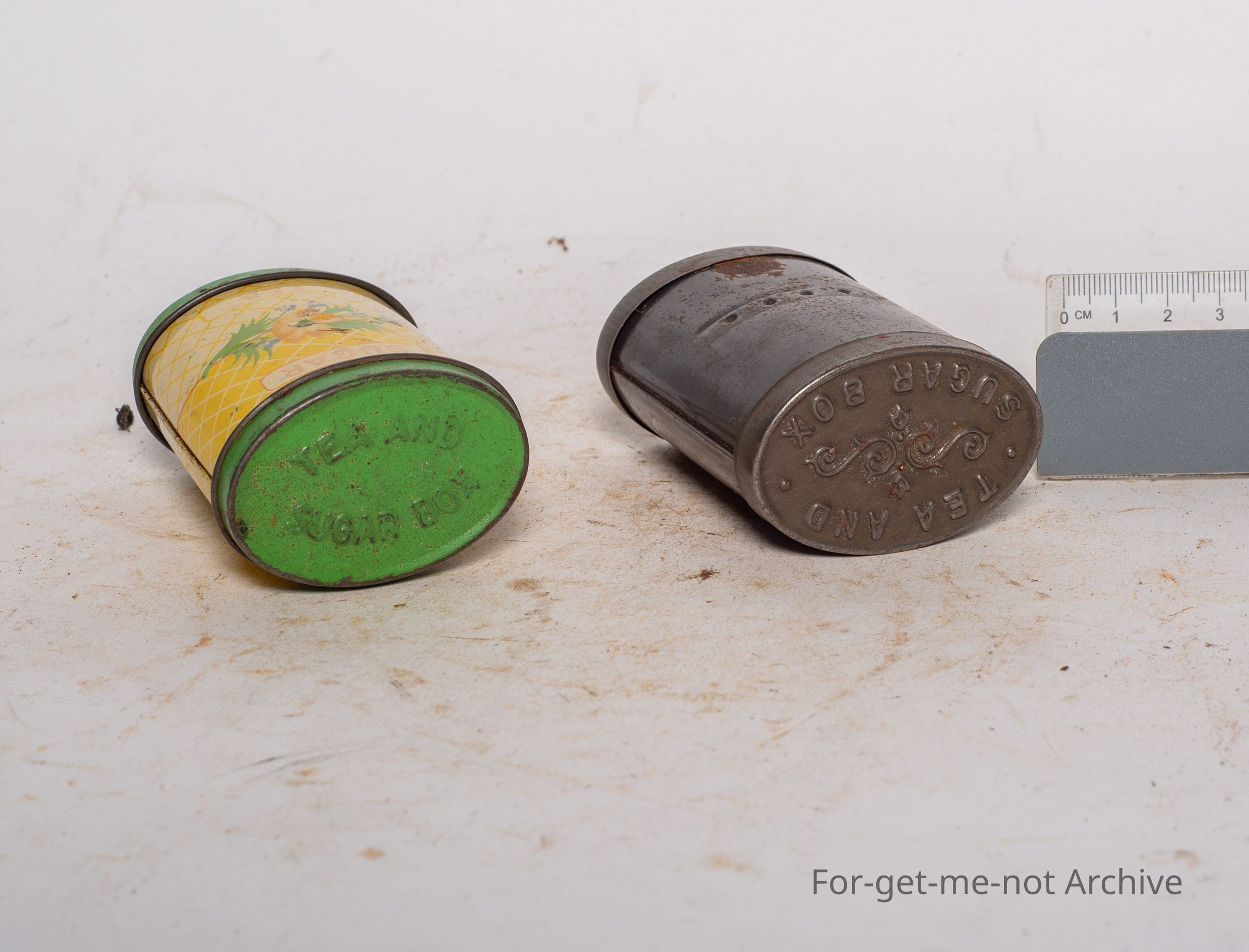 These are 2 of the tea and sugar box that was used in conjunction with using a quart pot. Have a separating baffle in the middle for 1 for tea, one for sugar. One is quite a contemporary one, the other very early.Collection