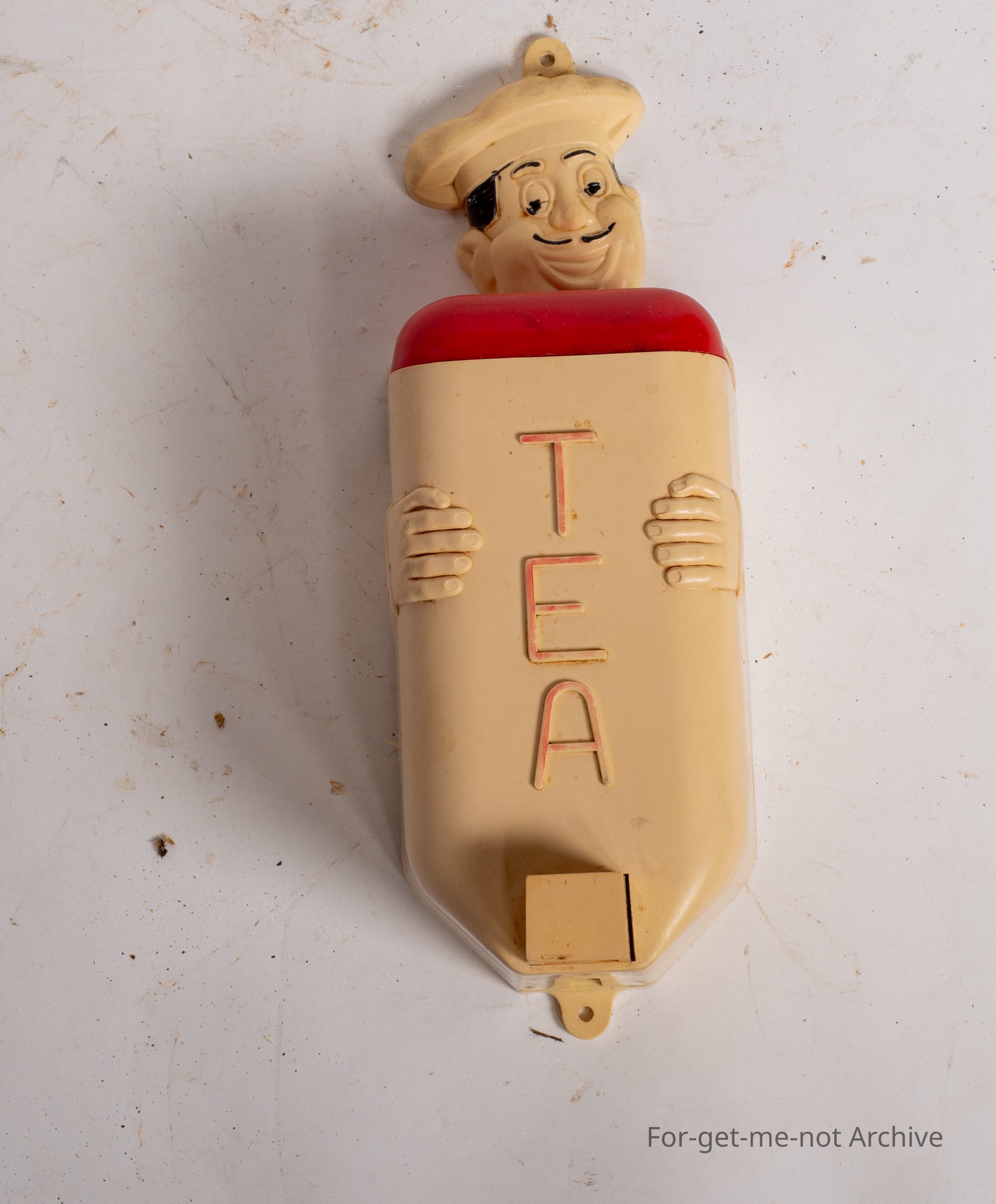 This is a tea caddy made by Gayware Melbourne, with the chef image at the top as a handle. This is all complete and in very good order.