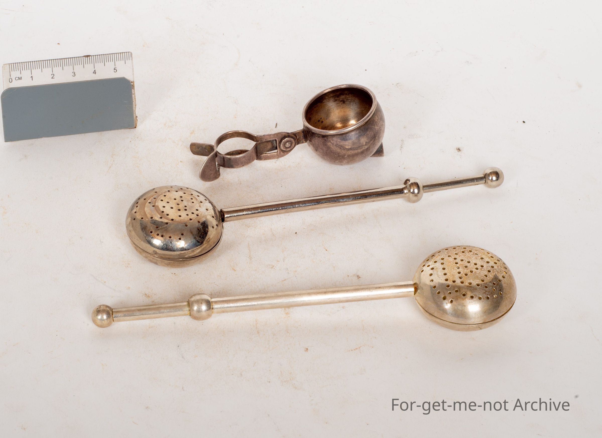 These are 2 beautifully made tea immerses, spring operated from the top. Friends, silver plated. The third one is a little strainer that clamps onto the spout of a teapot so there's no leaves go into the cup of teaCollection
