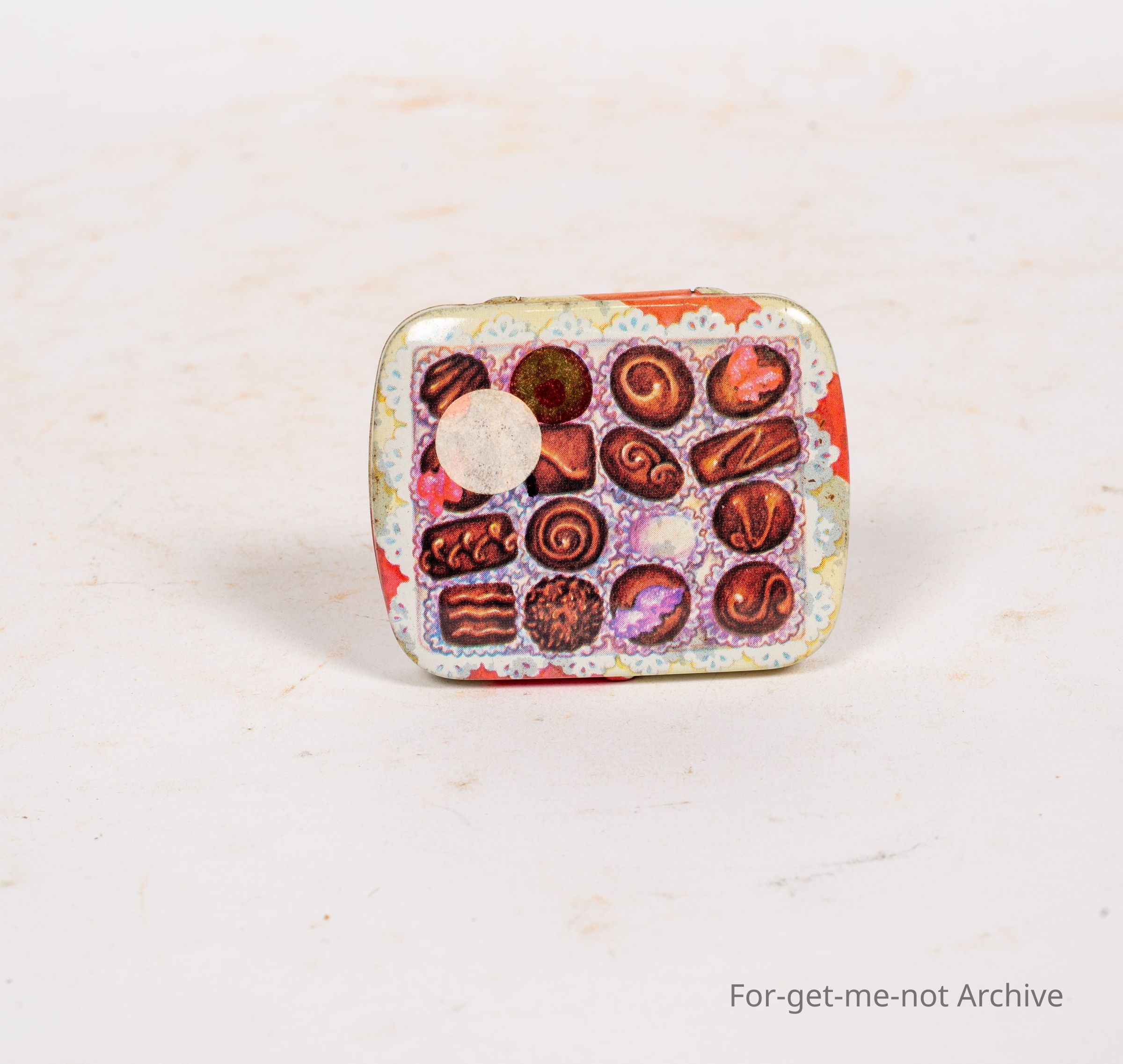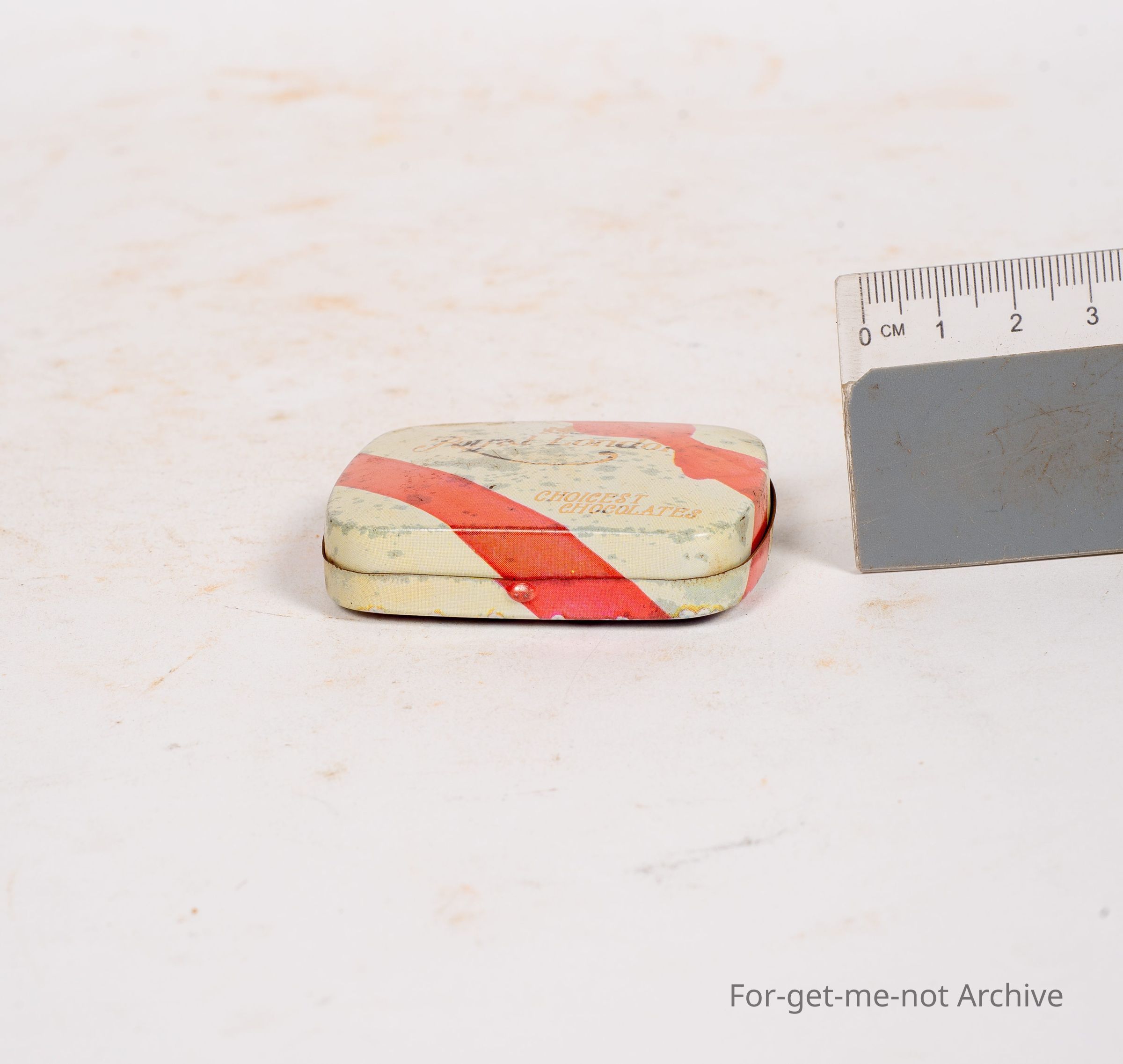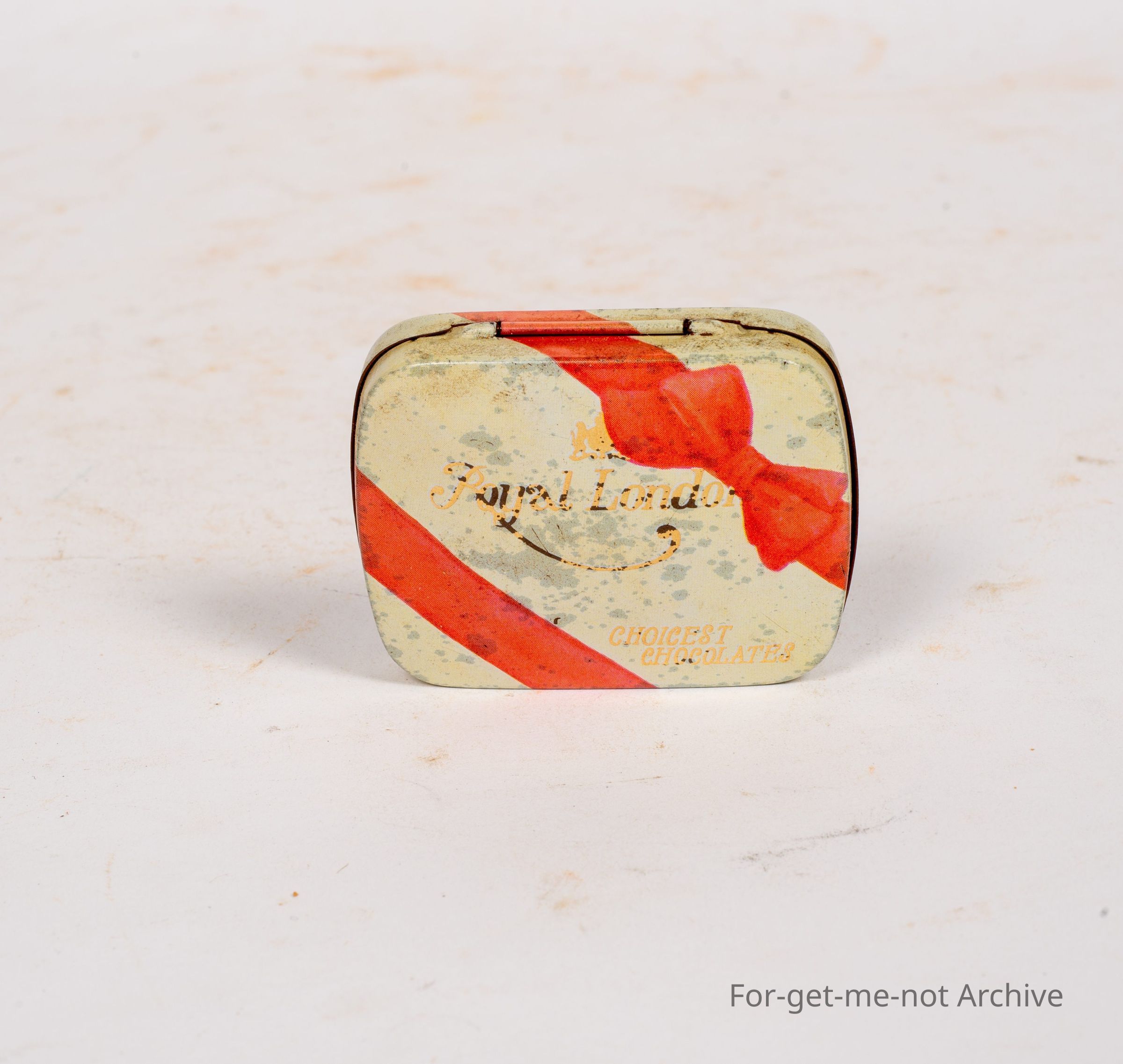 Small tin, coat of arms, Royal London Choicest chocolates. The arrangement or the variety all on the underside of the tin, in good nick,