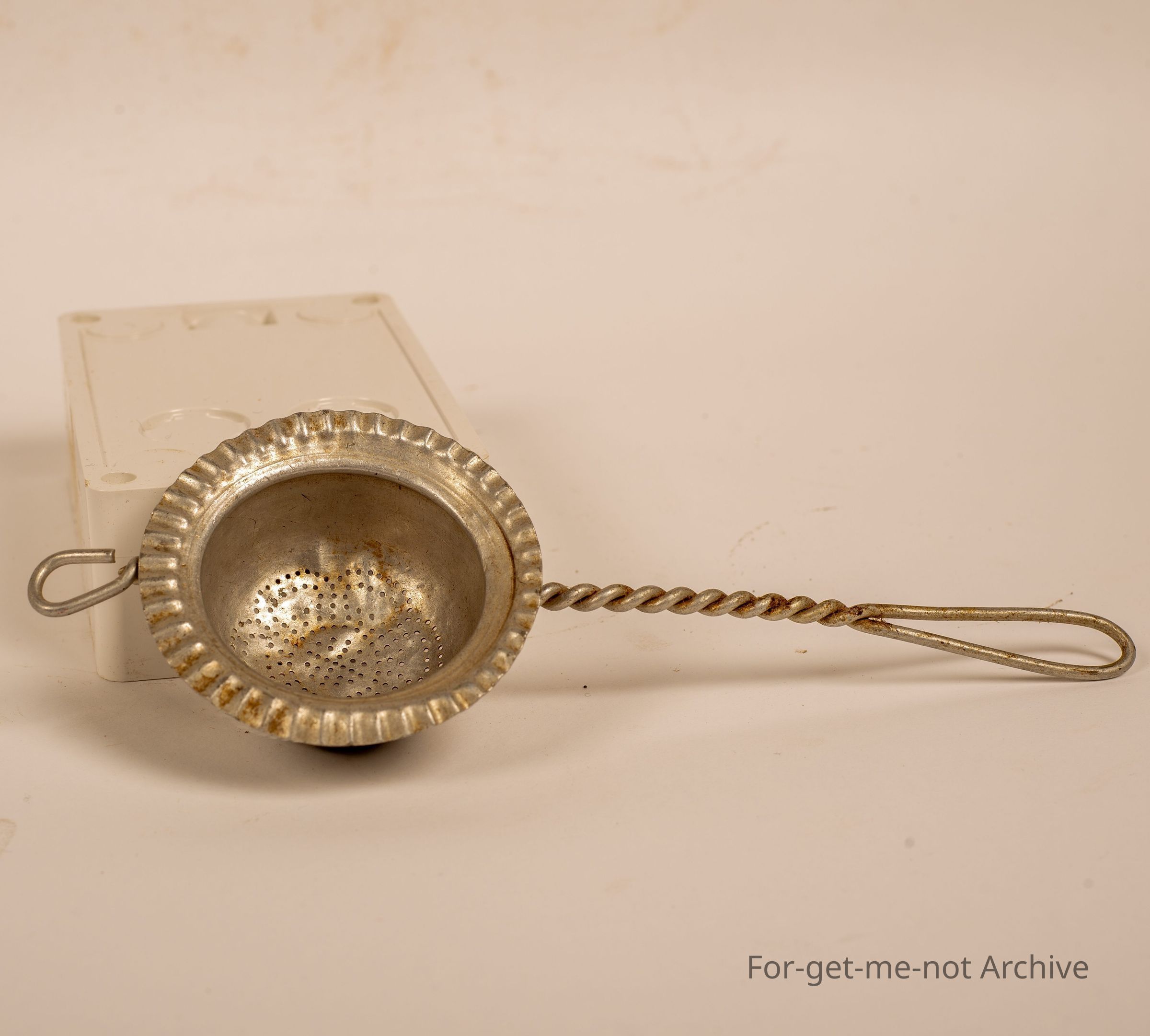 Simple Aluminium Tea strainer on roller, twisted handle