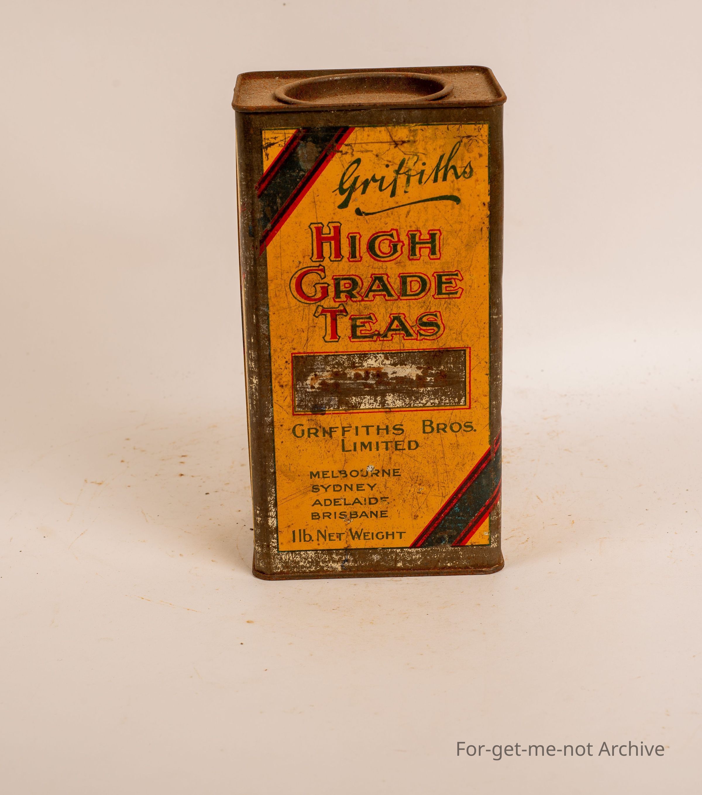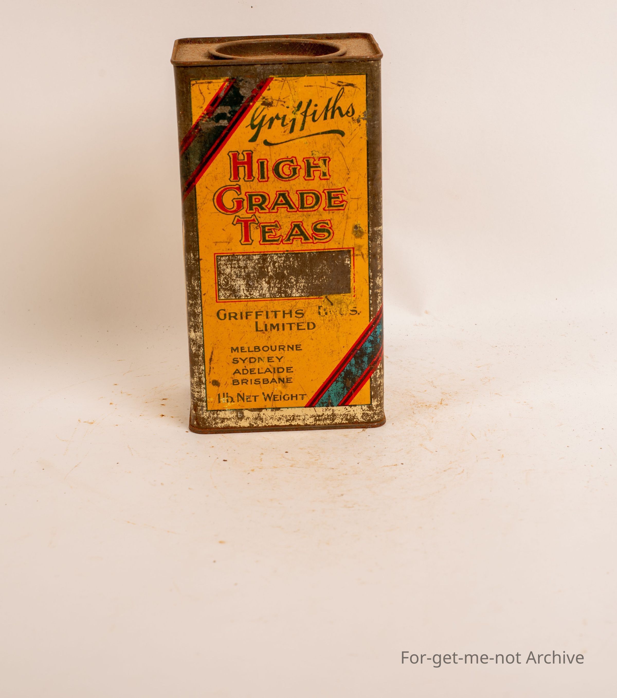 1 lb Griffith Brothers High Grade Tea. Tin in fair condition, probably an unusual tin.