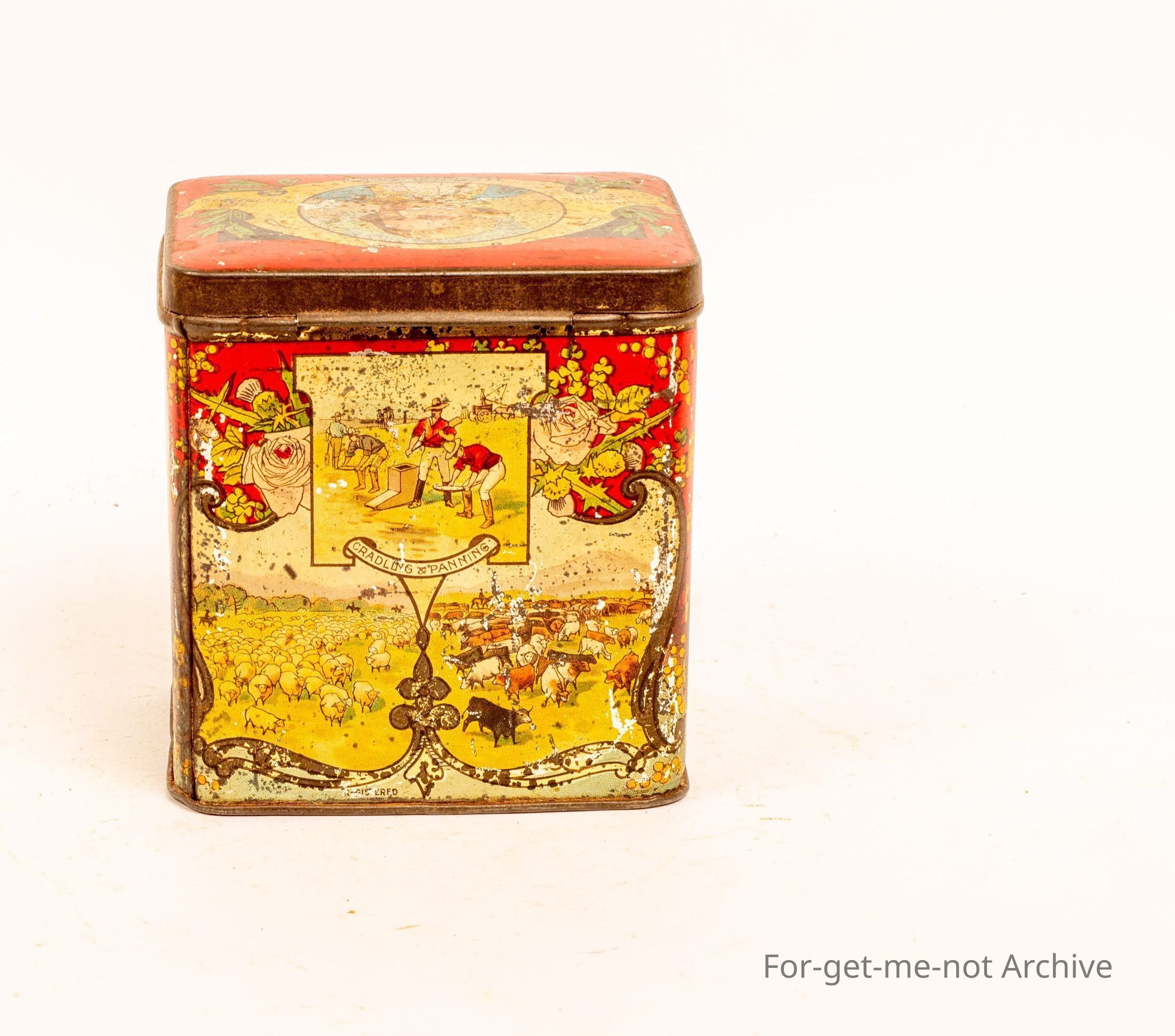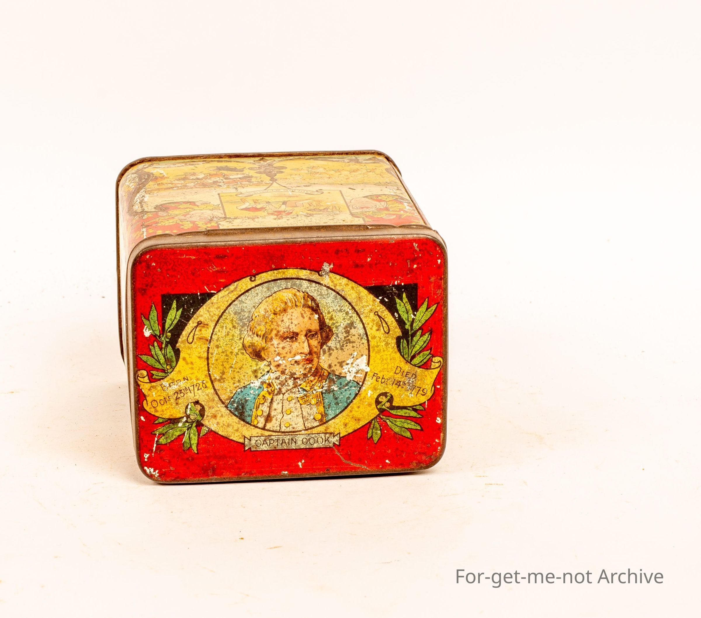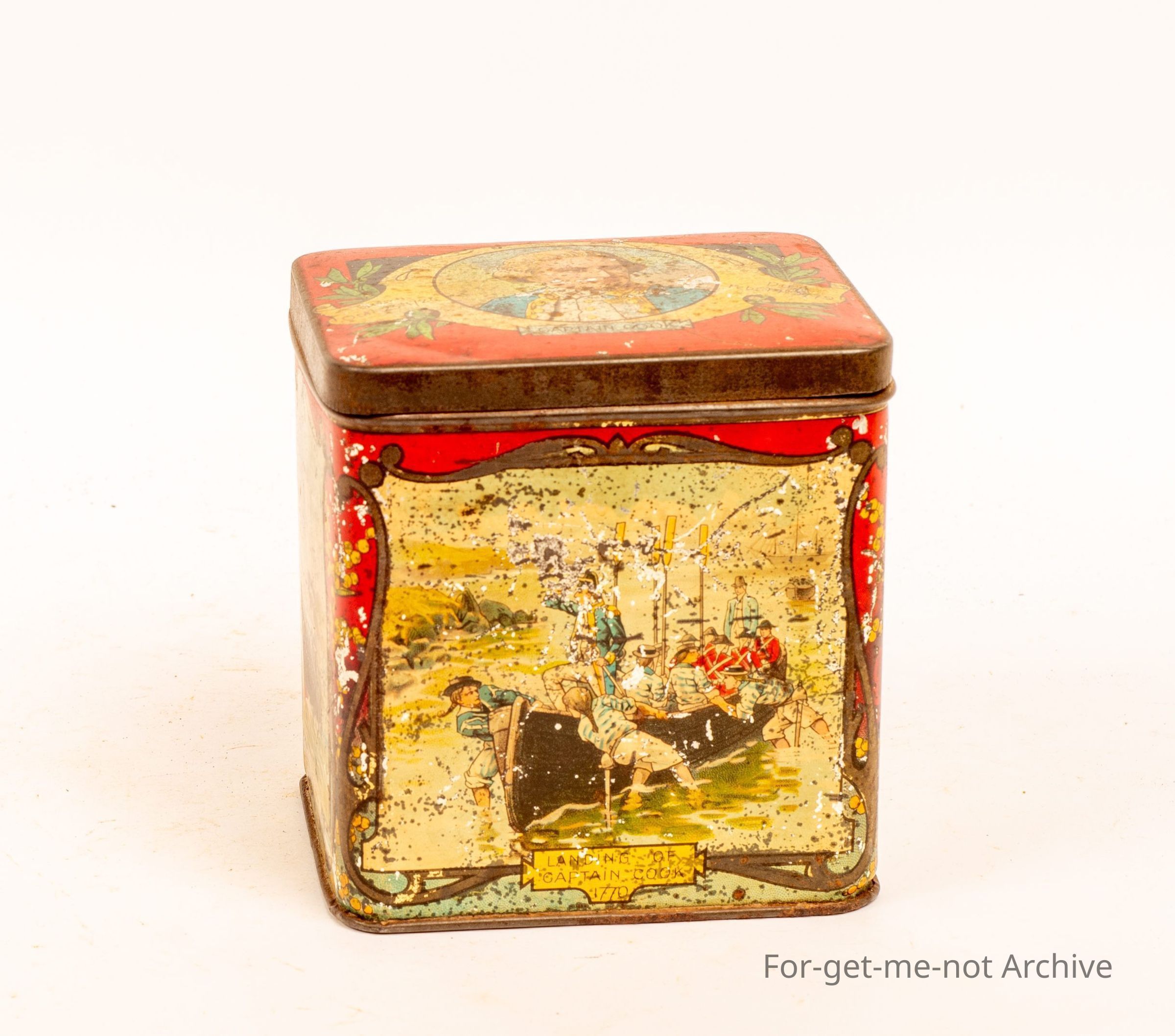 This tin has no branding however the scenes on sides are all Australian scenes celebrating Captain Cooks landing in Australia and his birth and death