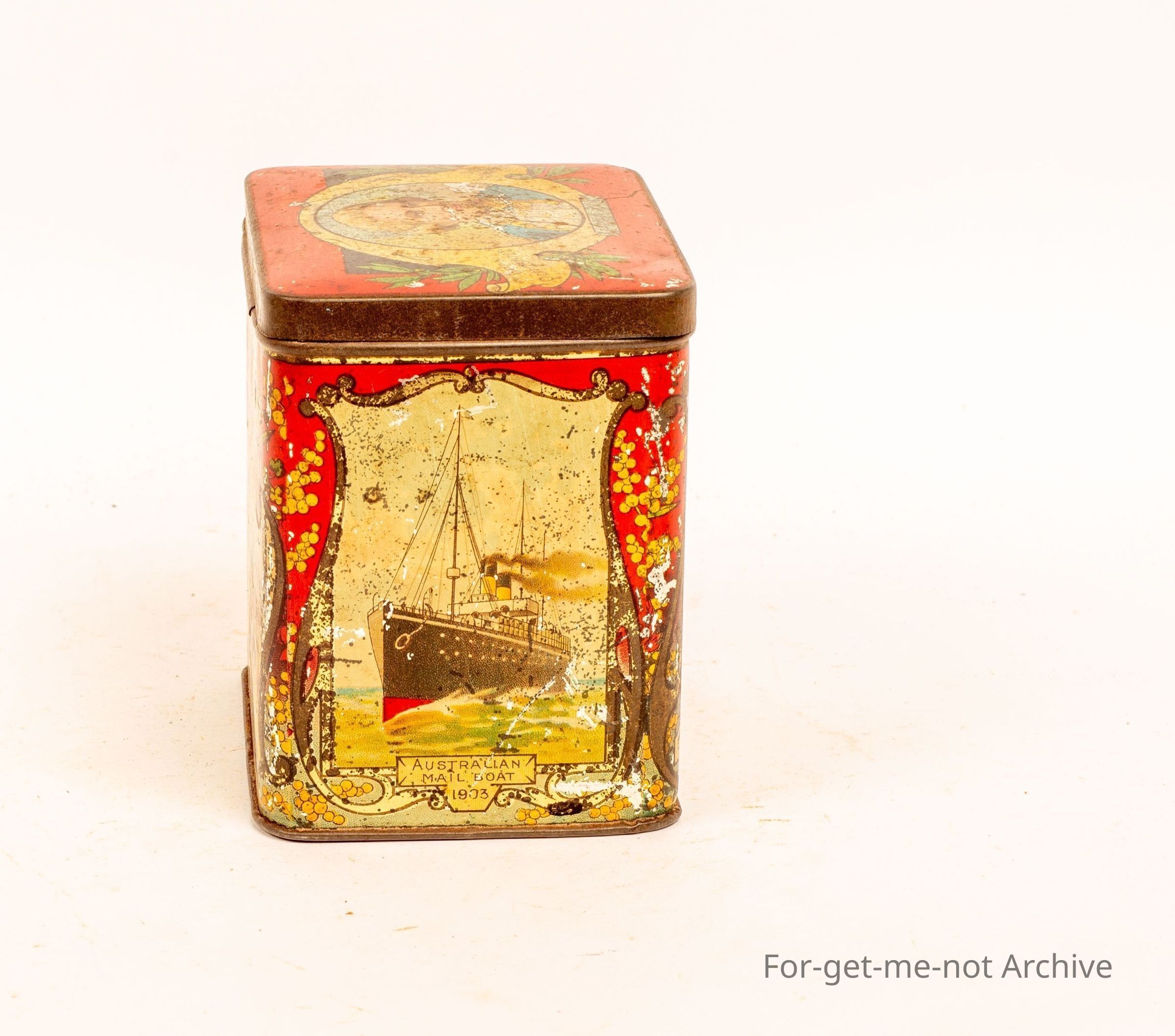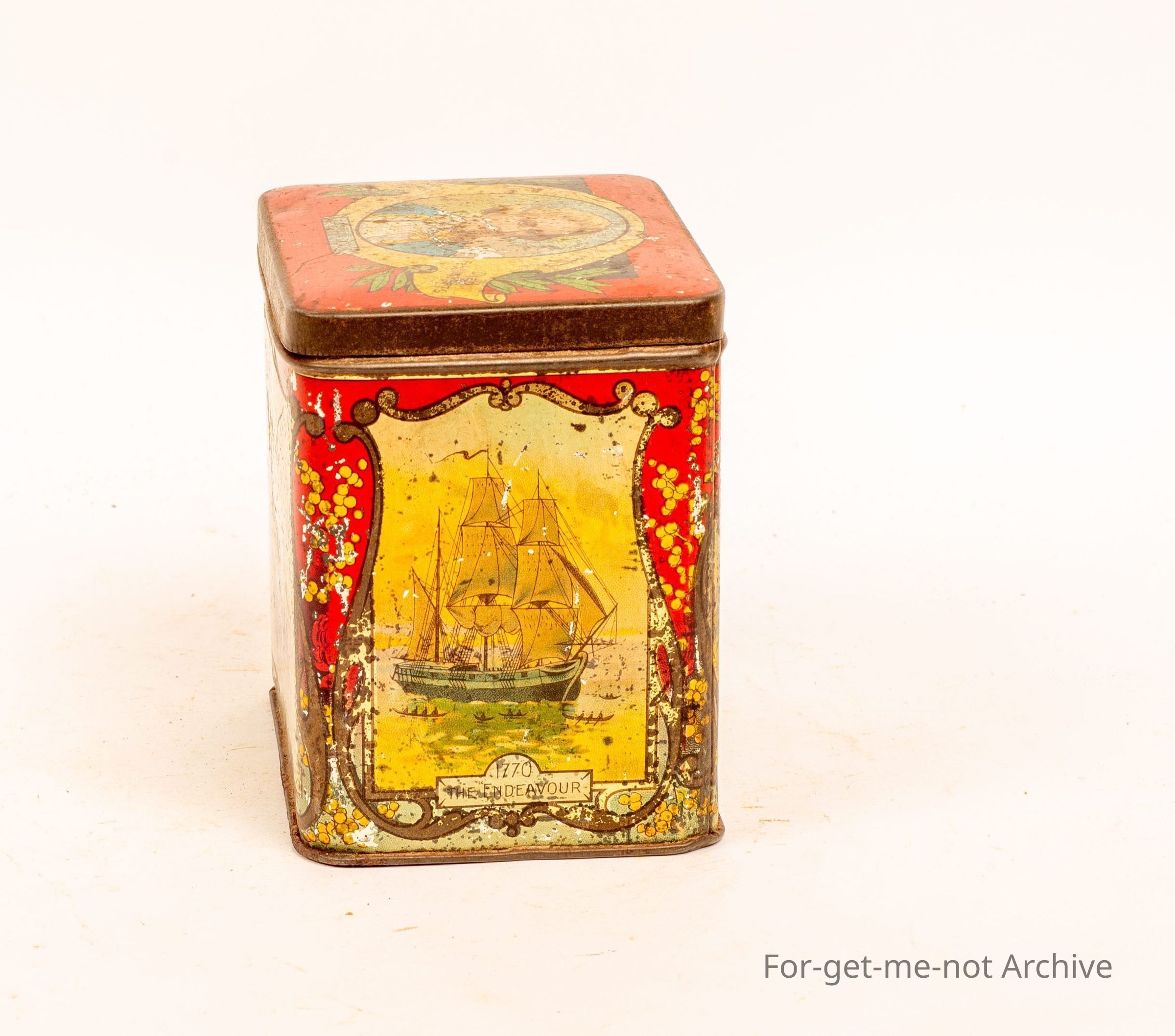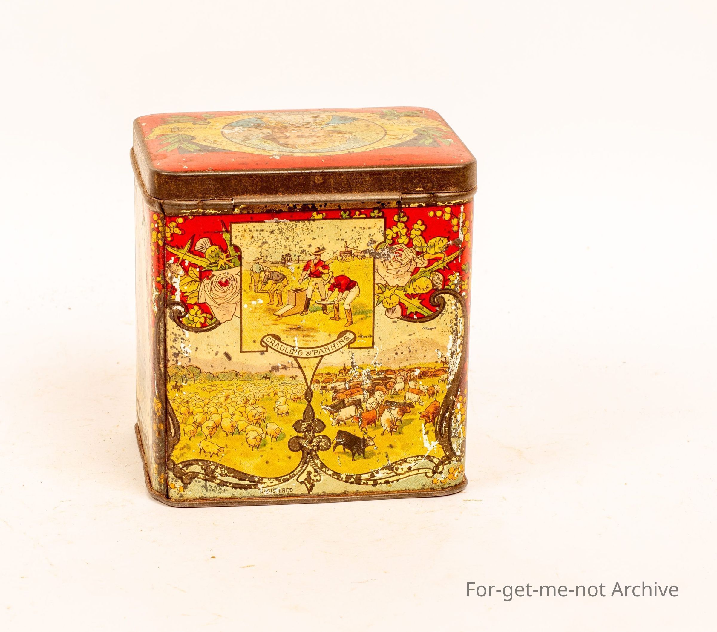 This tin has no branding however the scenes on sides are all Australian scenes celebrating Captain Cooks landing in Australia and his birth and death