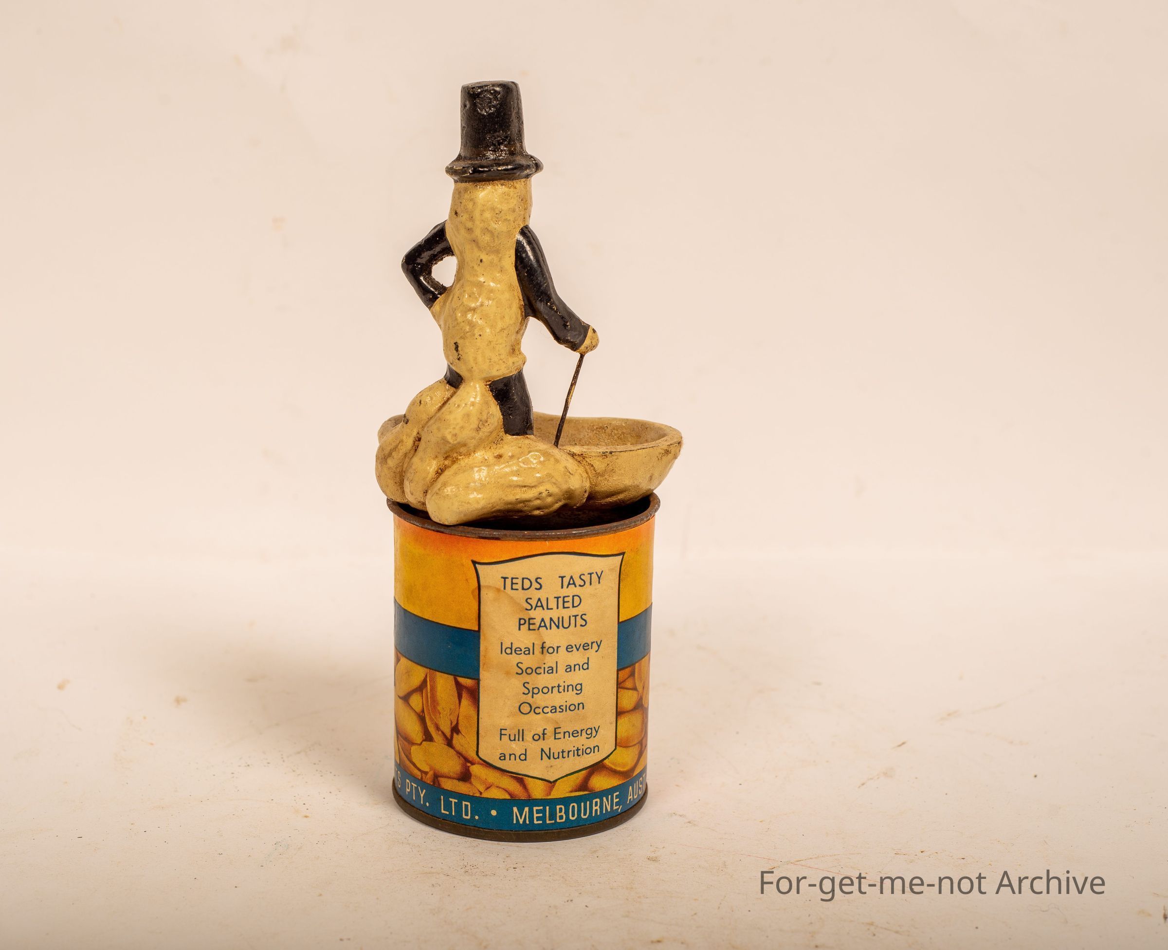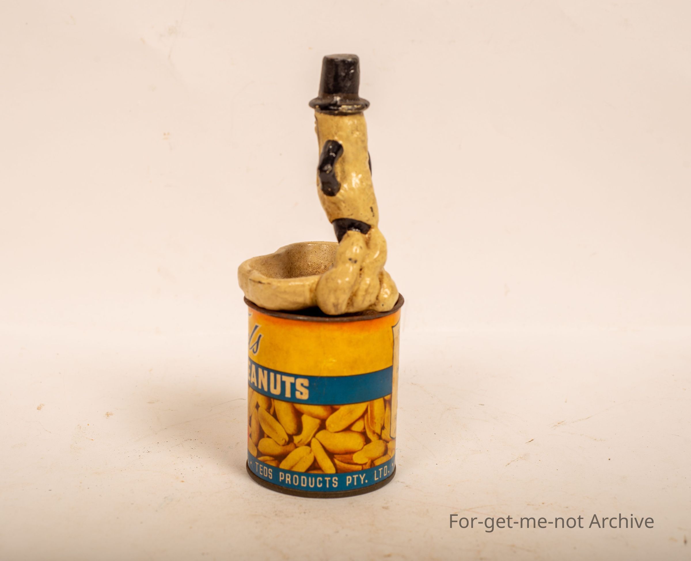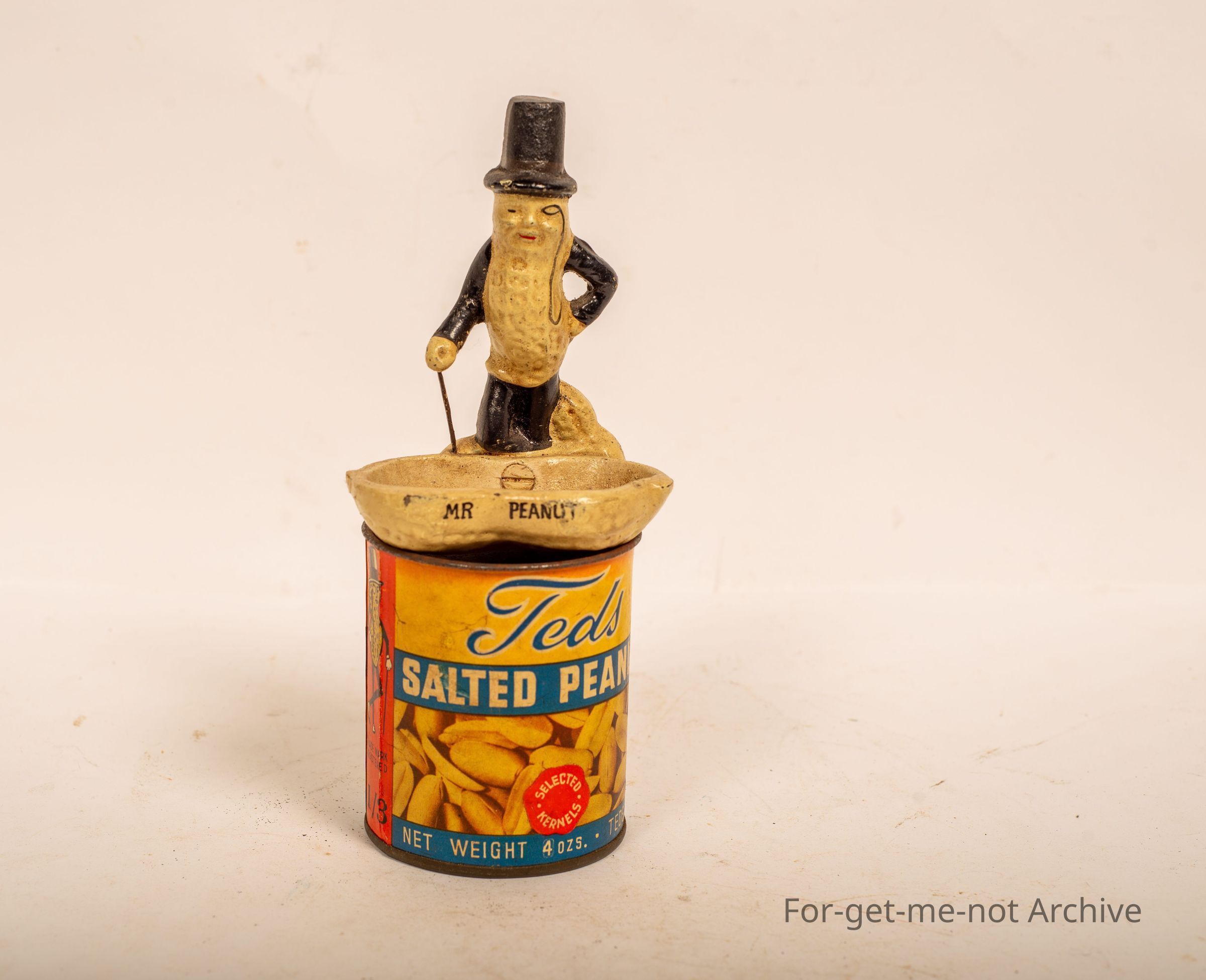 Cast Iron with a top hat and a monocle, weighing 4 ounces, with an image of the trademark 'Mr Peanut'. The two pieces go together, this is the original 'Mr Peanut'.Collection