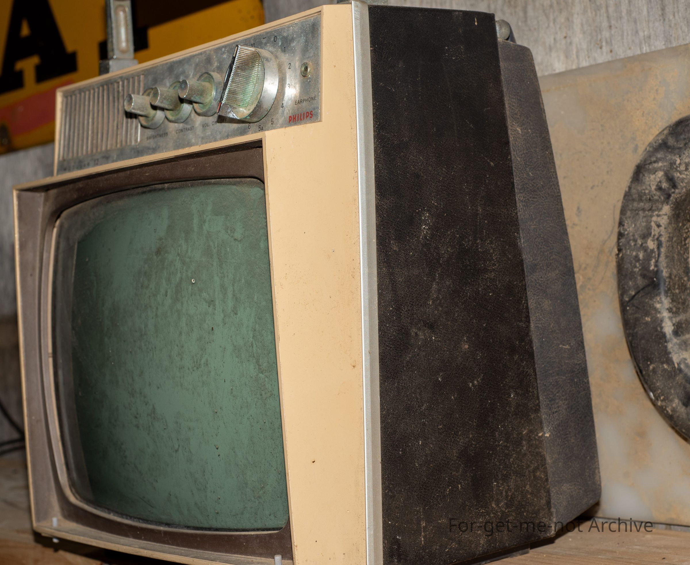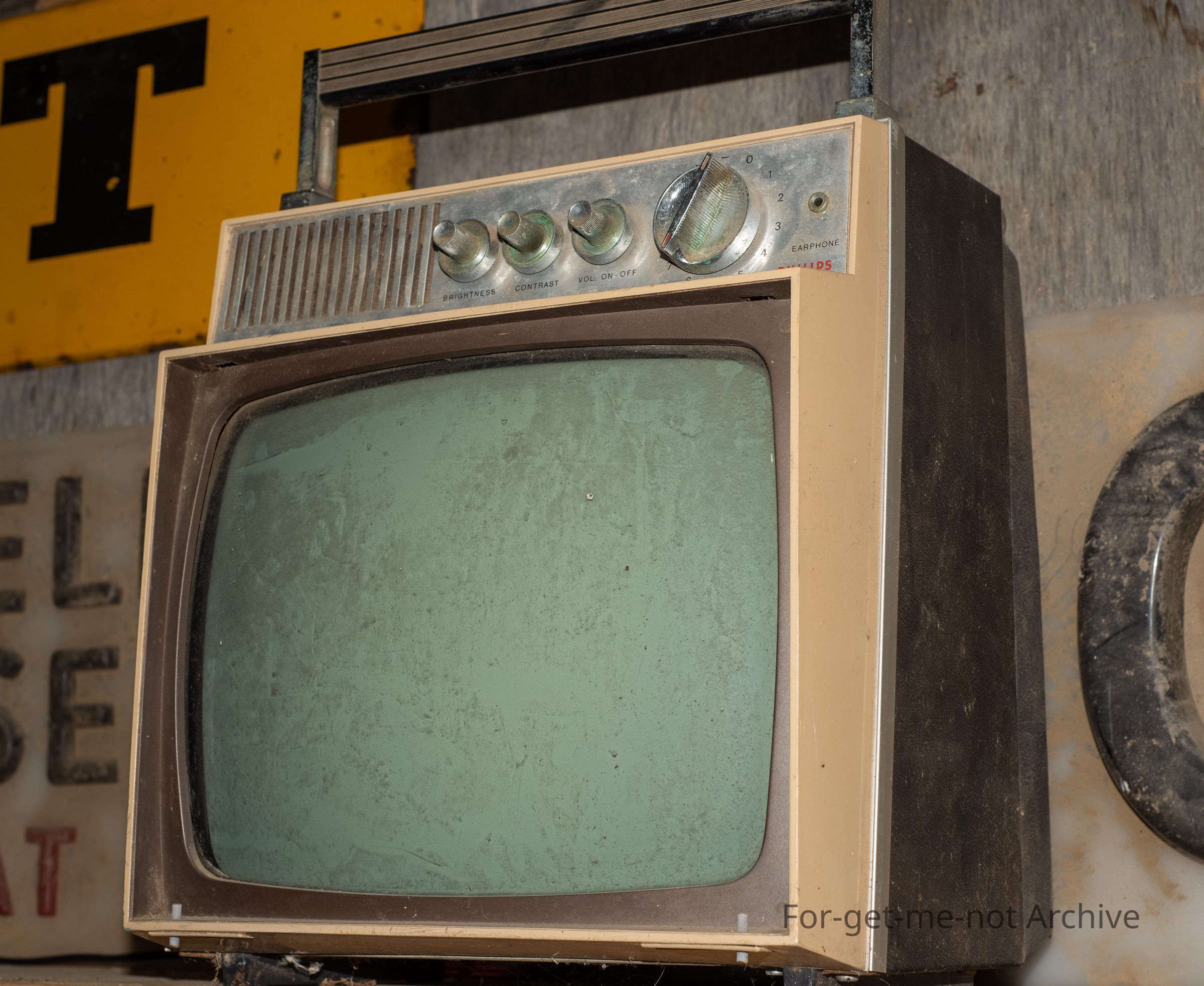 This is a very small, early portable television. About a 12 inch screen, perhaps. Very heavy, probably from, say, the mid 19 seventies.