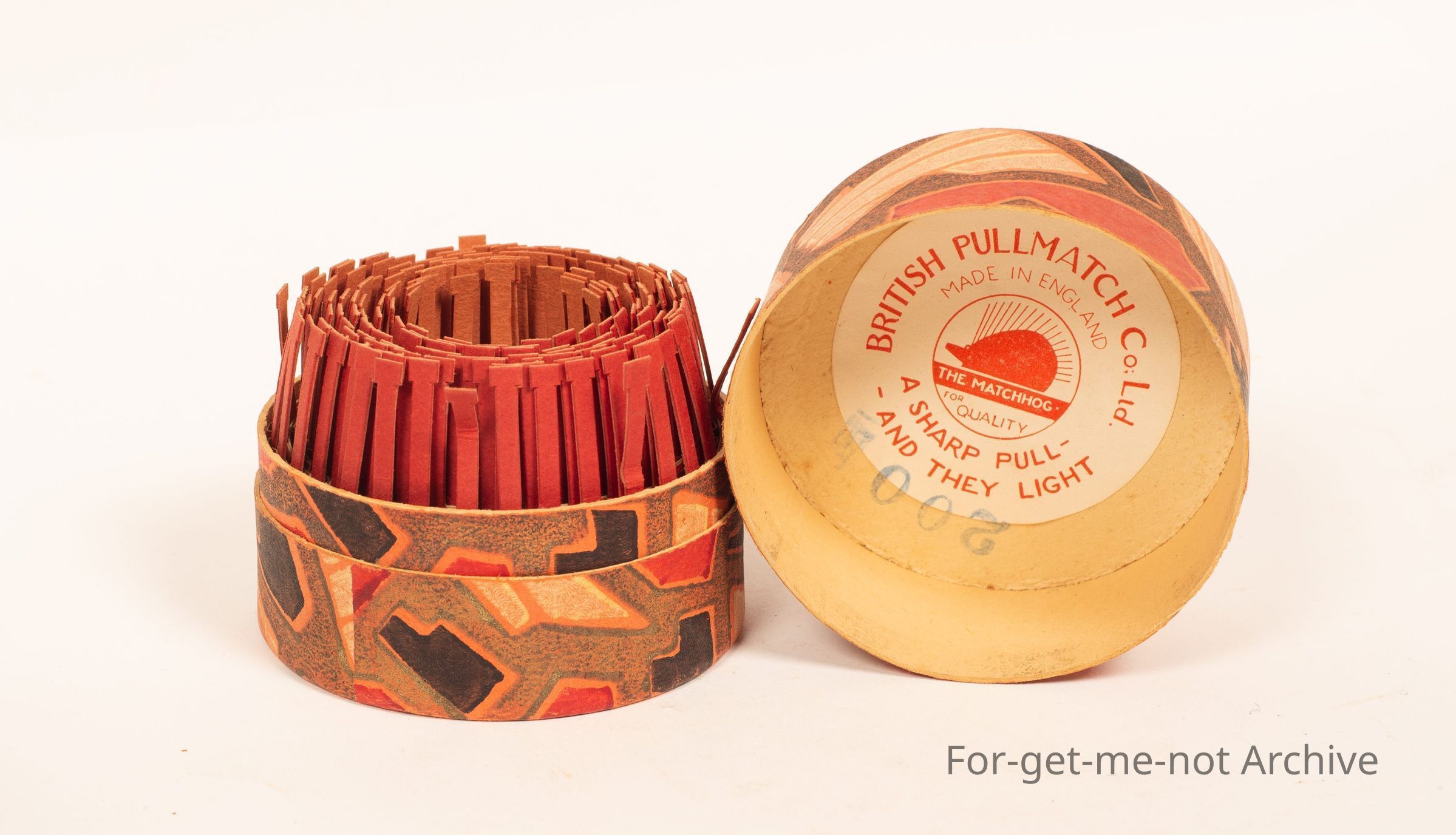 Is a cardboard container of "British Pull Match Company. A sharp pull and they light " The matches in a circular configuration and when you pull them up, they strike. Its called they match hog, Very clever. Very rare.Collection