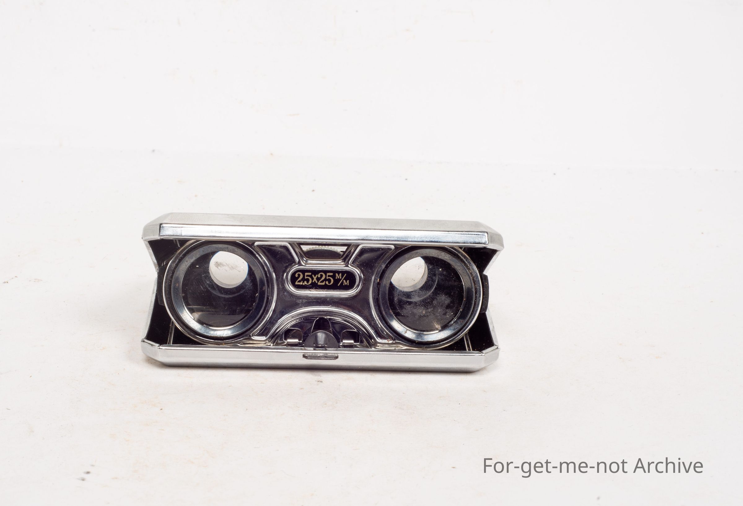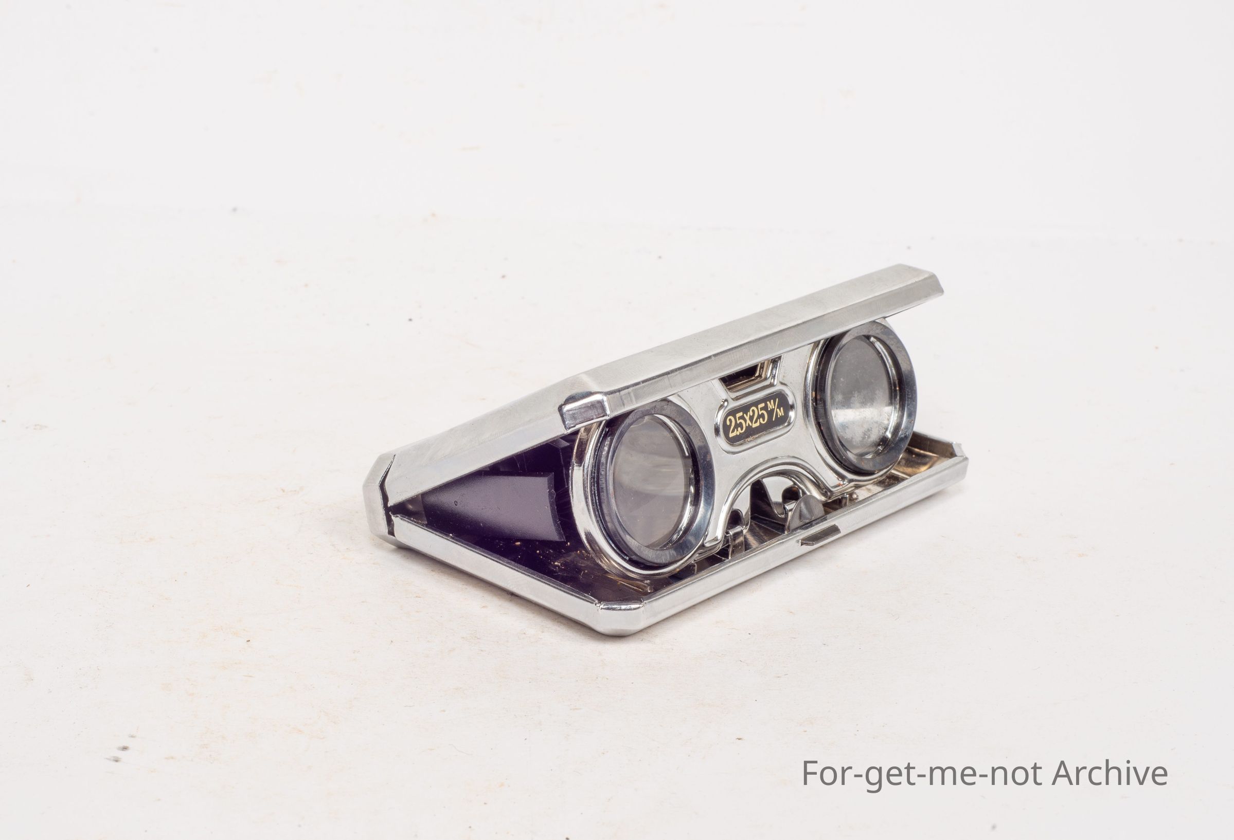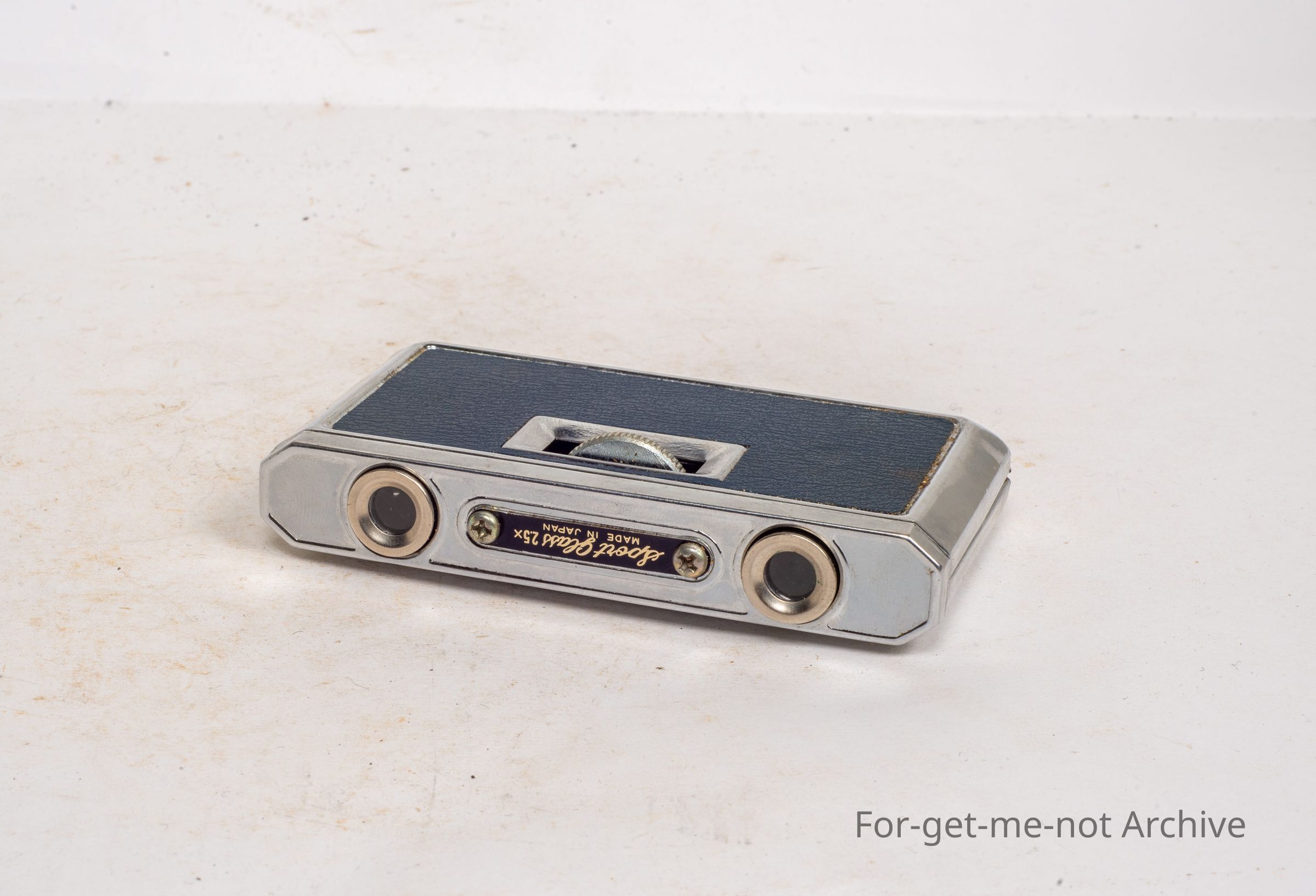 Is a small viewer, called Sport Glass, made in Japan. This sits up your view through the eyepieces, which illuminate the thing, and you can adjust it for focus. Beautifully made. Quite a strange little instrument.Collection