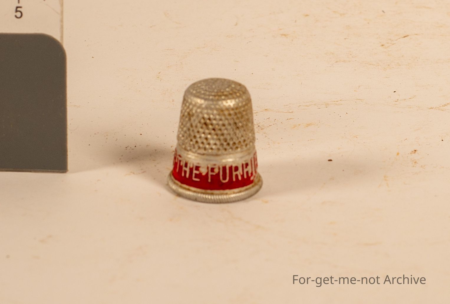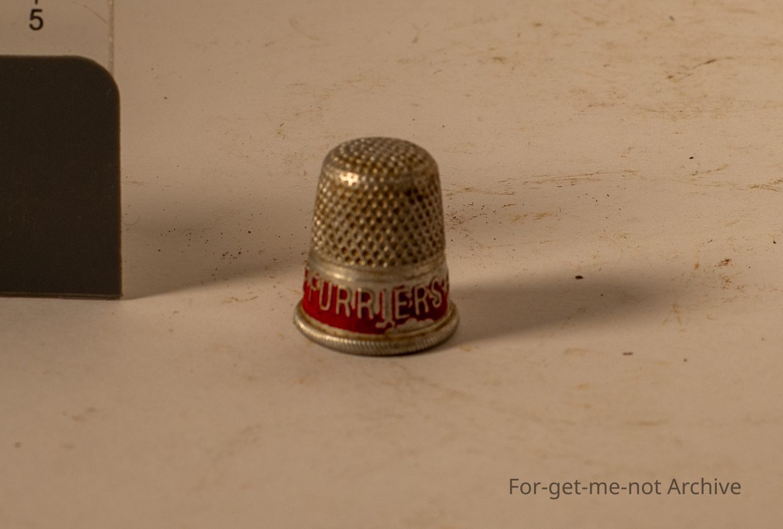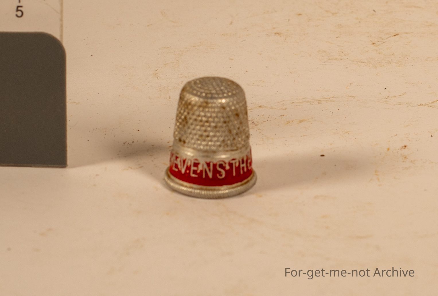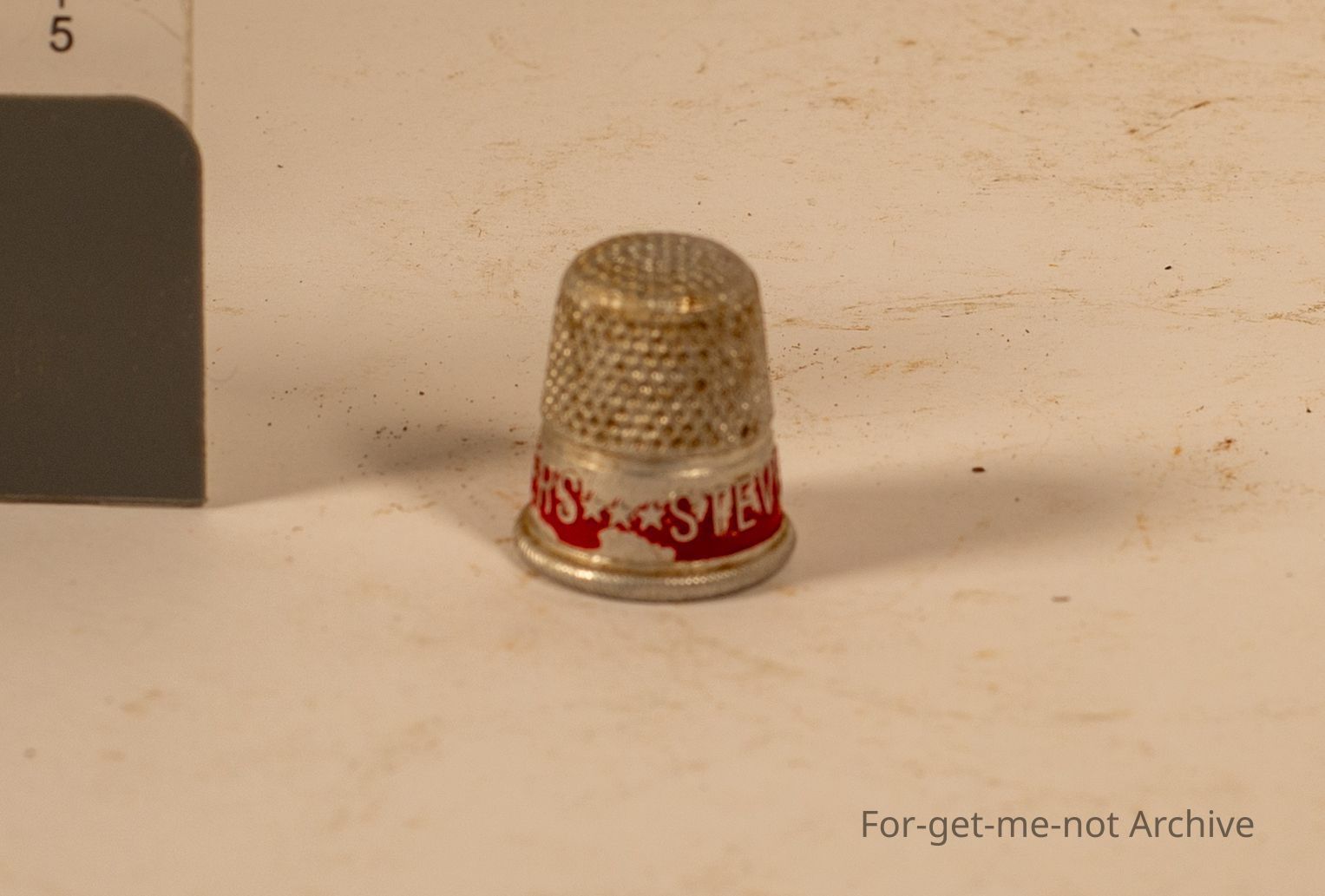 Small aluminium advertising thimble for Stevens, the Farriers, who were in Sturt Street, Ballarat. Quite a rare piece.
