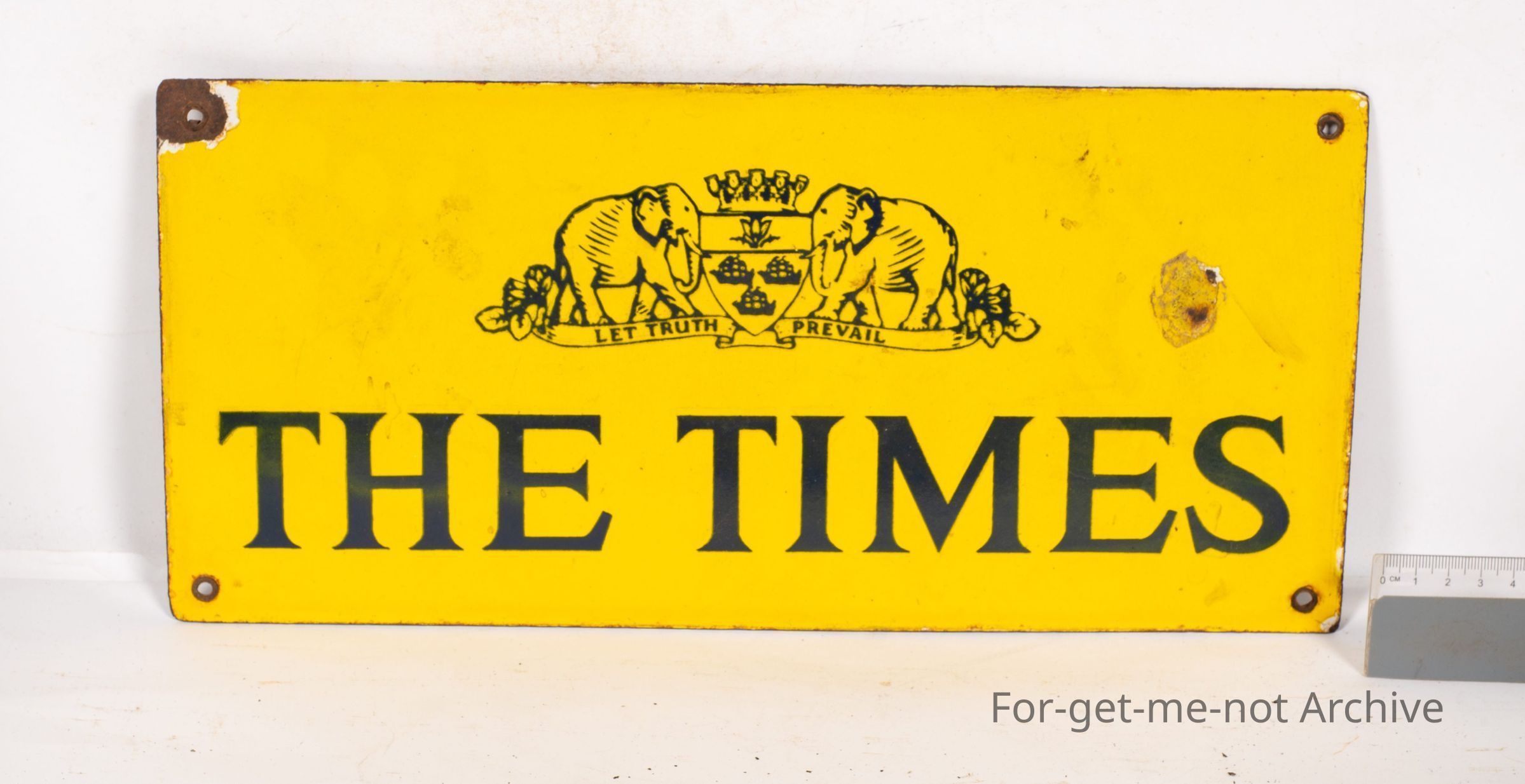 Sangeet Collection. This is a small sign with a coat of arms, Let Truth Prevail, from The Times Newspaper. This is quite a nice early genuine old sign.