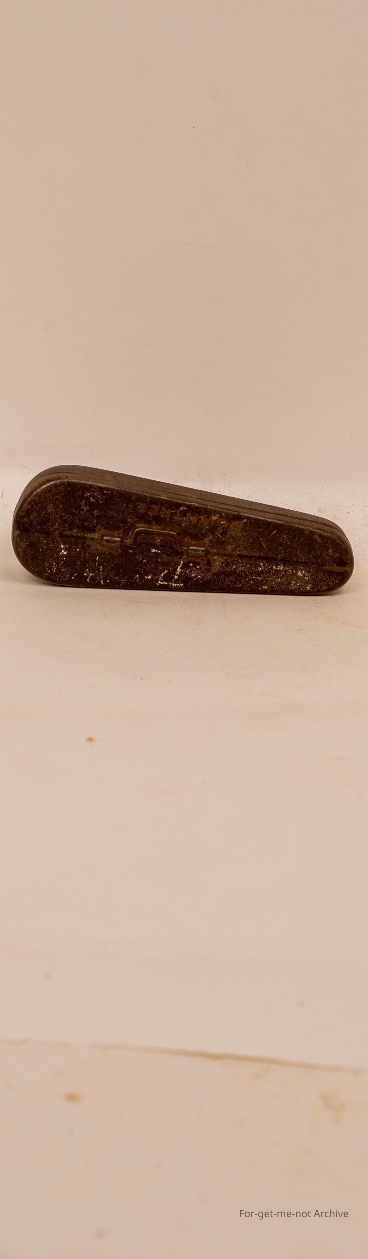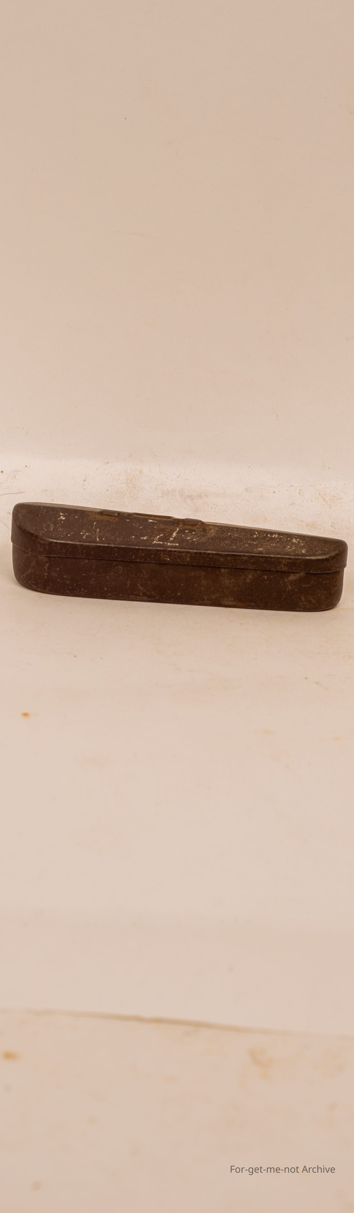 Small round trees chocolate tin in the shape of a violin box, quite rare, not in good condition 2"