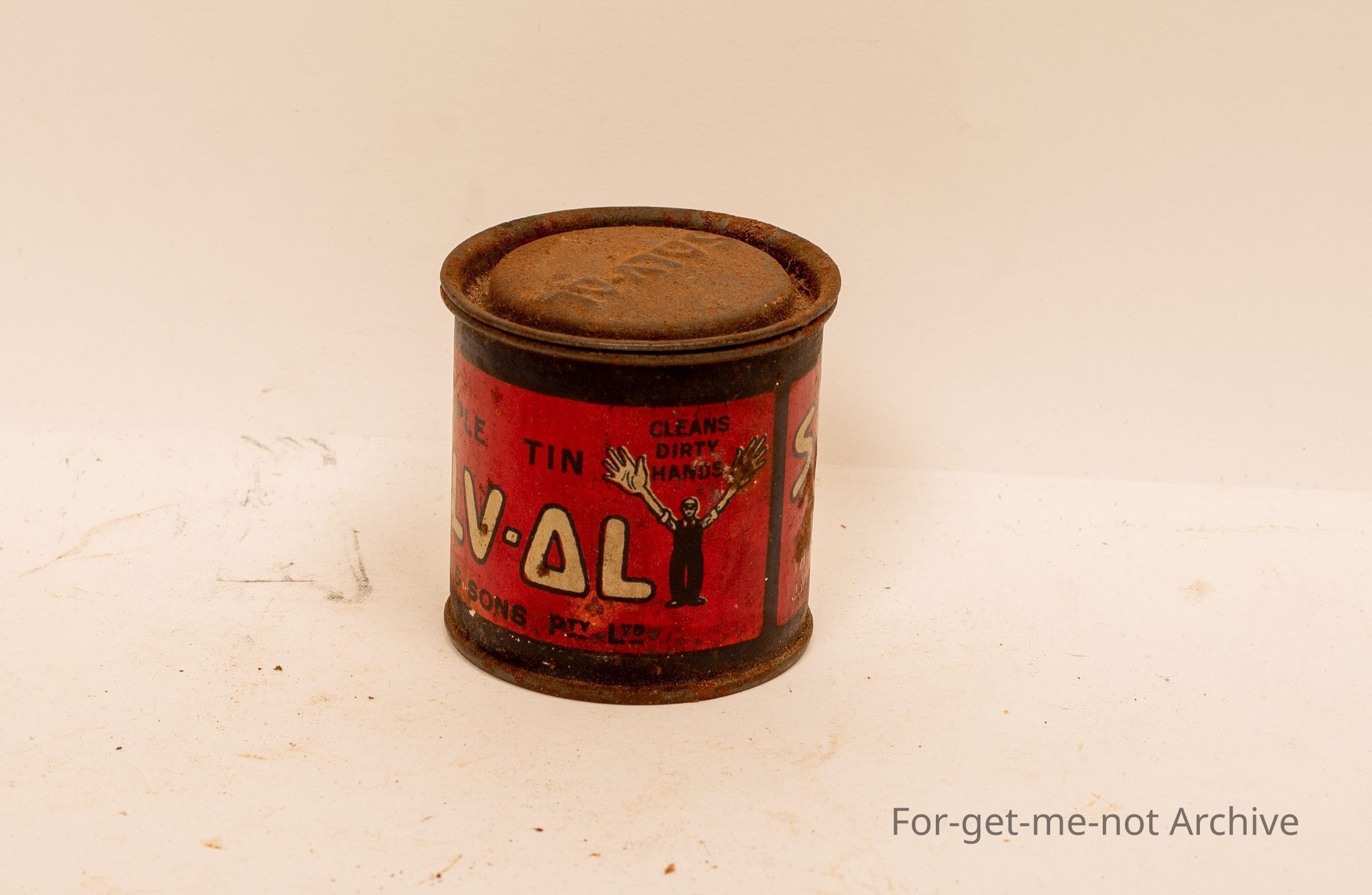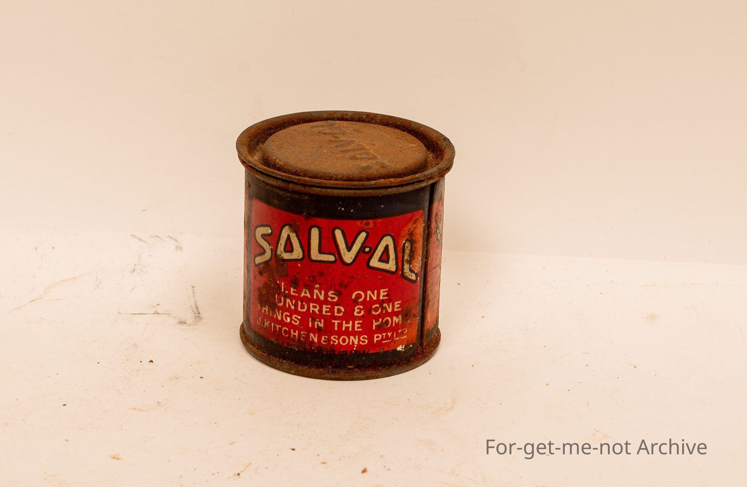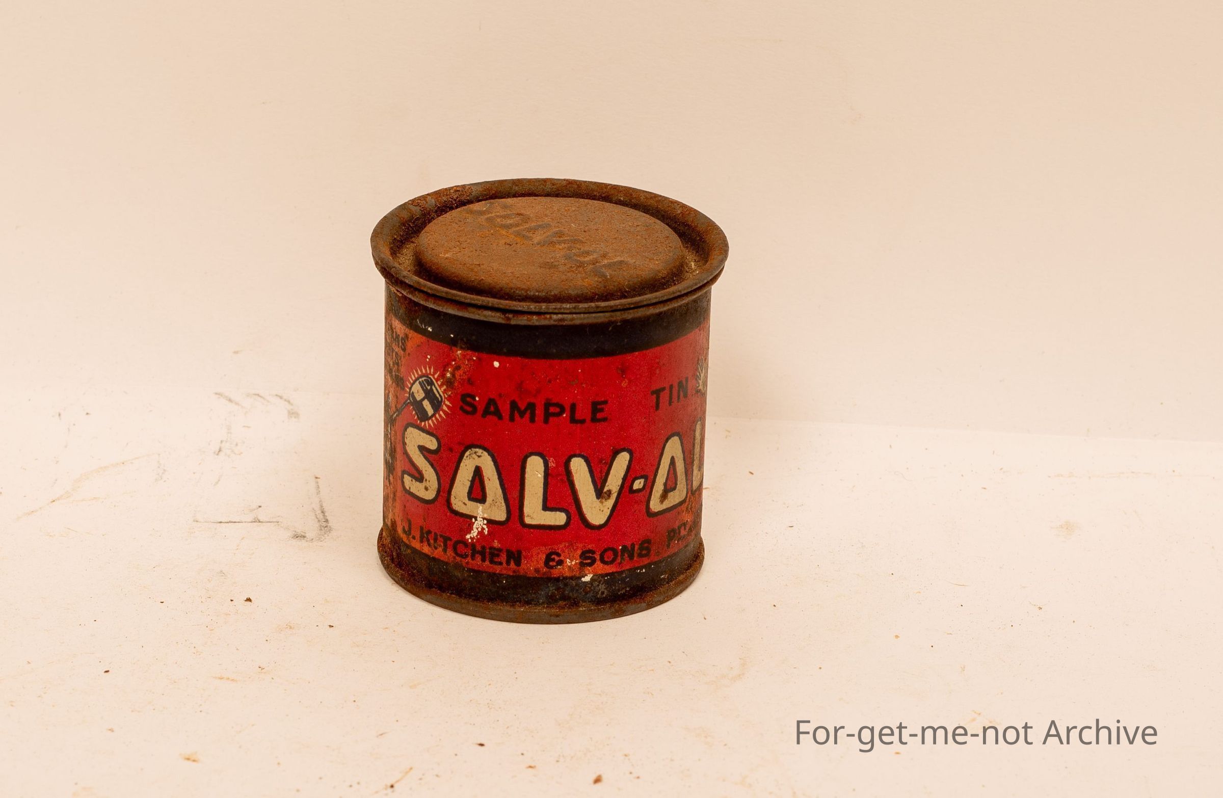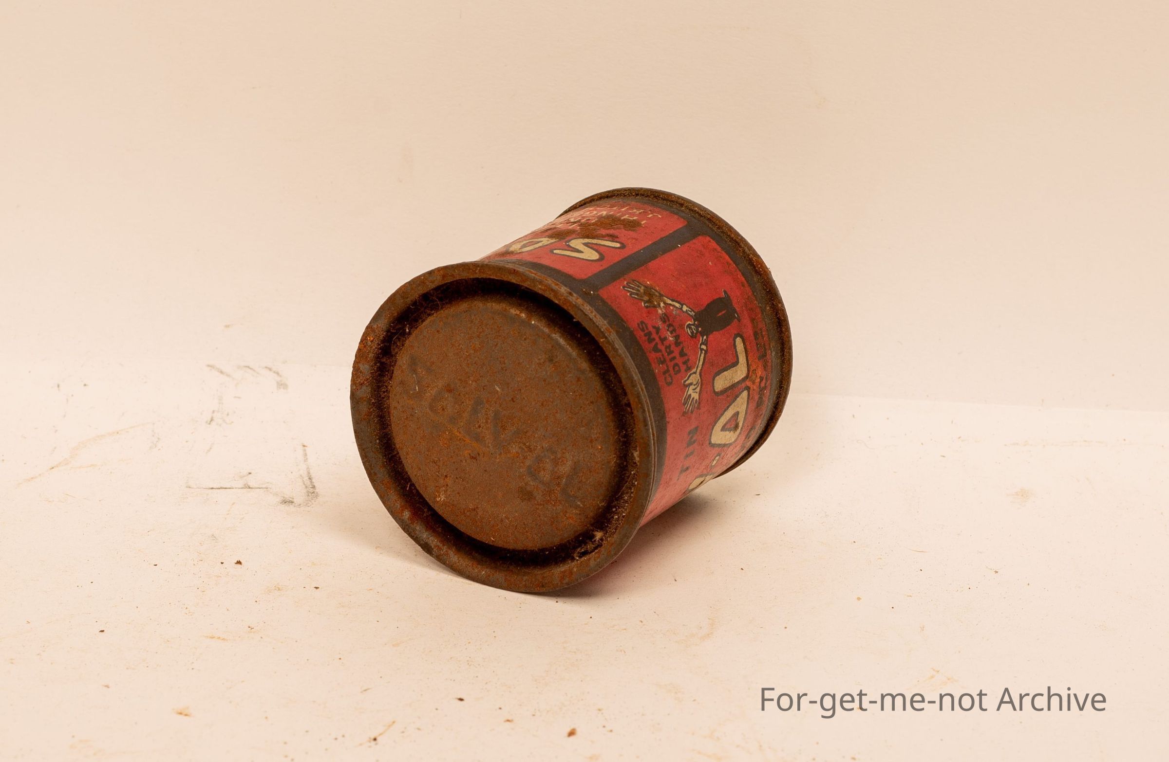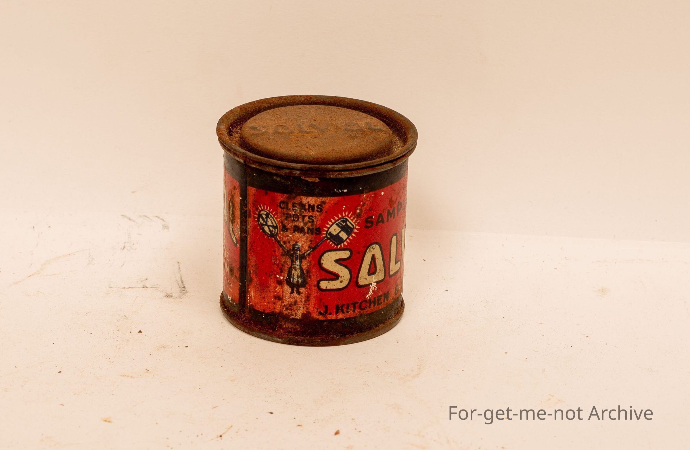 Small sample tin of Sovol Soap , things made by J Kitchen and sons . Cleans dirty hands