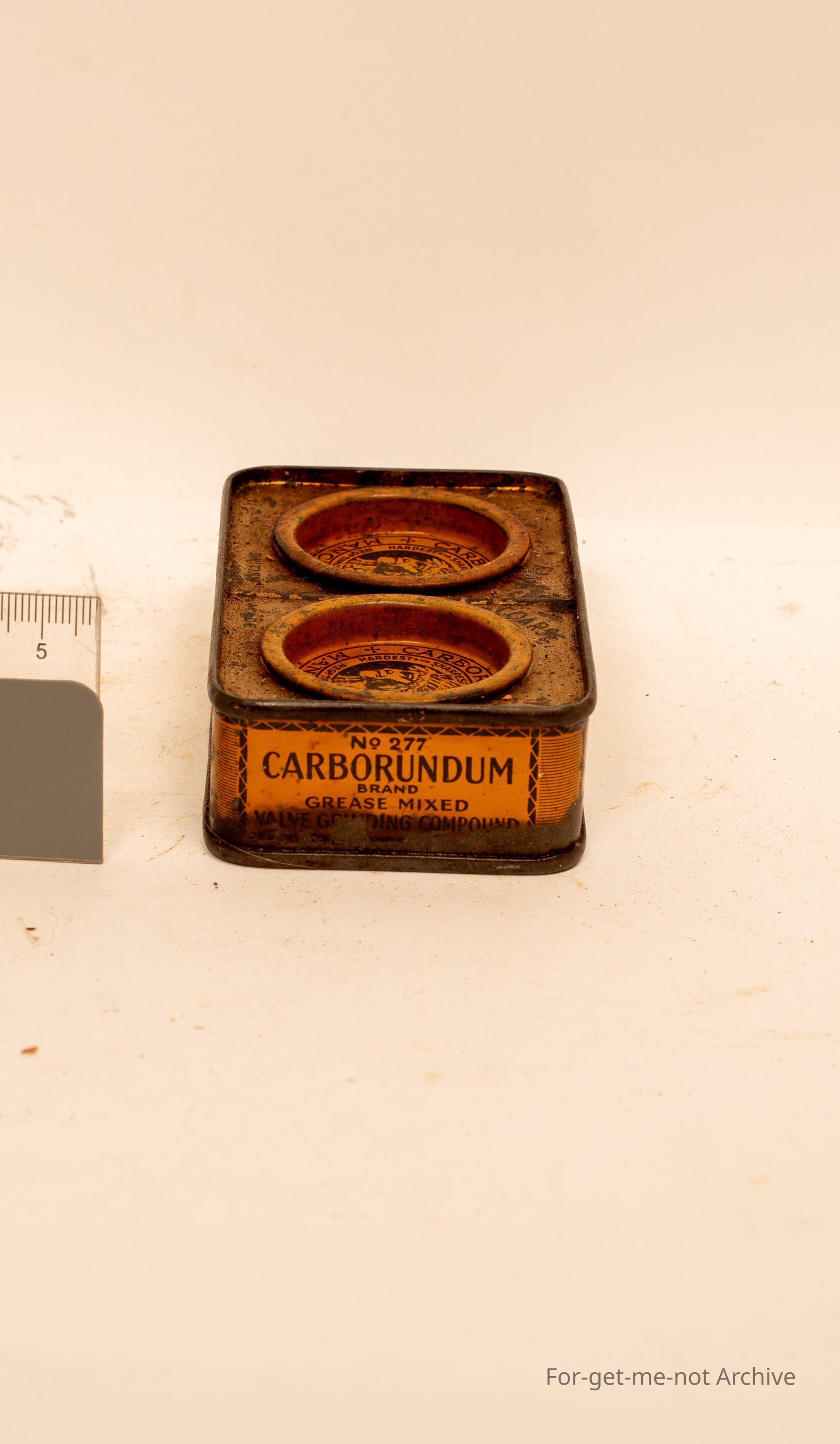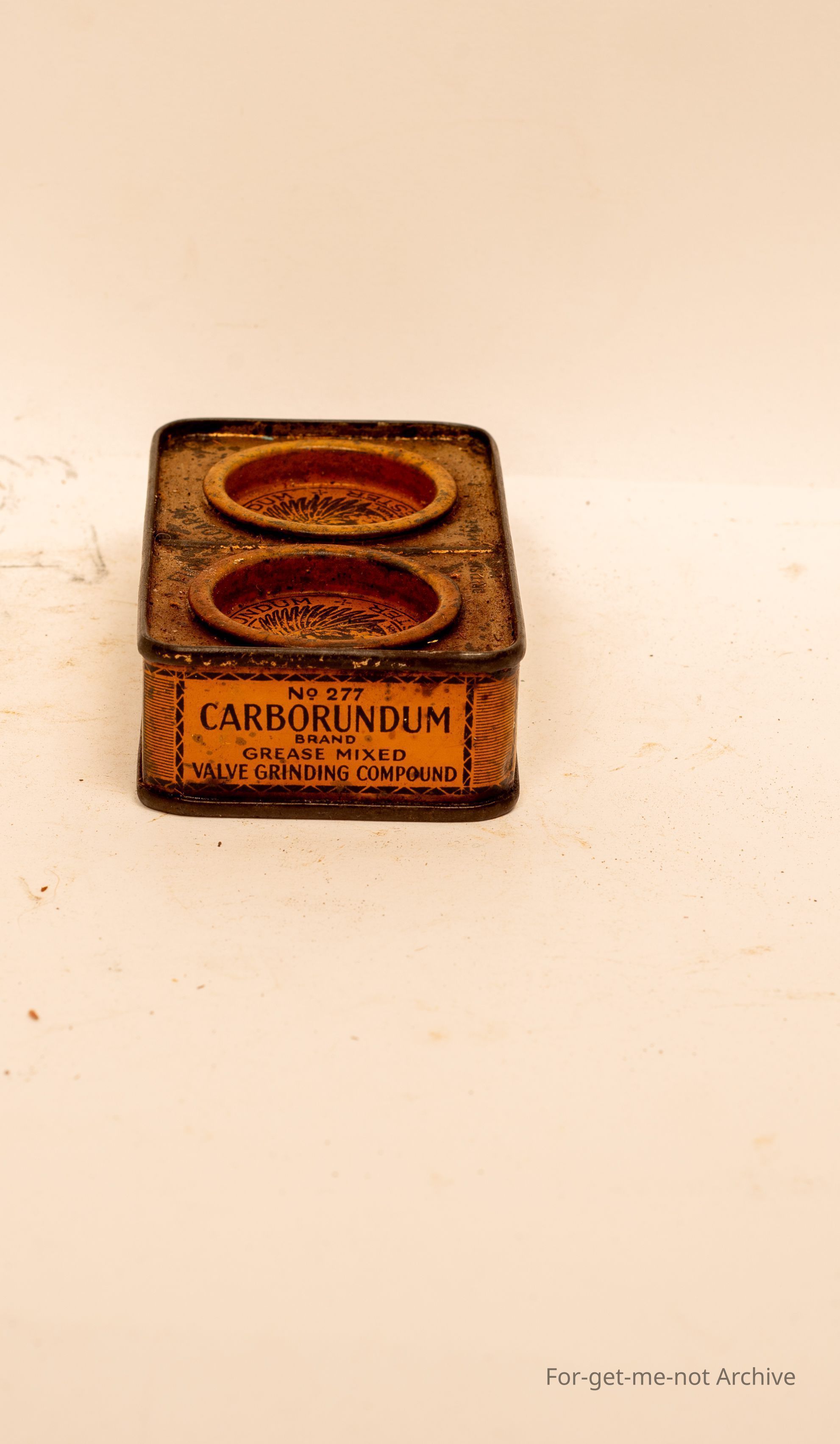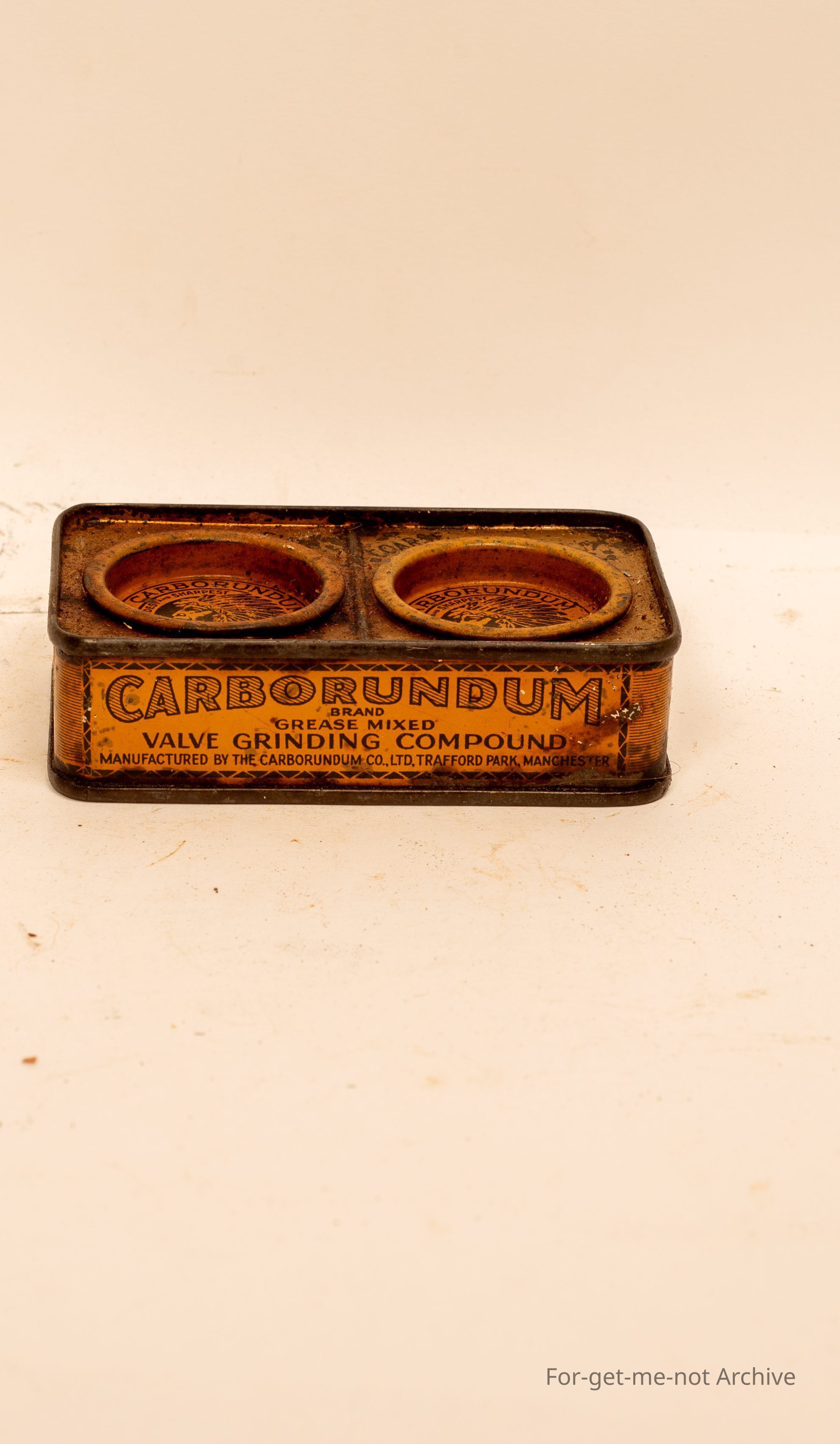 A tin of Carborundum Valve Grinding Compound with Indian Head, images. Carborundum Manchester Fine and Coarse. British made.