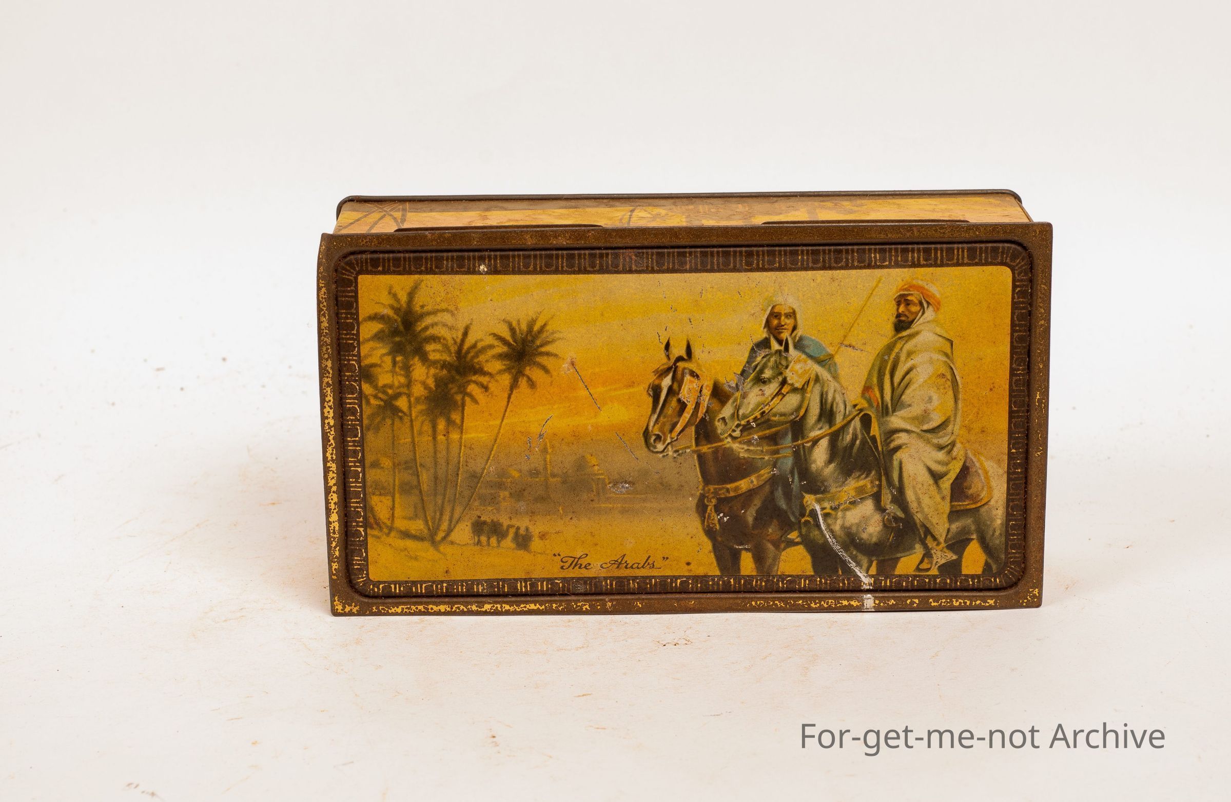Middle Eastern scene "The Arabs" from MacRobinson's chocolate confectionery tin. Reasonably good nick.