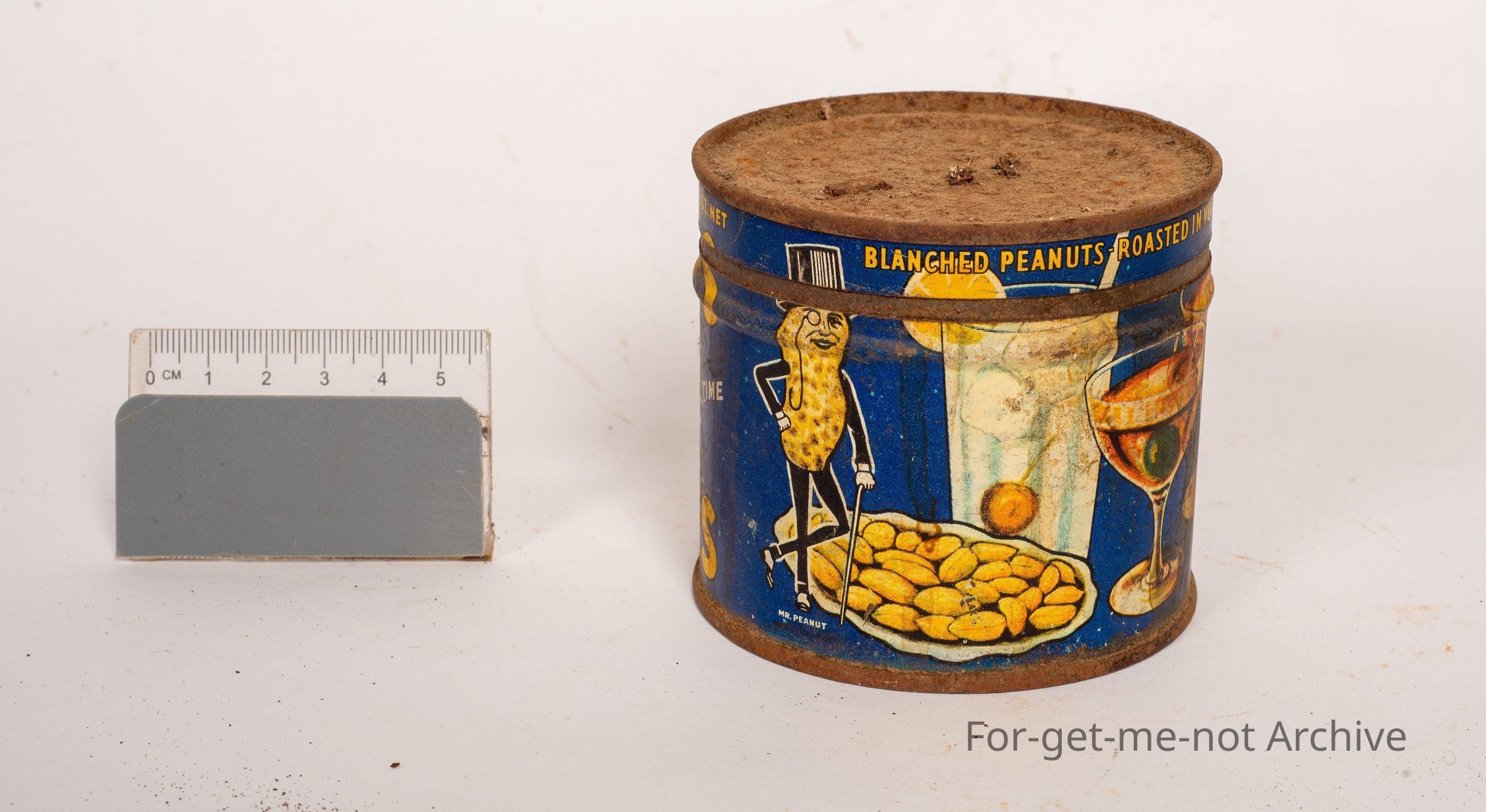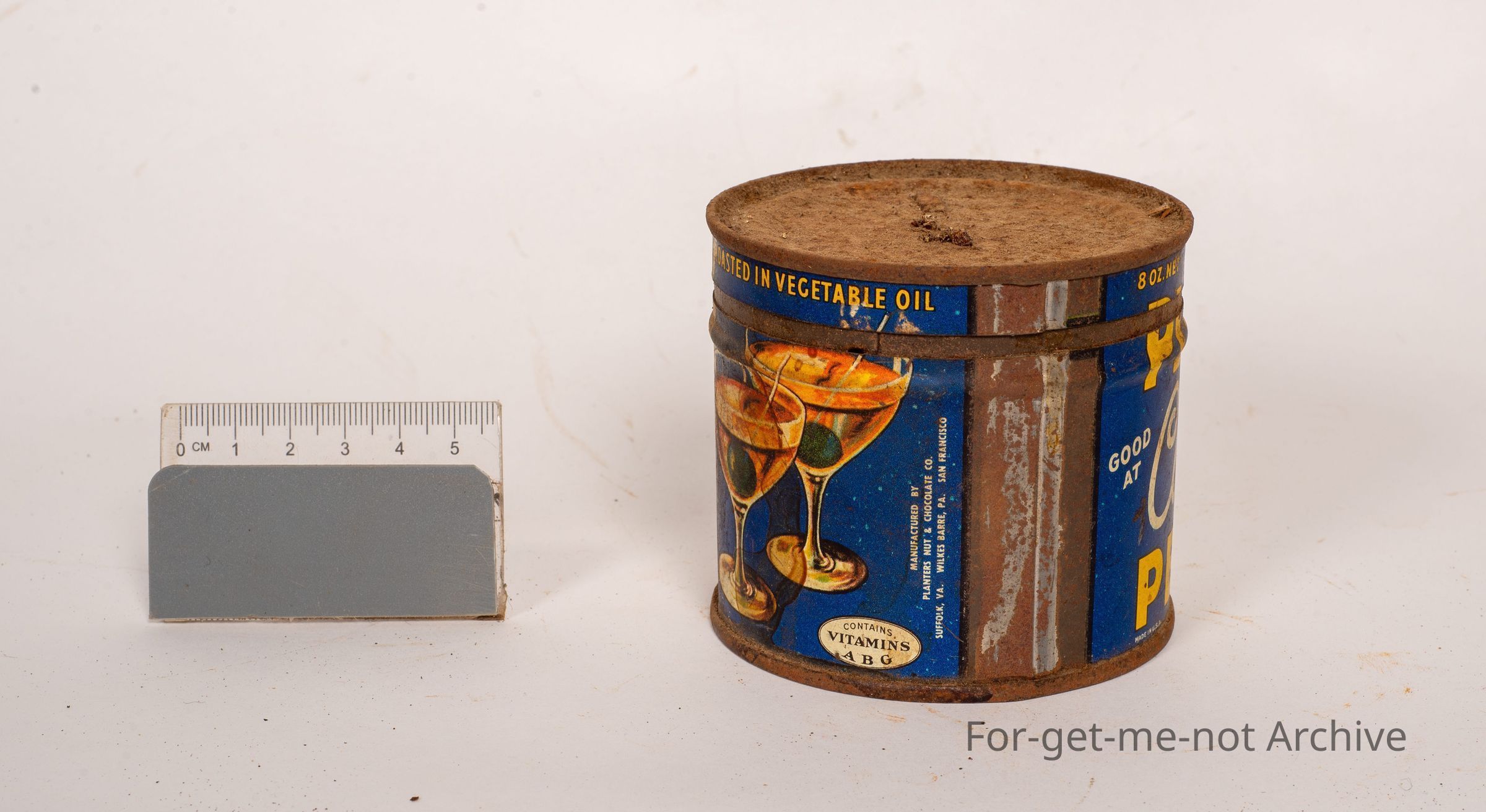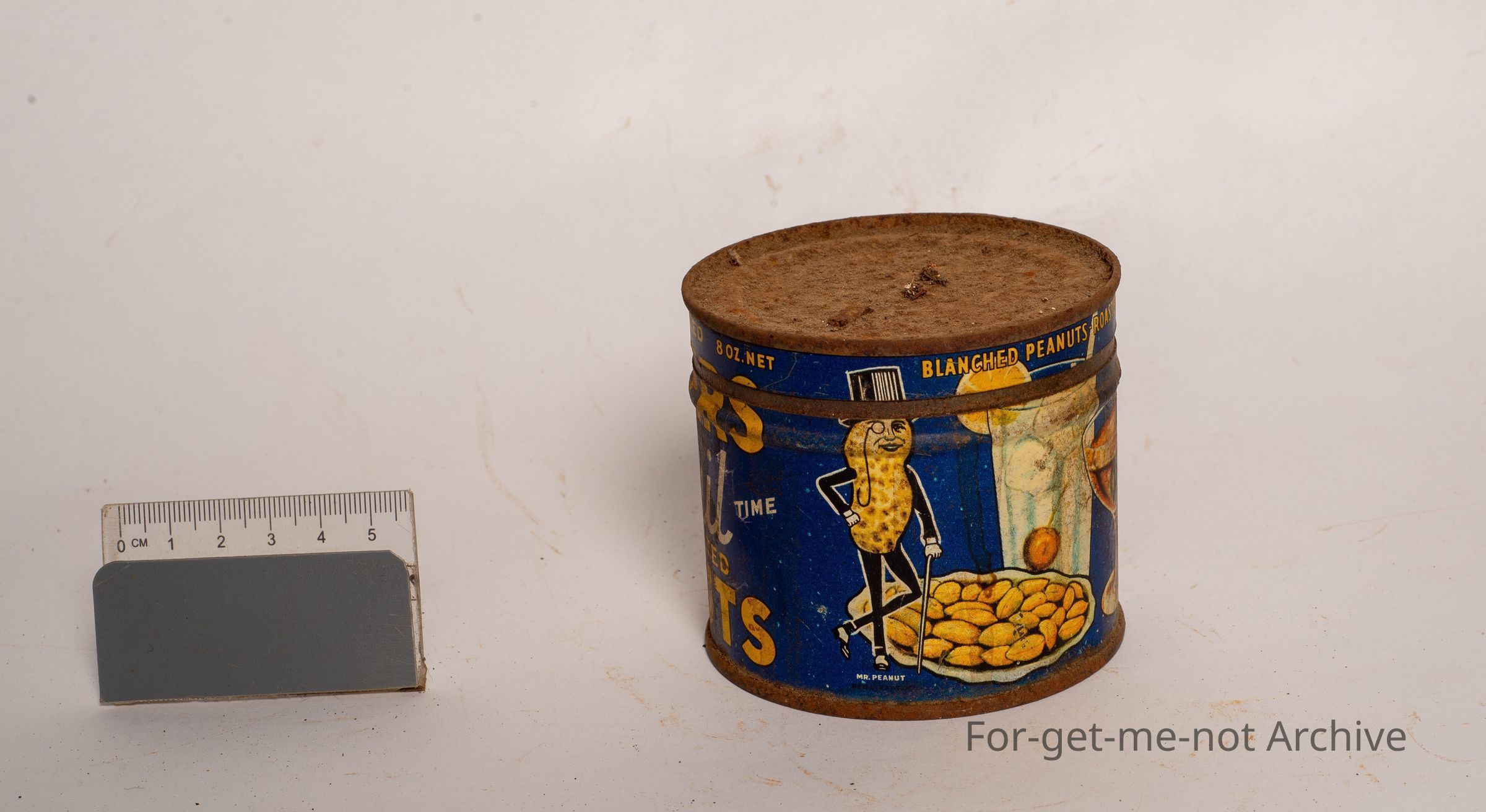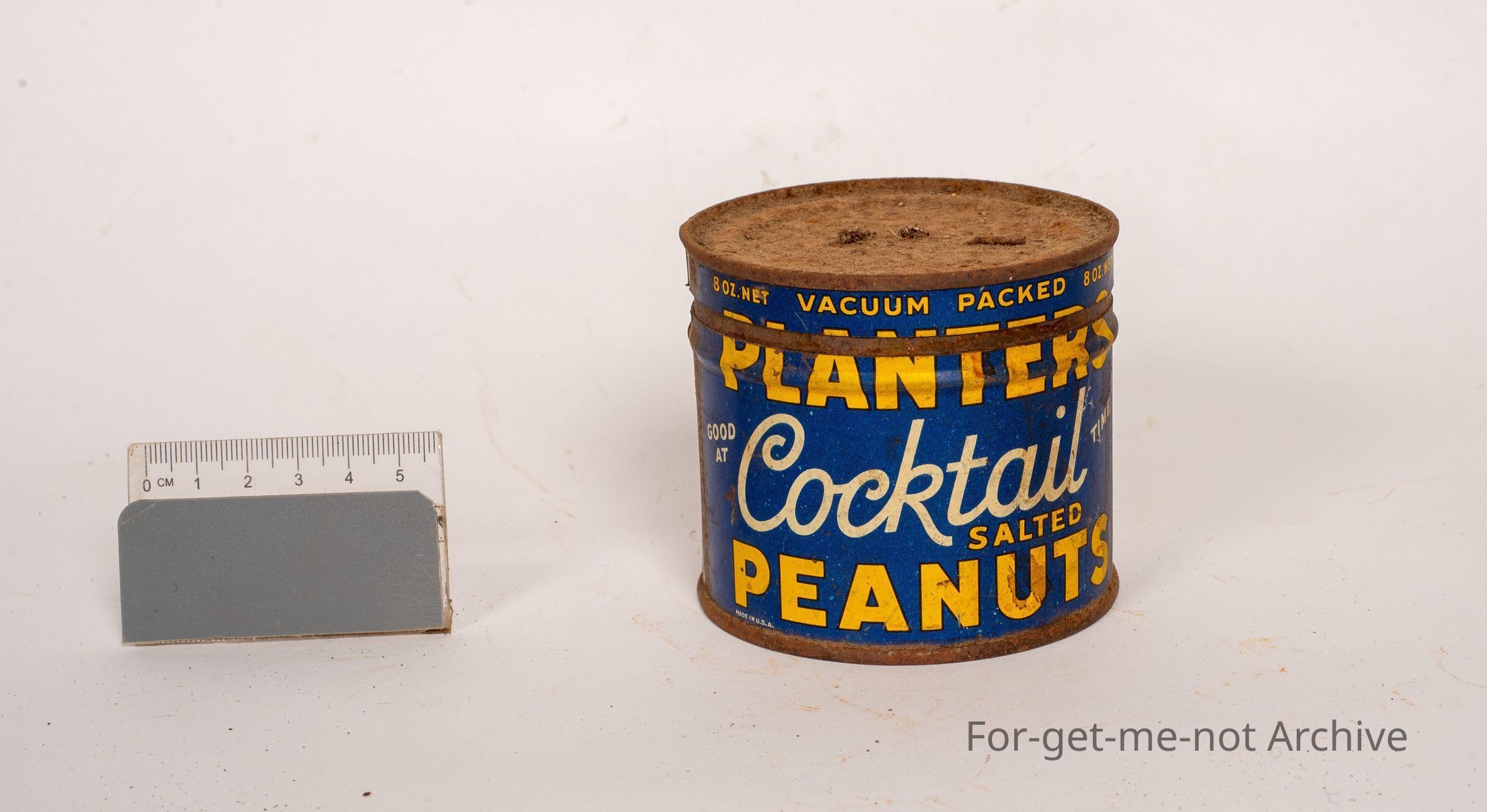 This is an 8 ounce vacuum packed tin of Planters cocktail salted peanuts. This has the image of Mr. Peanut, which was a cast iron sales representative. In pretty good condition.