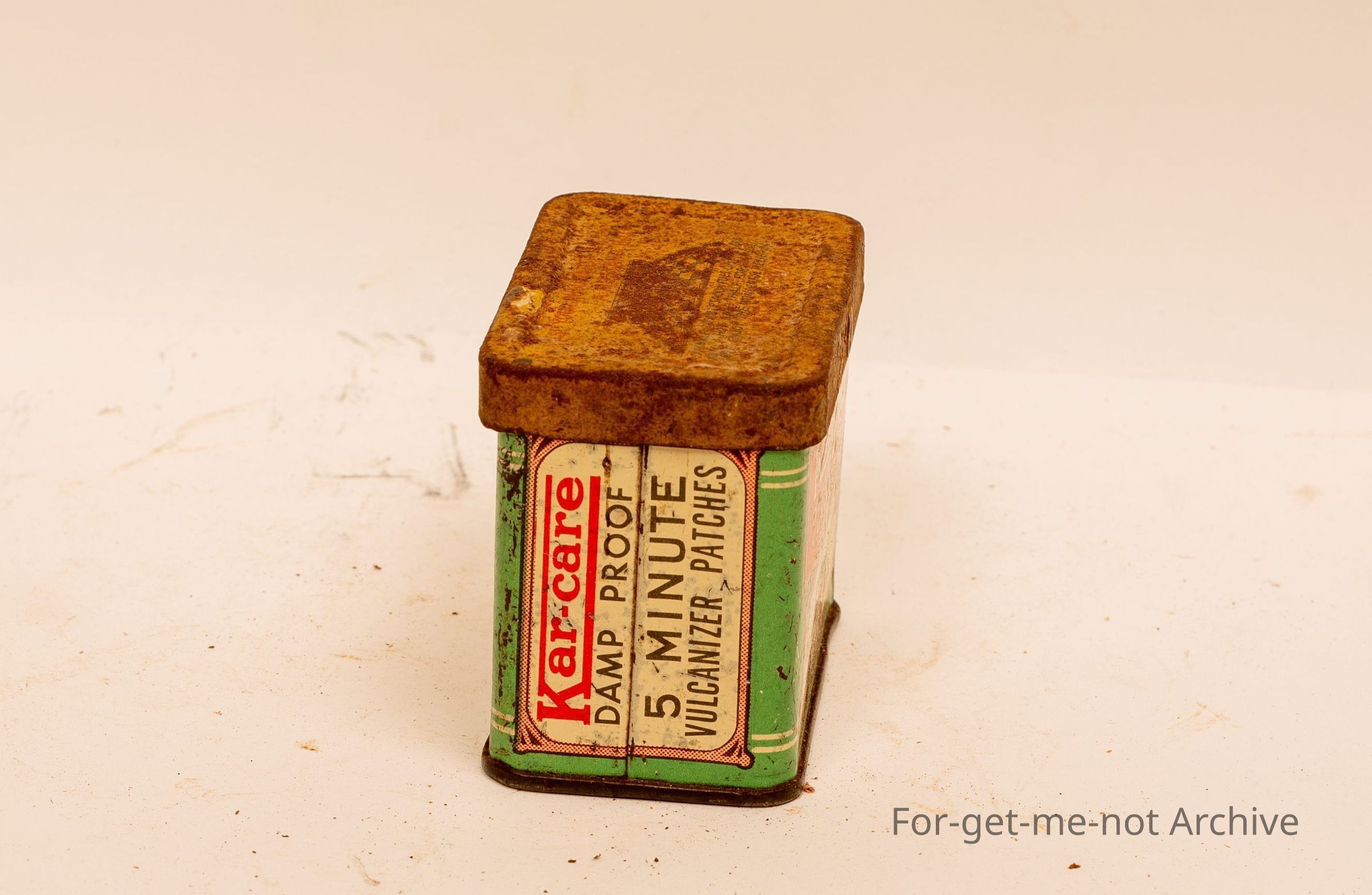 Small tin of Kar-Care Damp Proof Vulcanizer Patches, made in Australia