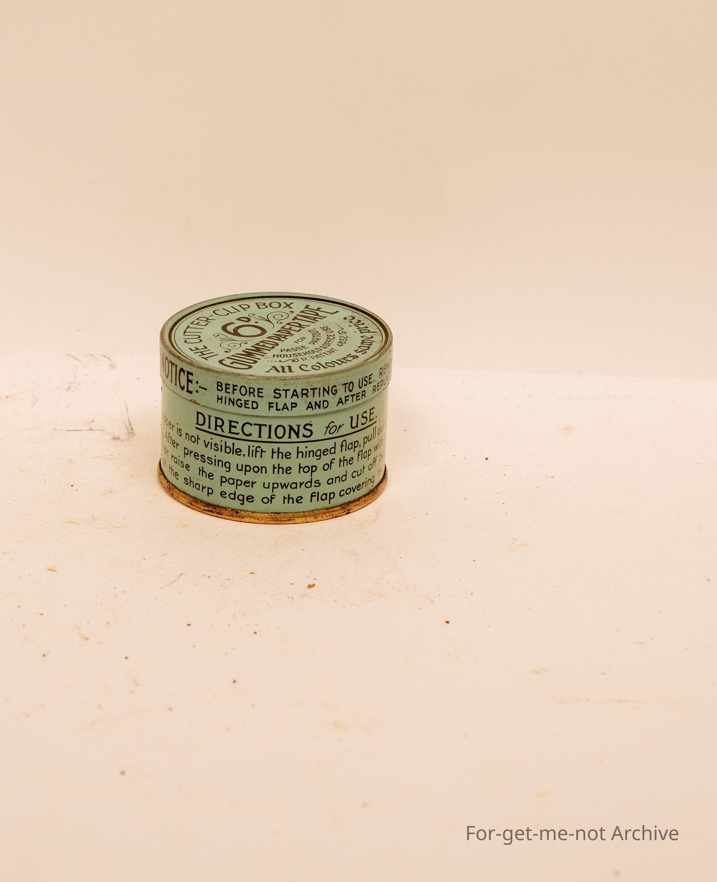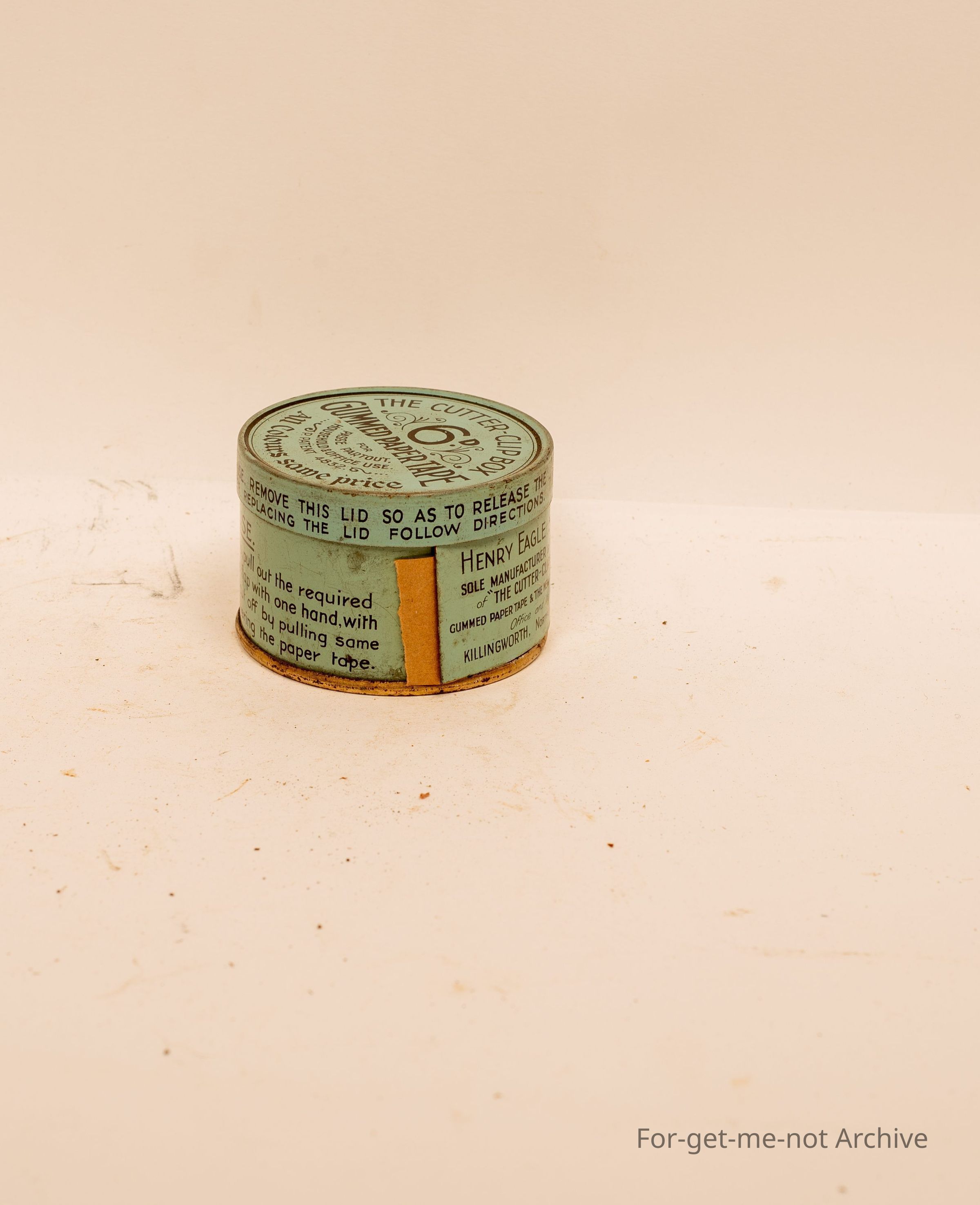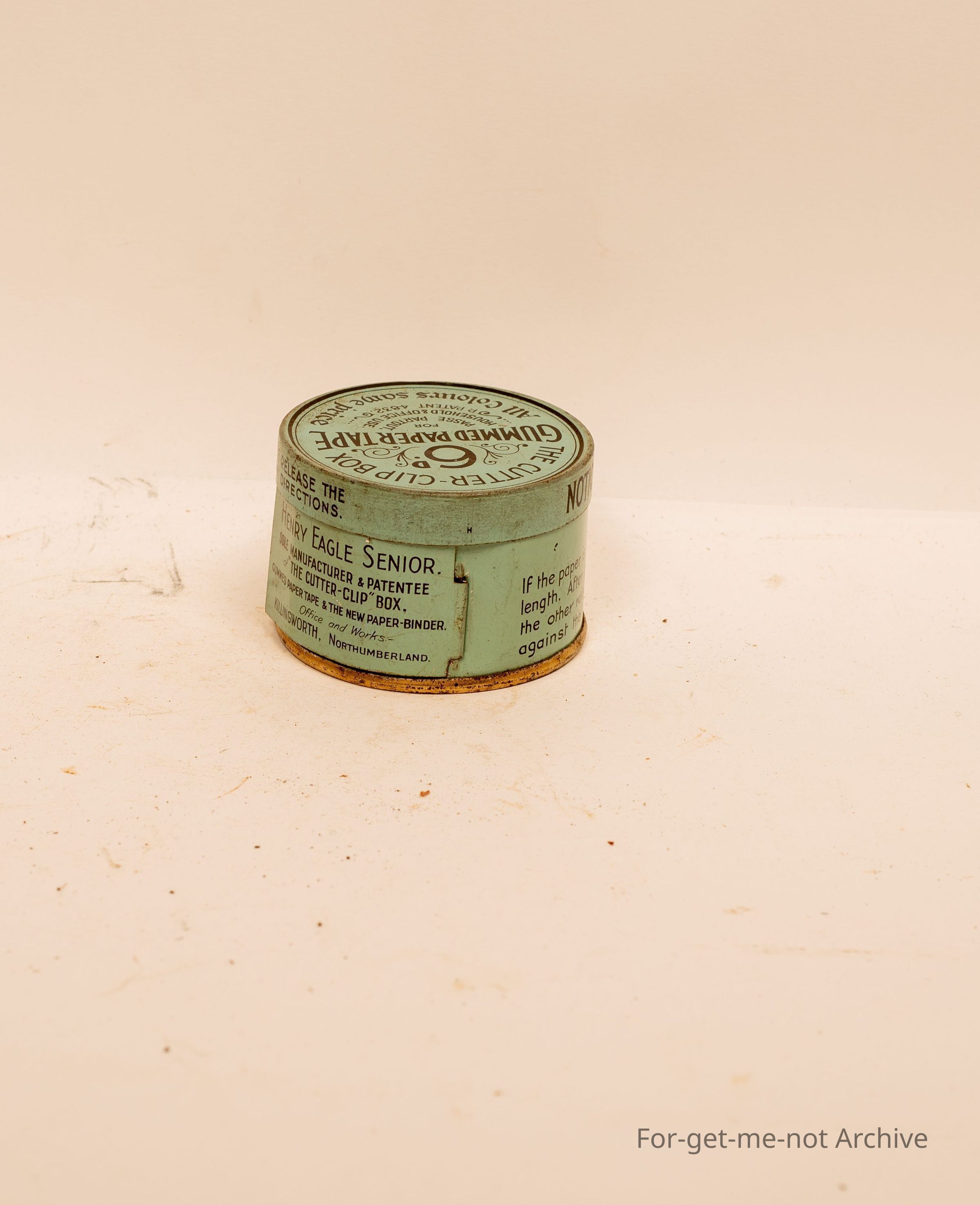 Small tin, gummed paper tape. All colours, same price. Directions for use, Henry Eagle senior, Northumberland
