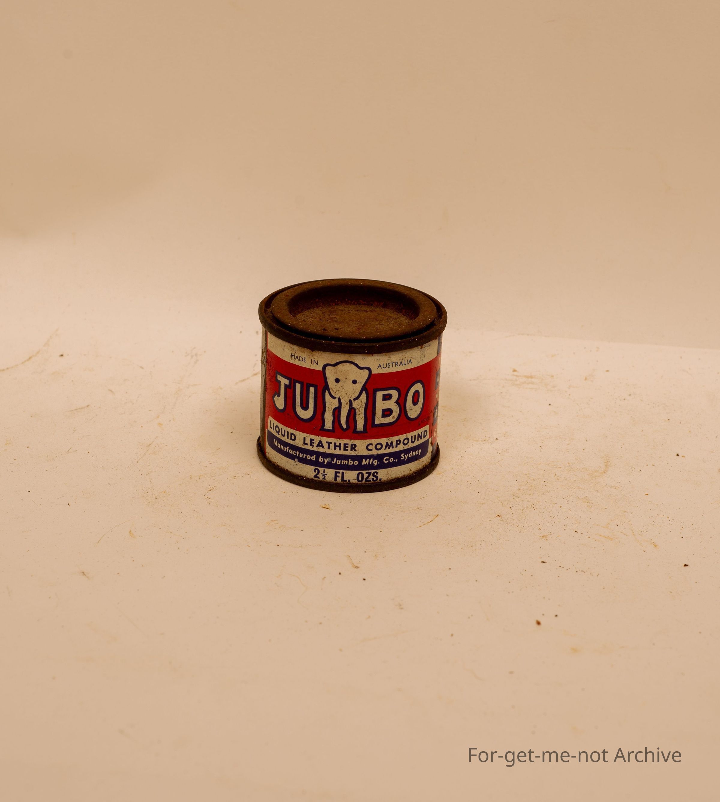 Small tin jumbo liquid leather compound, 2 and a half ounces