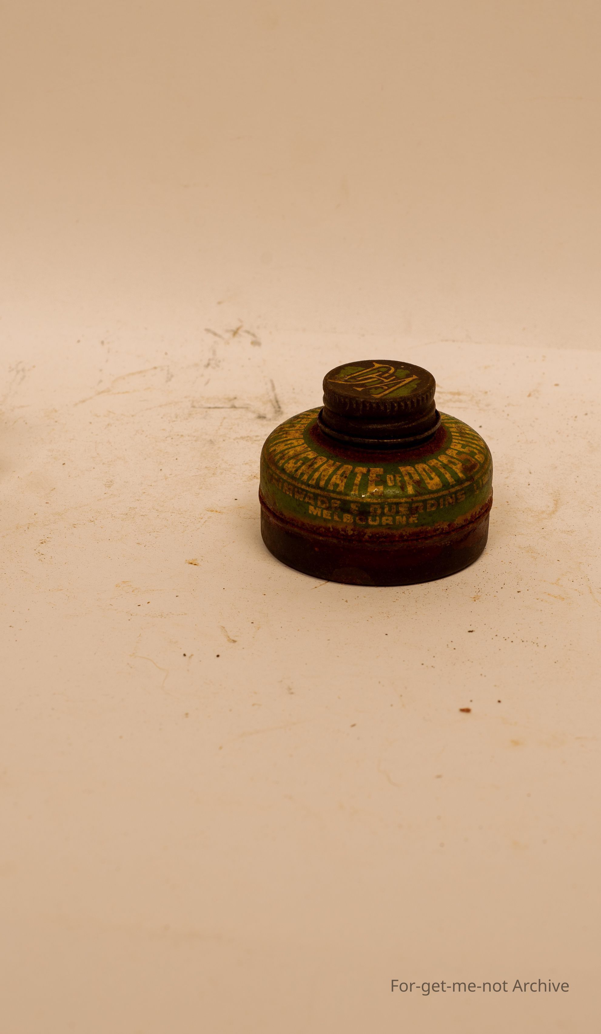 Small tin from DHA Stackhouse Australia. Potassium permanganate sold as an antiseptic and deodoriser