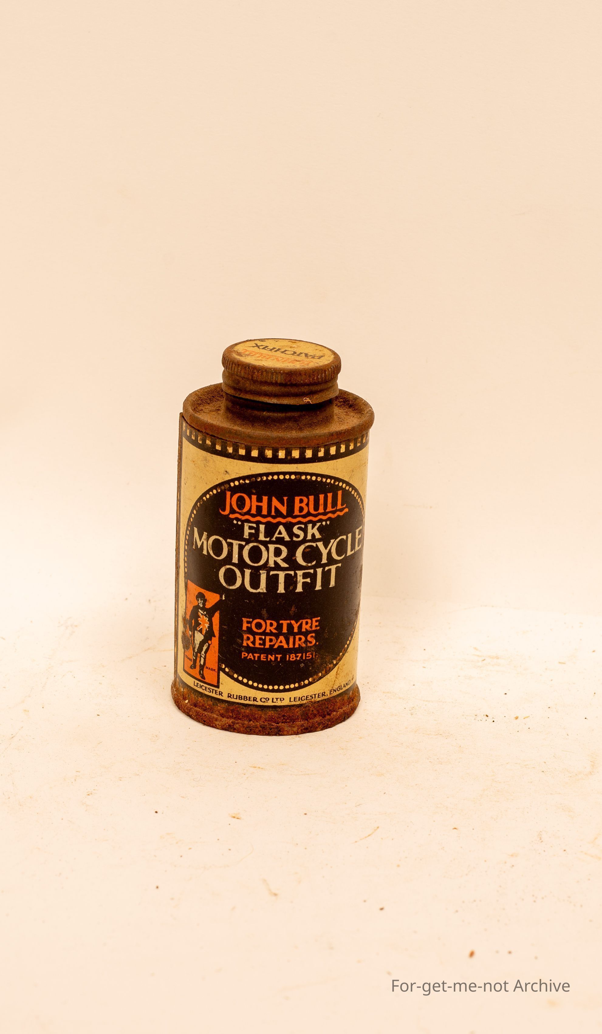 John Bull, Flask Motorcycle Outfit for the repair of tires. Nice little tin