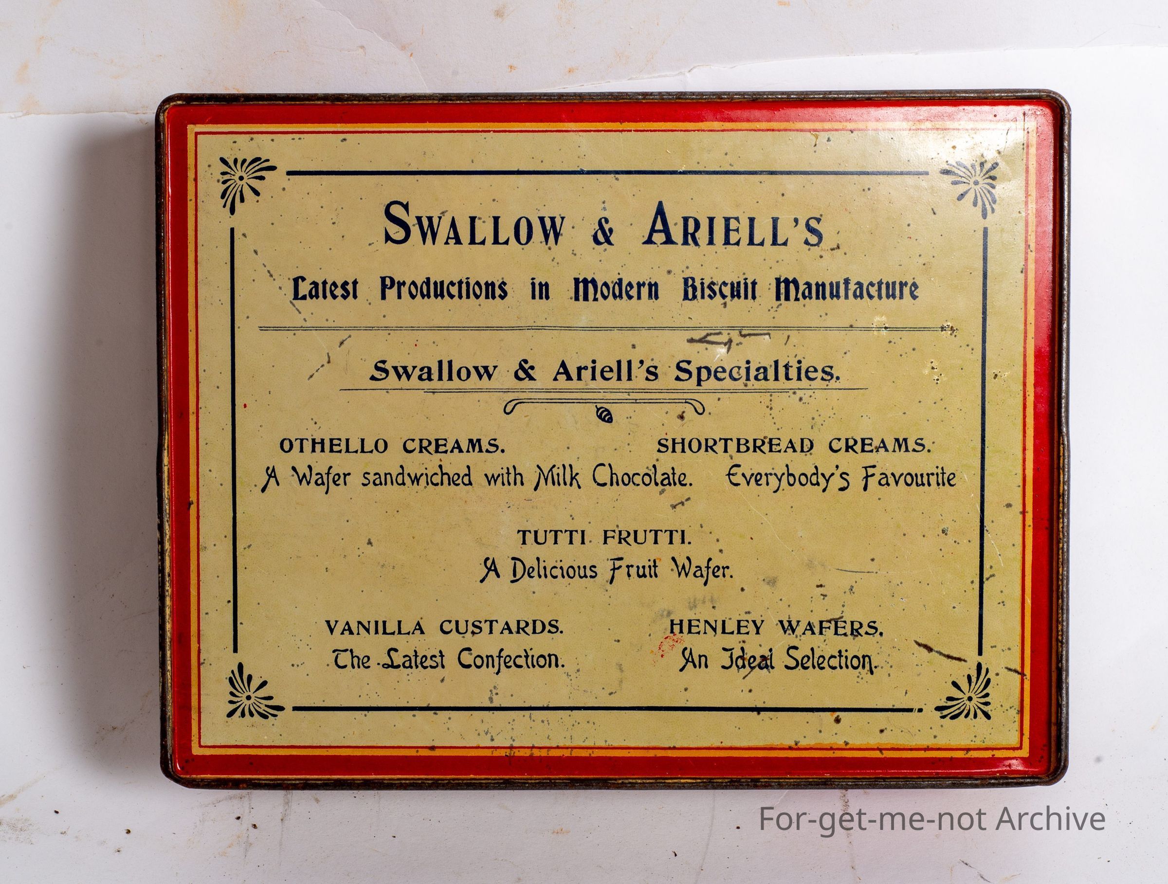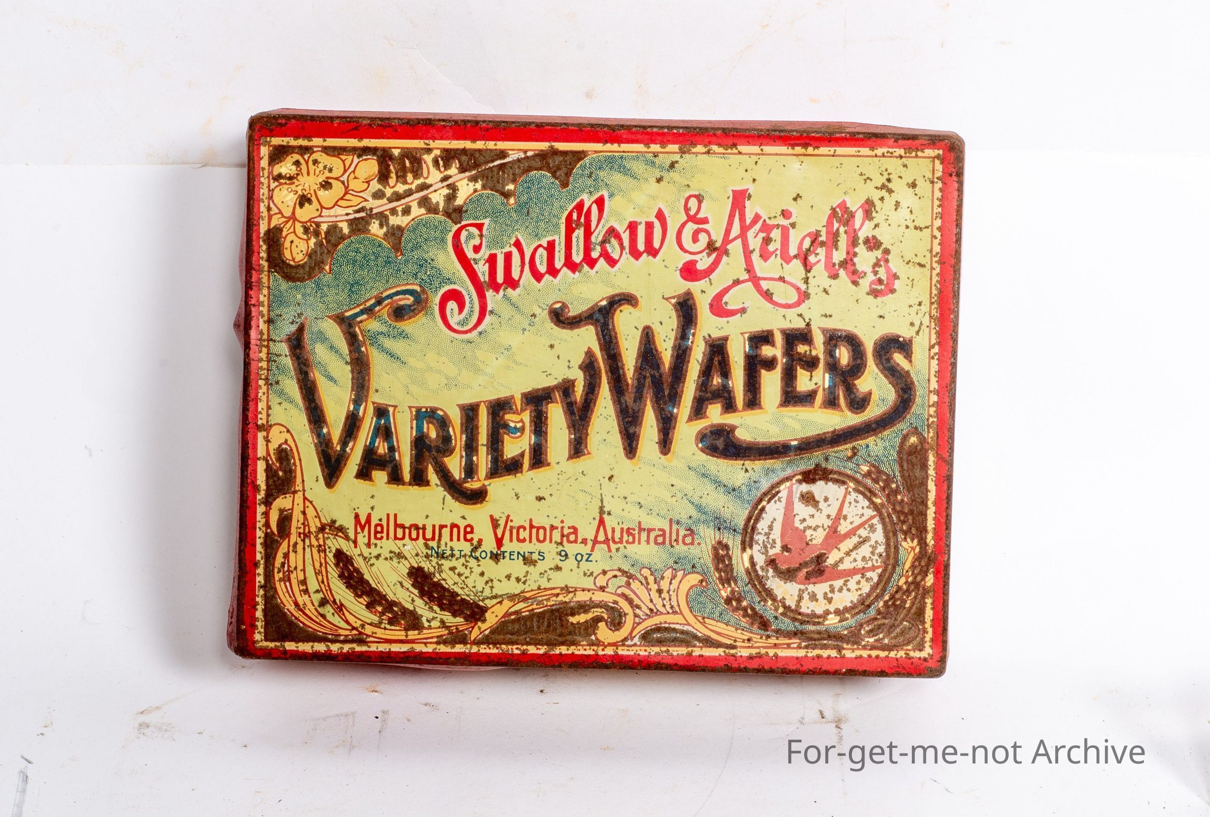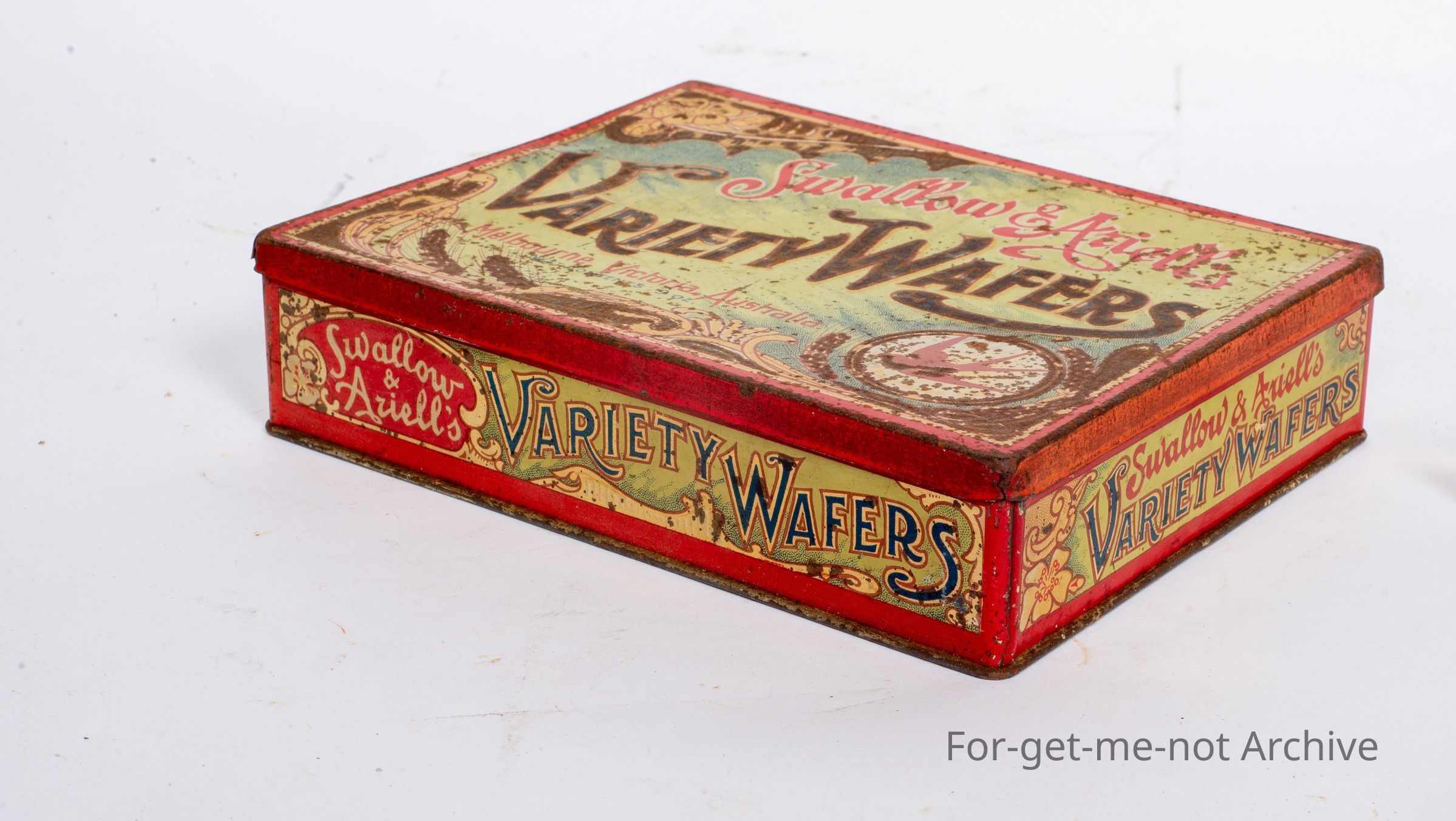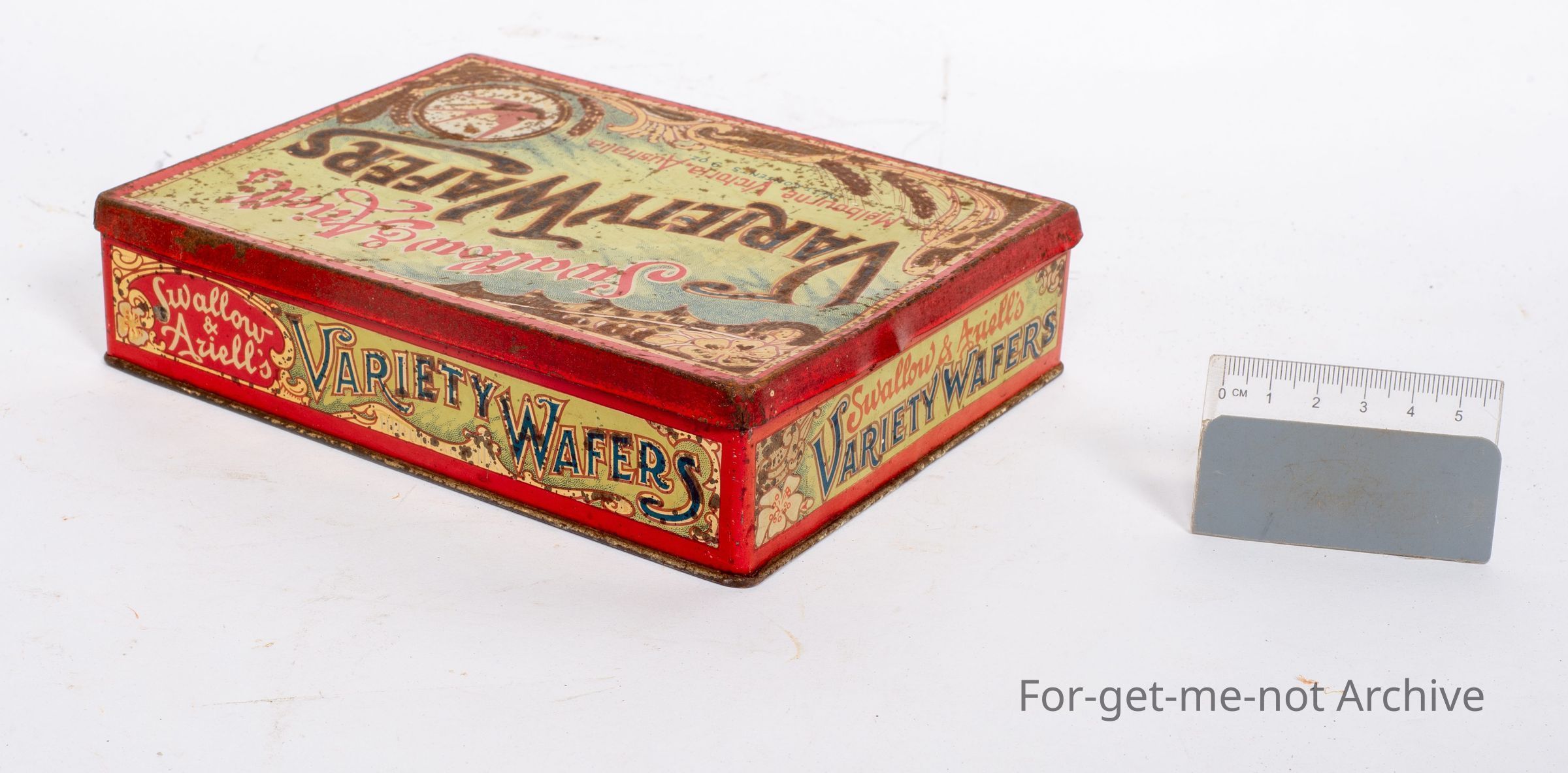 This is from Swallow and Ariel's Variety Wafers, Melbourne, Victoria, Australia. The tin's not in too bad a condition.
