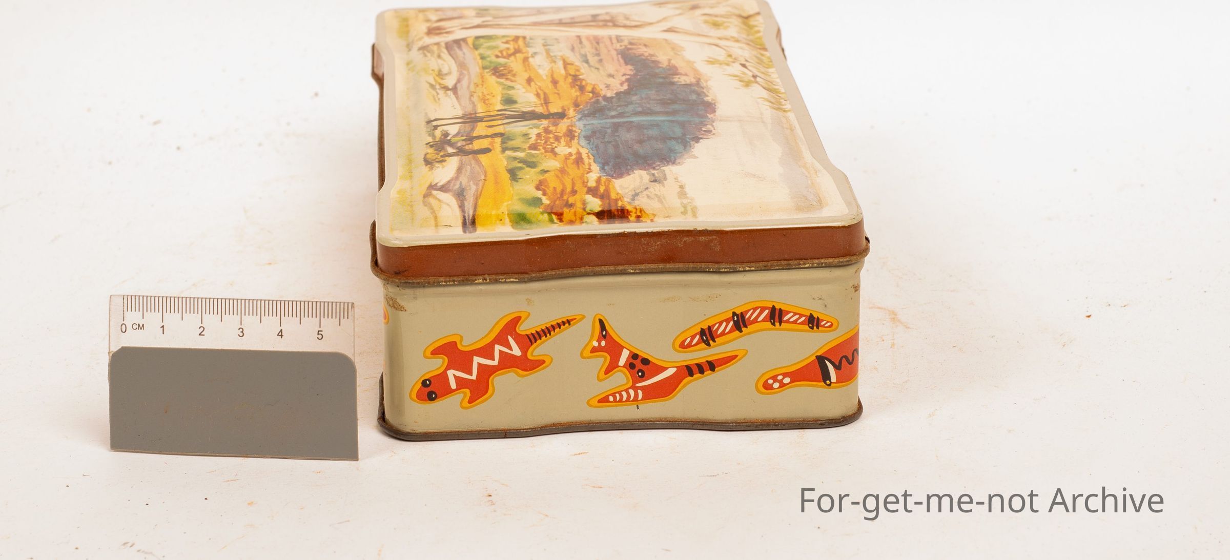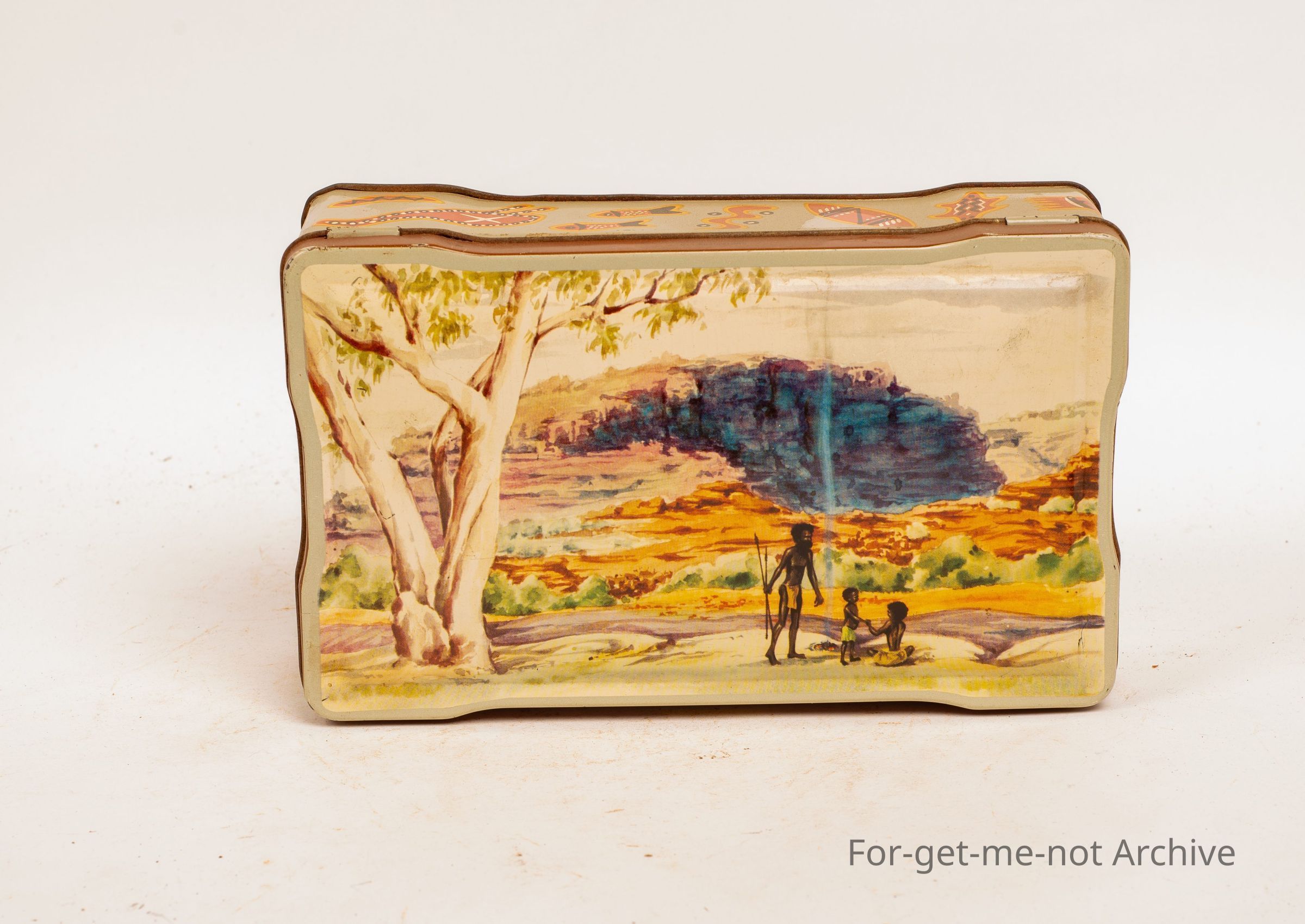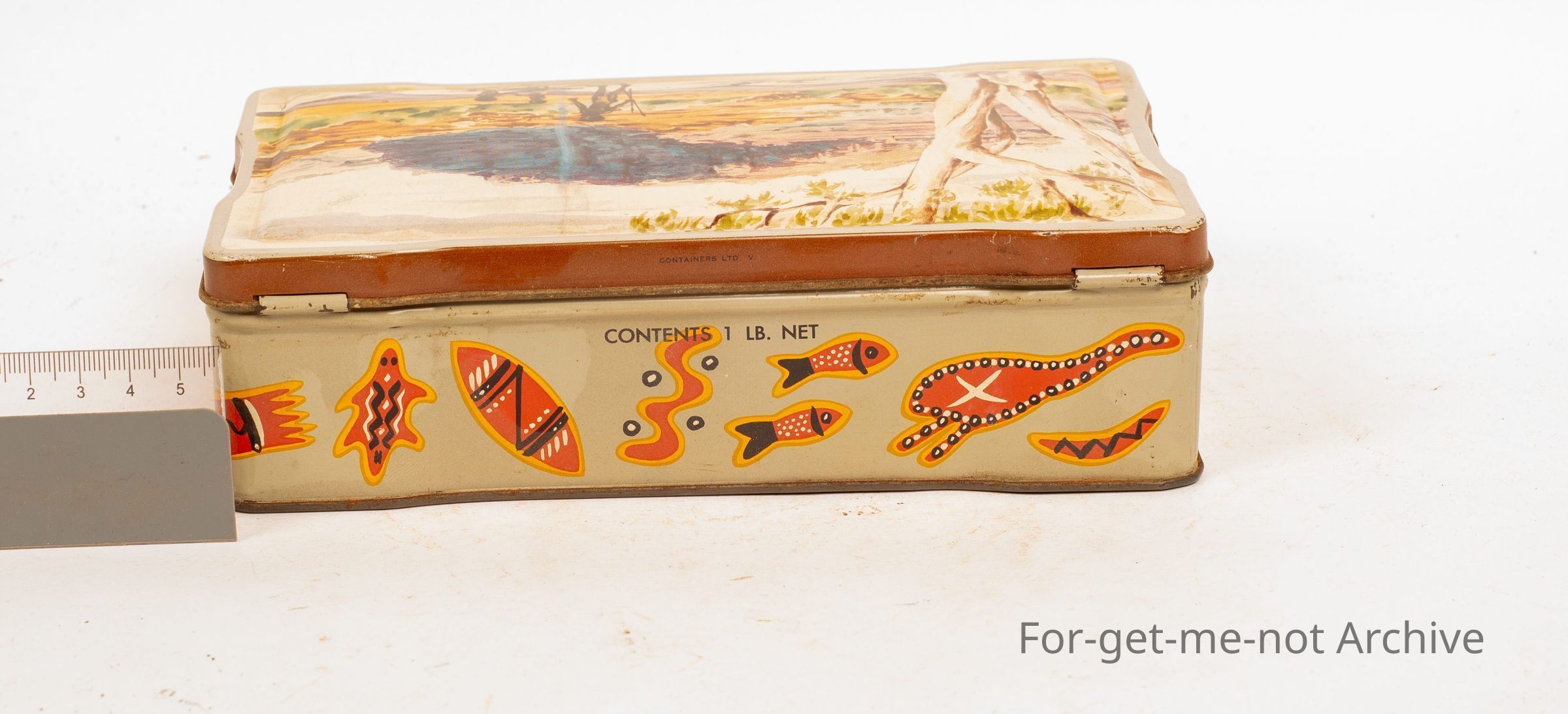 Depicting Allen's 1 Lb net weight of sweets with an Aboriginal scene on the front and on the surrounding sides.