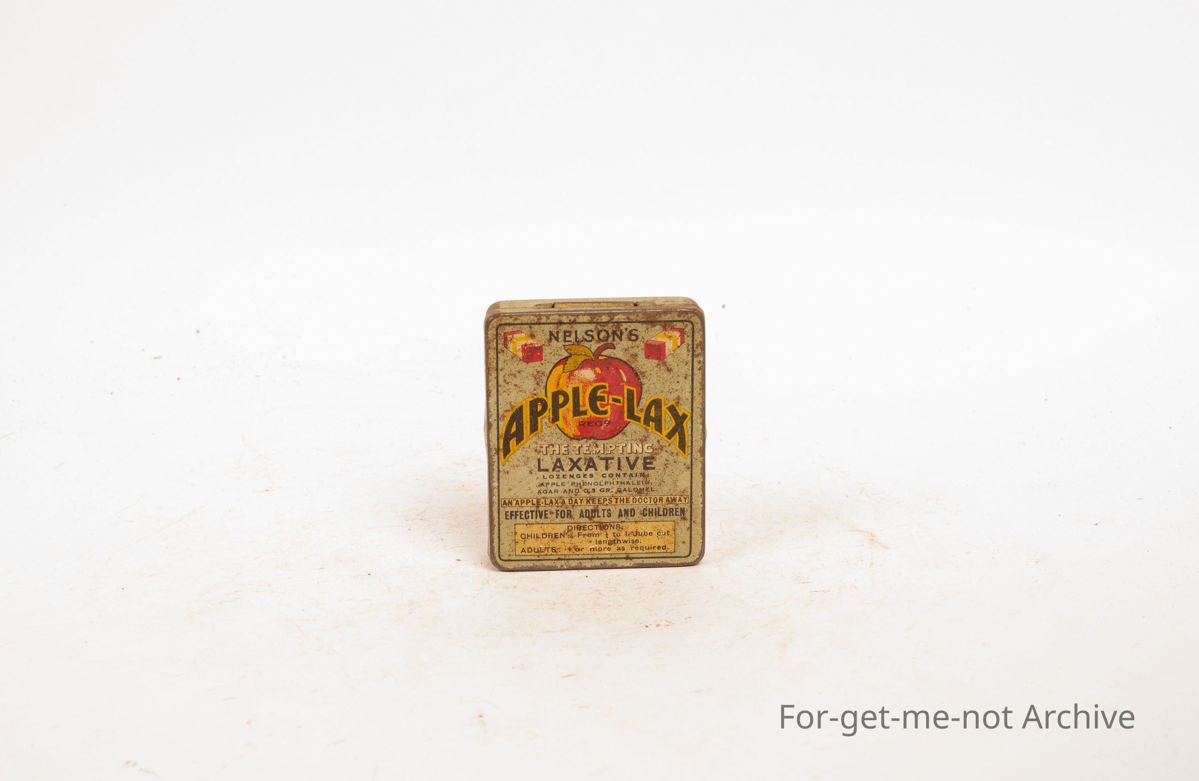 Nelson's Apple Lax Laxative Tin, not very good condition