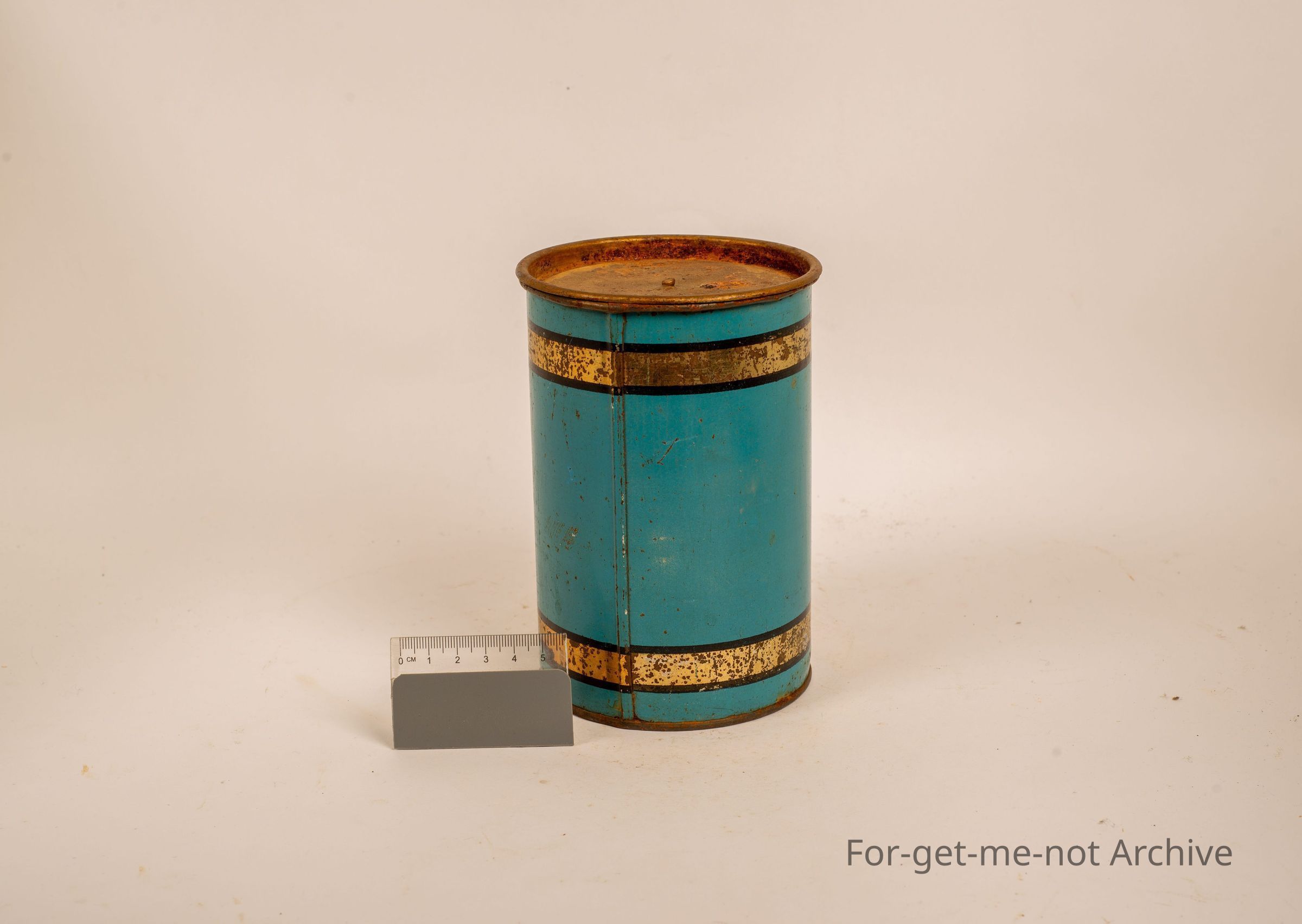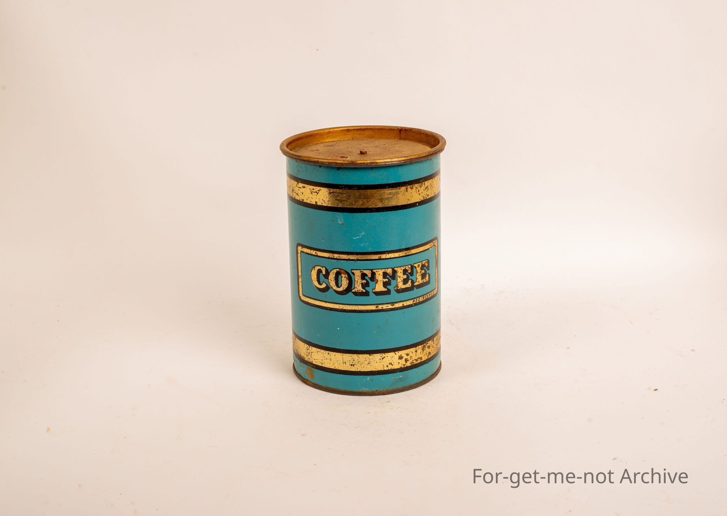 Blue coffee tin in a cylinder. Says coffee registered. No maker's name.