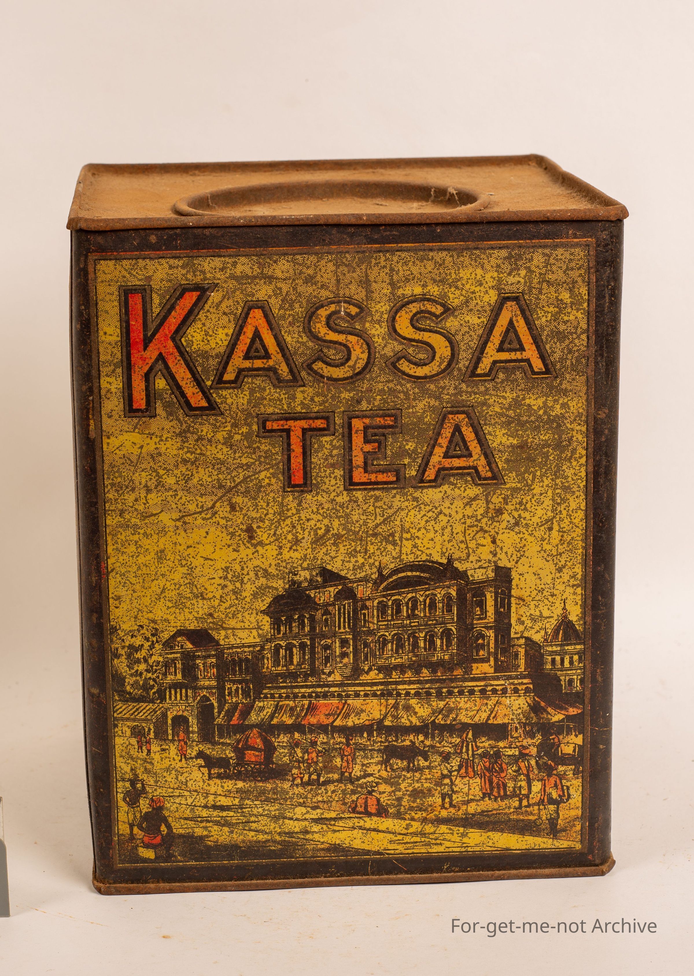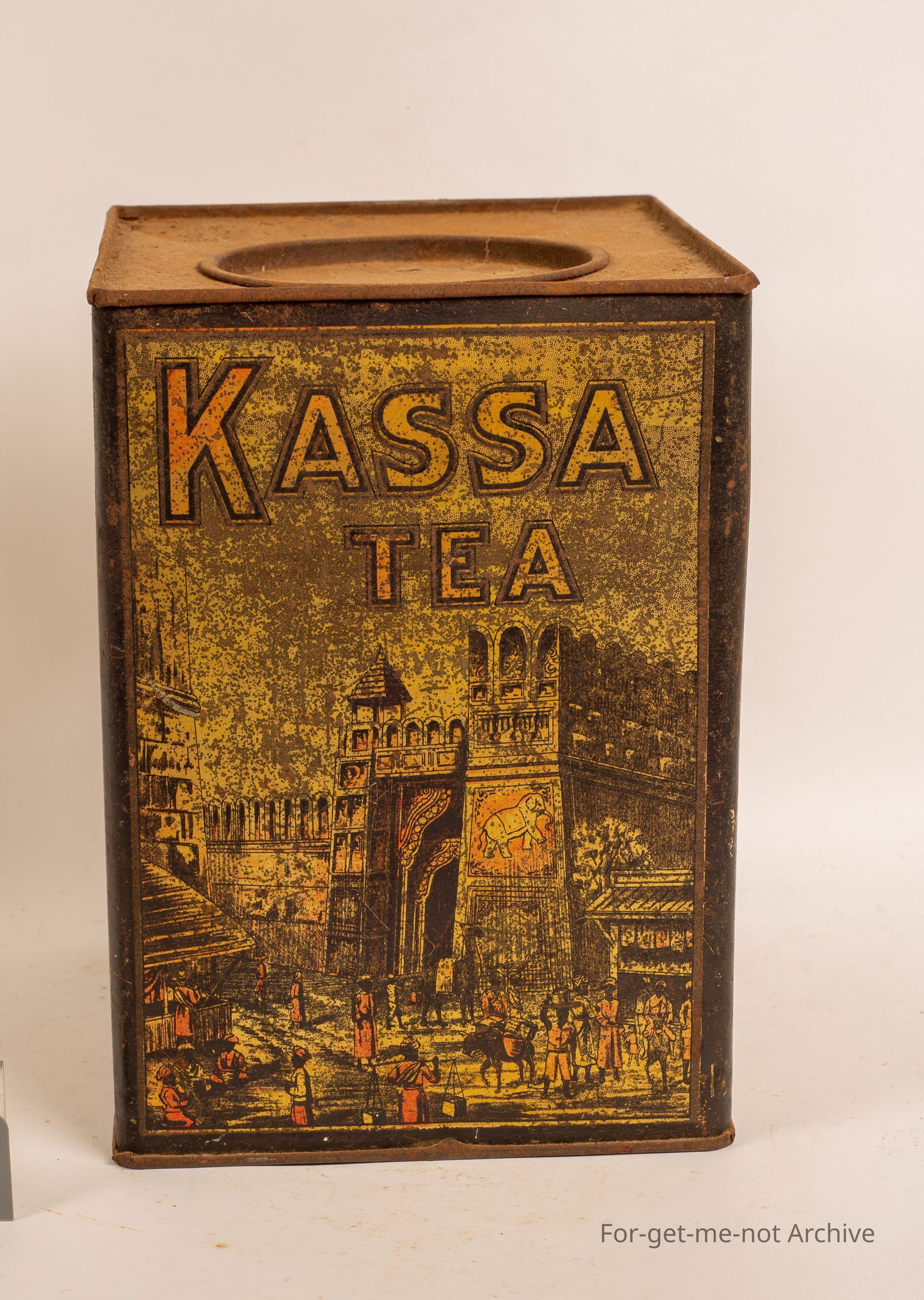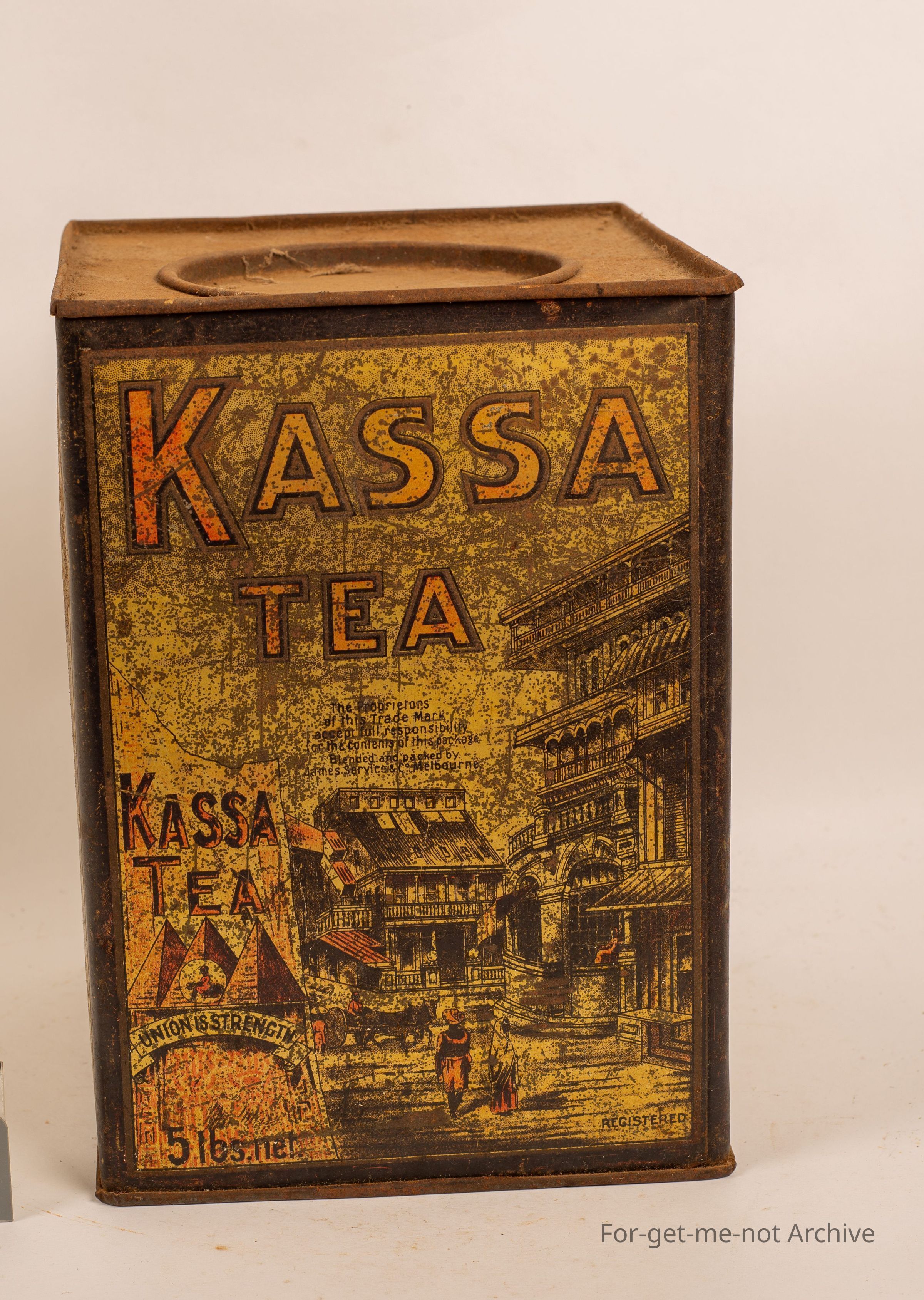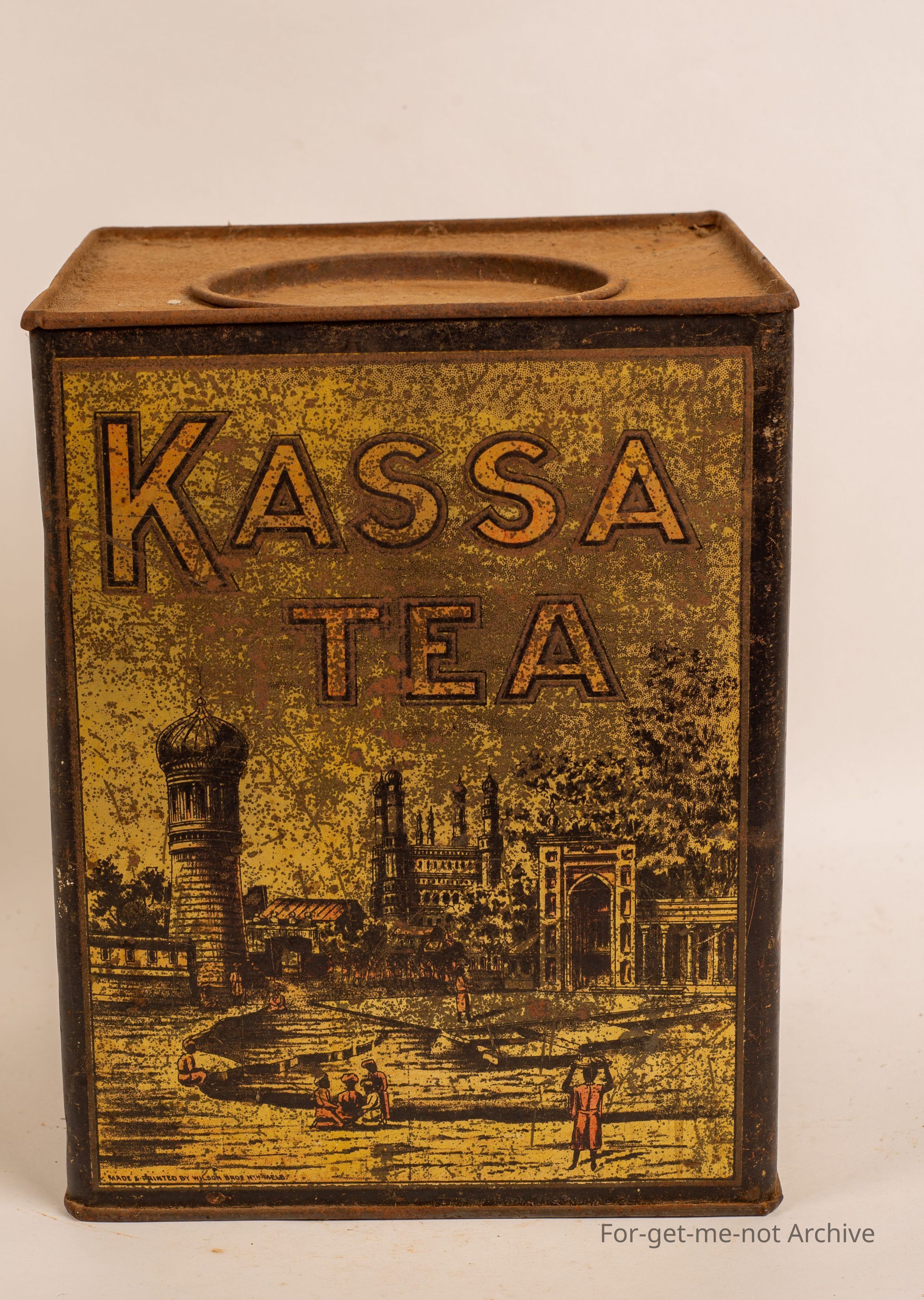 Kasa Tea Tin , 5 pound capacity different scene on each face, An extremely rare tin made by Wilson Brothers North, Melbourne. Manufactured tin manufactured by Wilson Brothers North Melbourne, an early tin.Collection