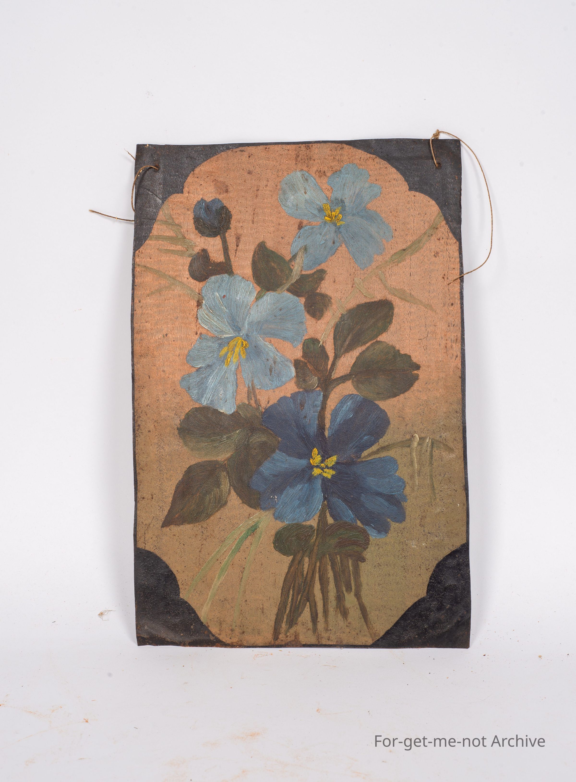 Is another tin frame painting. Once again, perhaps of Pansies, quite well done. This appears to be very old.