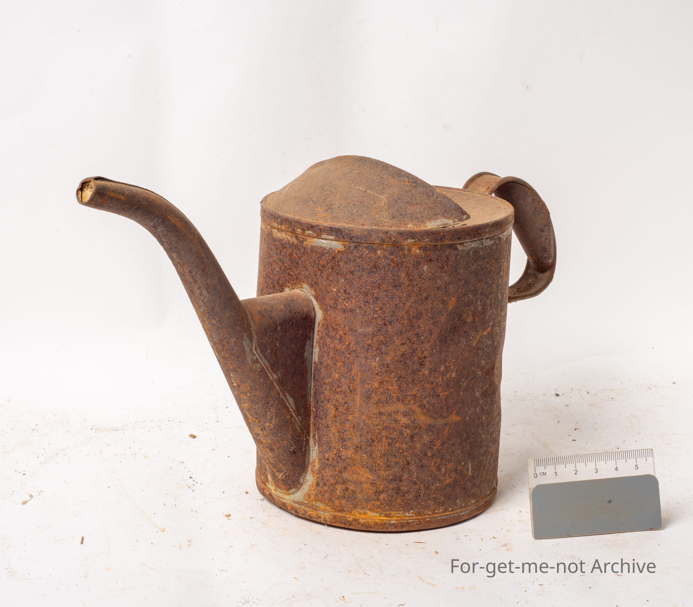 This is a tin pouring, like a container with a long spout handle, a closed top, a push with your fingers closed top like an oil can, so this is probably an oil puller. I'd say made professionally, in pretty rough shape. It's actually made by Rega in Tasmania so it is a production model.Collection