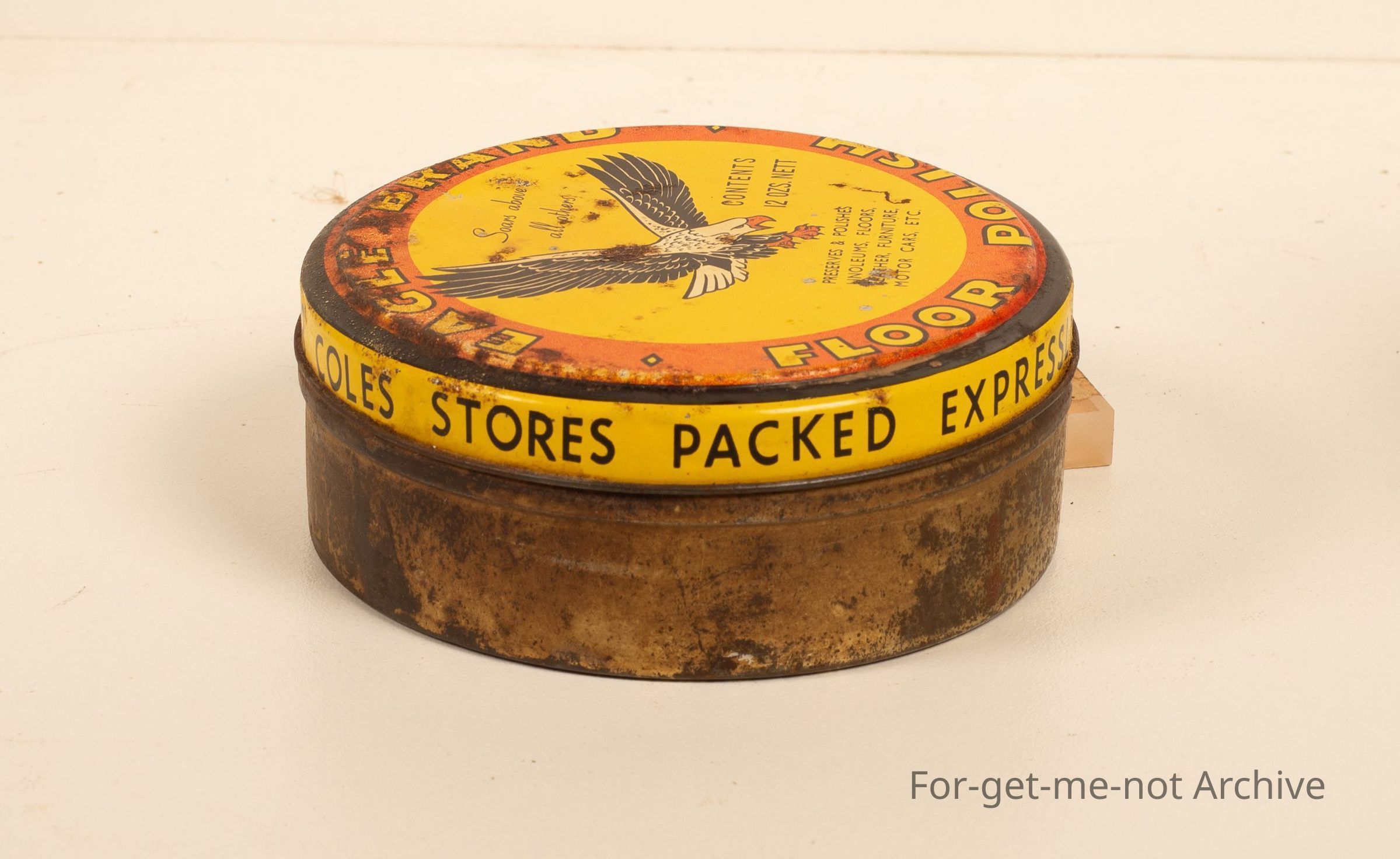 Tin of Floor Polish Eagle Brand with Eagle Motor
