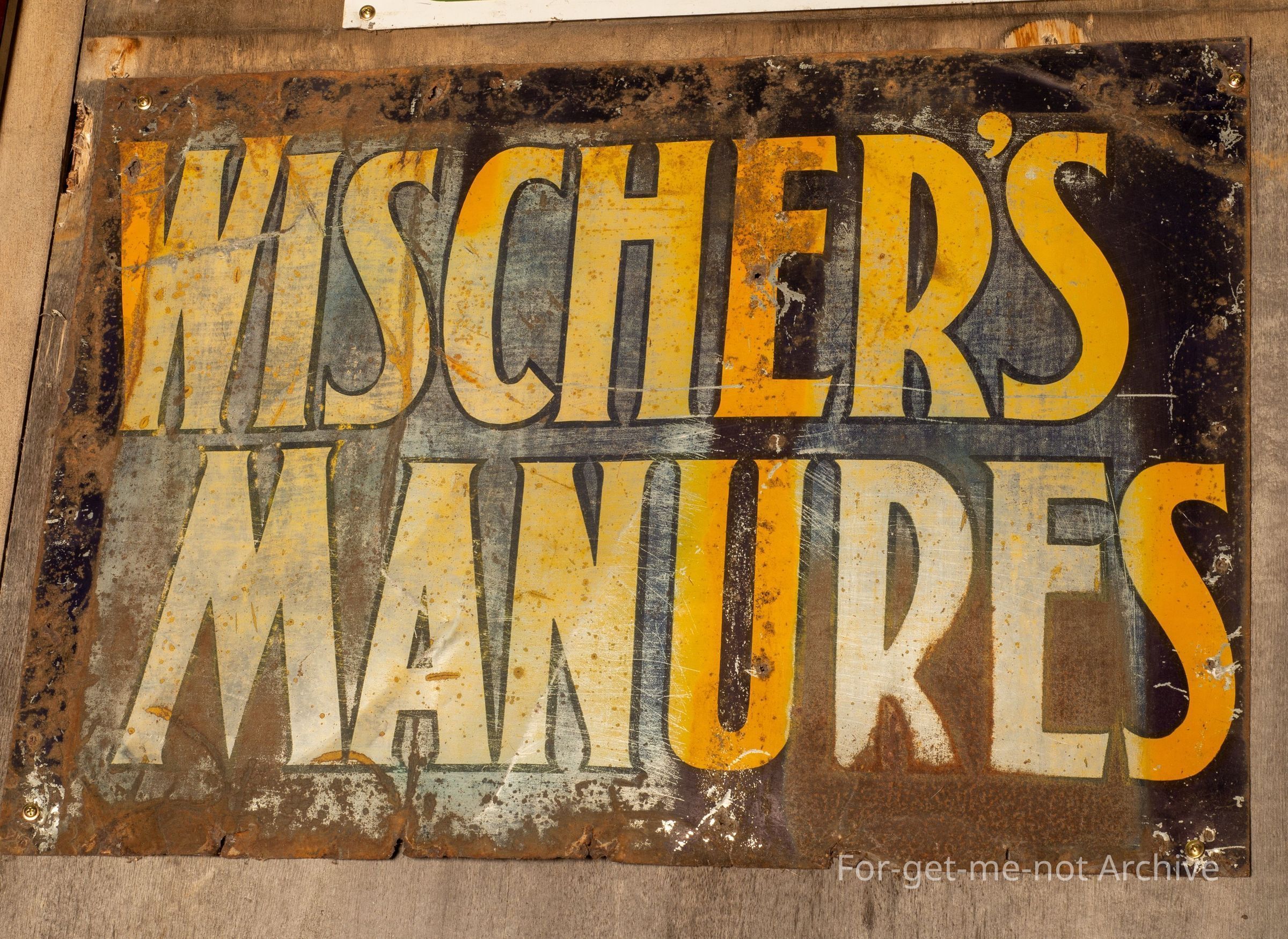 This is a tin plate sign for Wisches Manures who were in Melbourne.