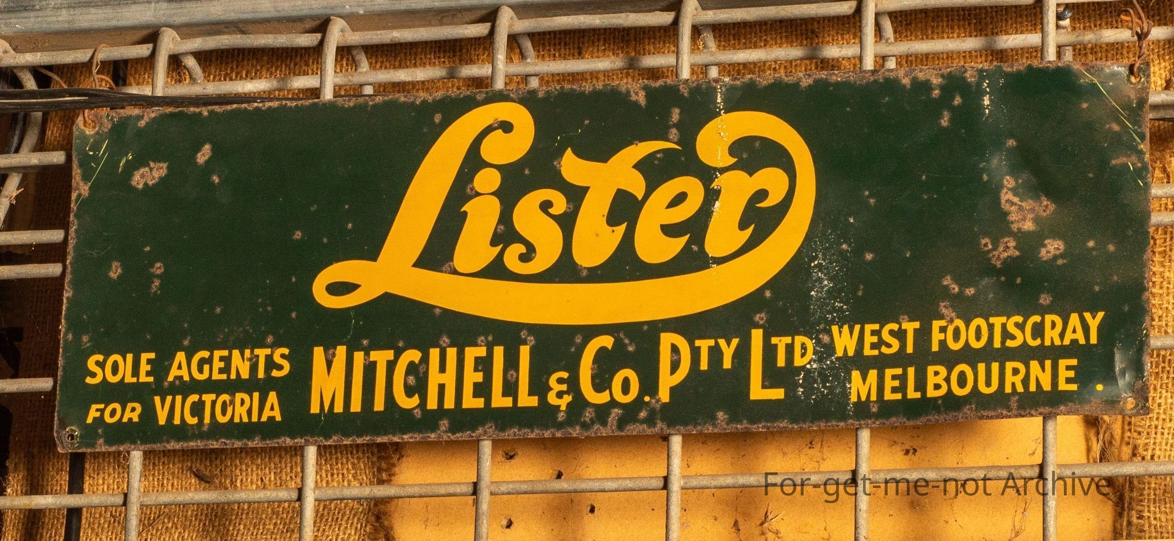 Sign advertising Lister farm machinery, sole agents Mtchell and co West footscray, Melbourne